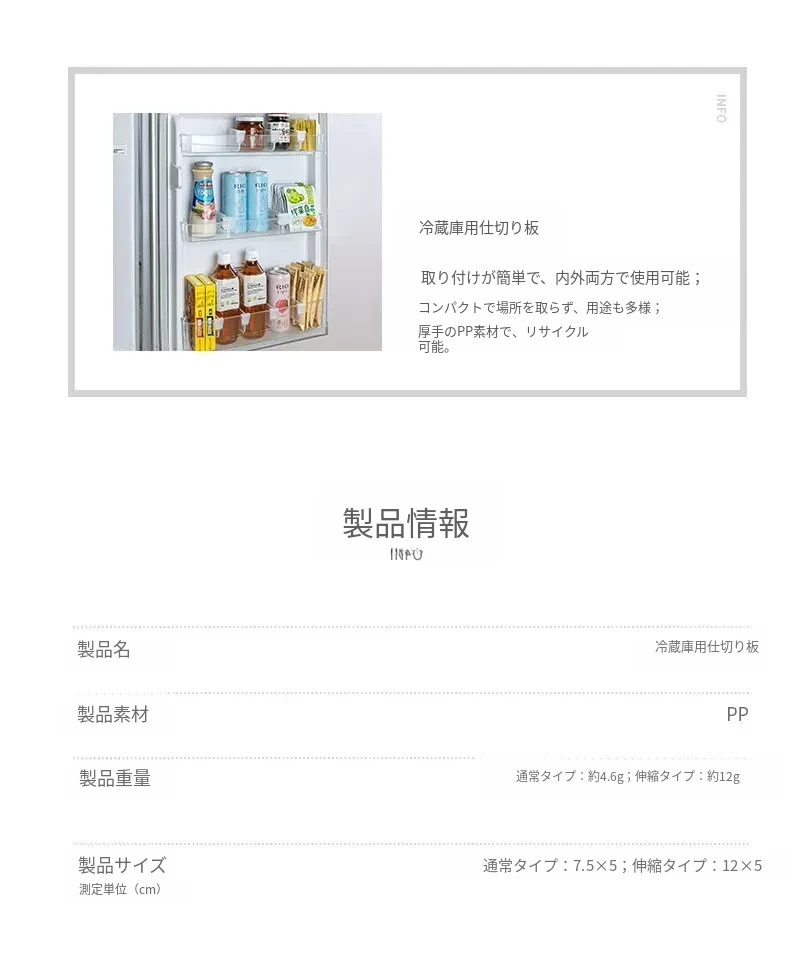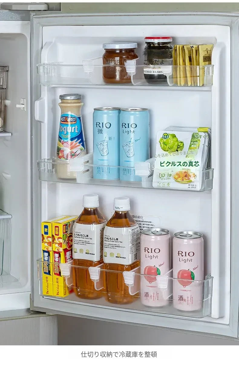 冷蔵庫用延長サイドドア収納ボックス - 調整可能な仕切り板で整理整頓を簡単に!小物もすっきり収納できる便利な仕切りクリップ!