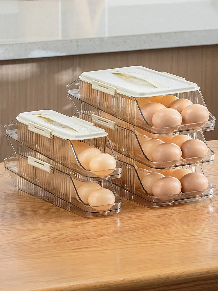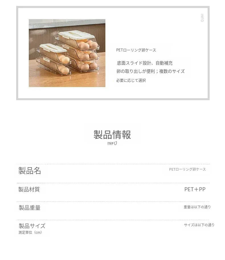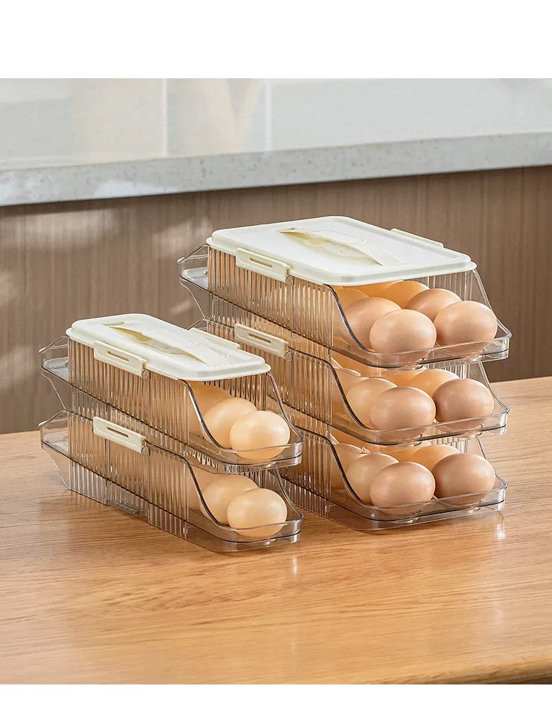 自動ロール式卵収納ボックス - 冷蔵庫用サイドドア対応、卵ラック専用整理神器!新鮮さを保つ保鮮ボックスで、便利さとスタイリッシュさを兼ね備えたキッチン必需品!