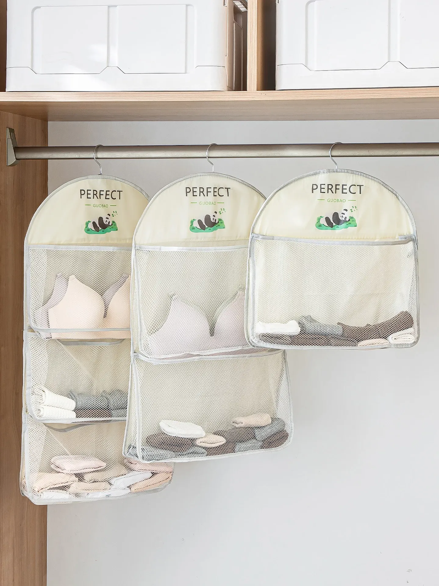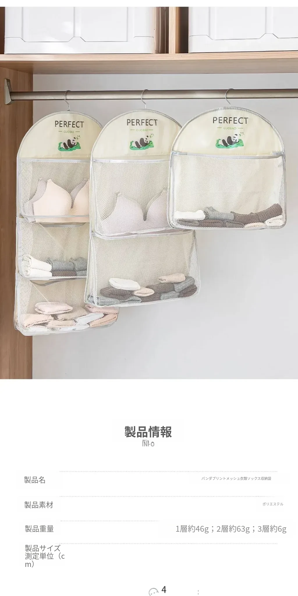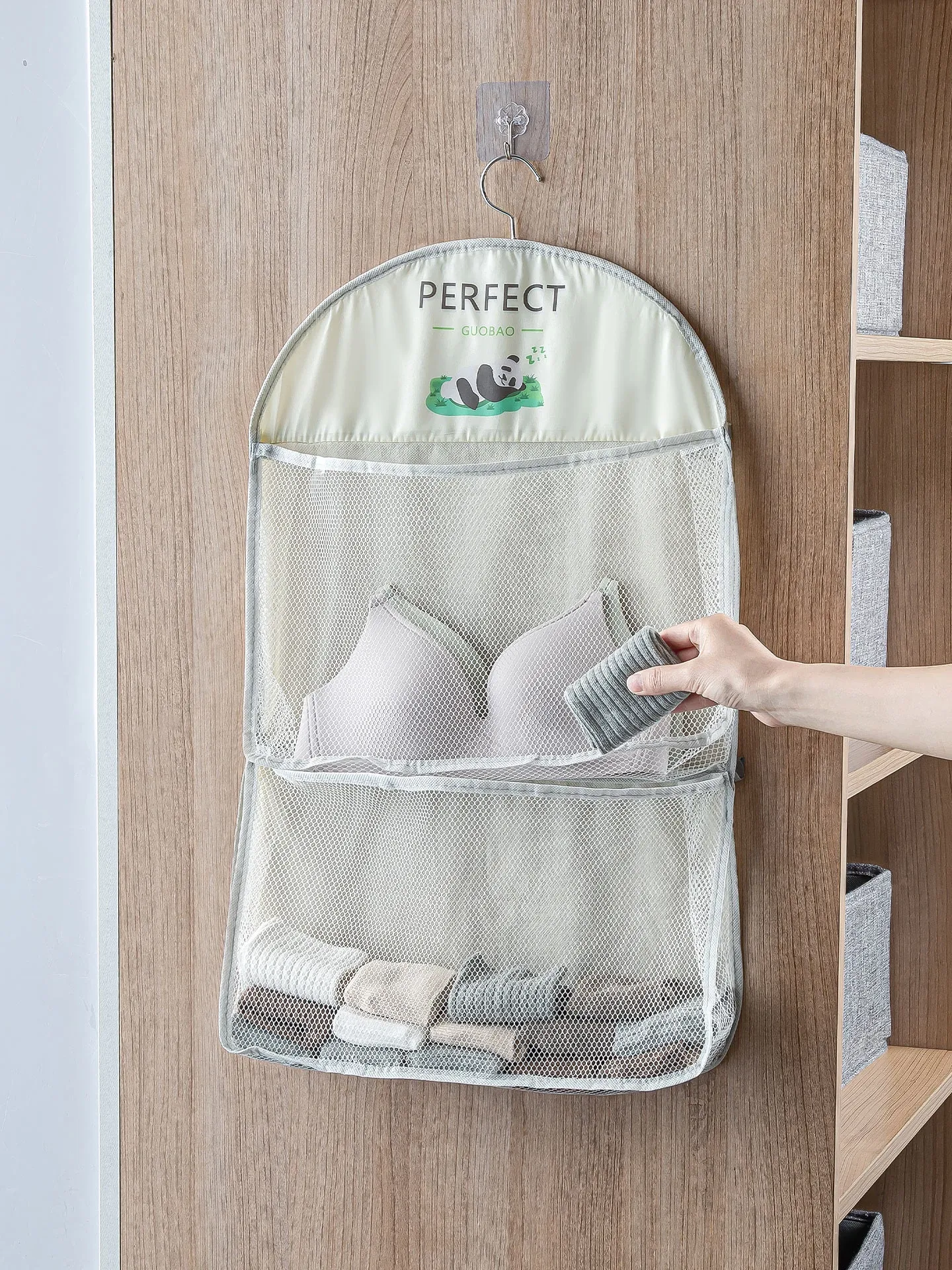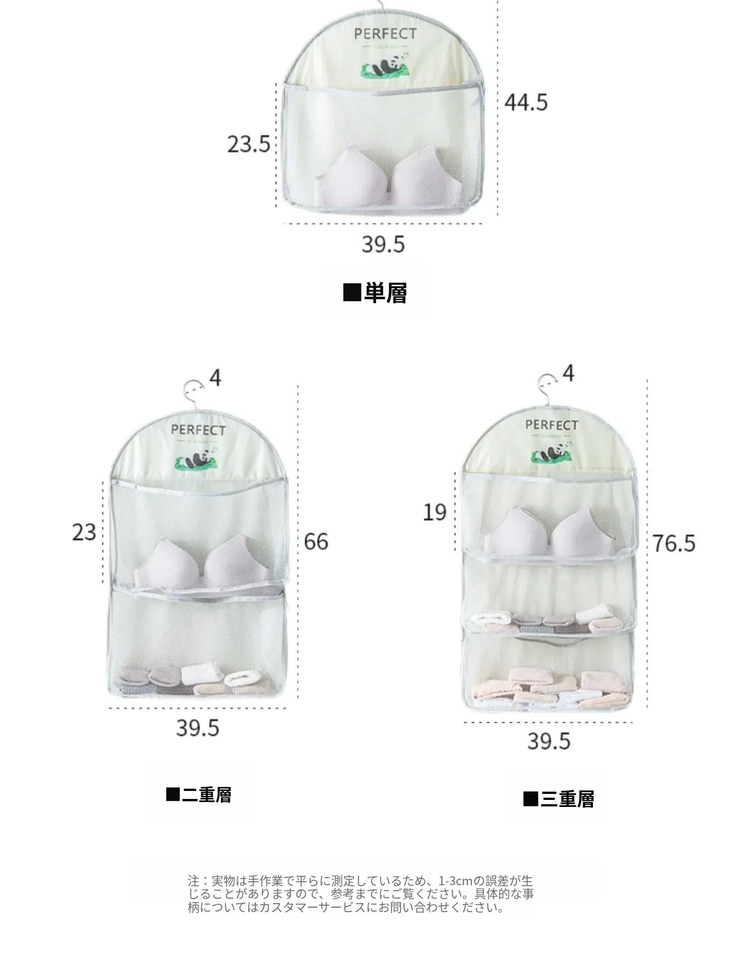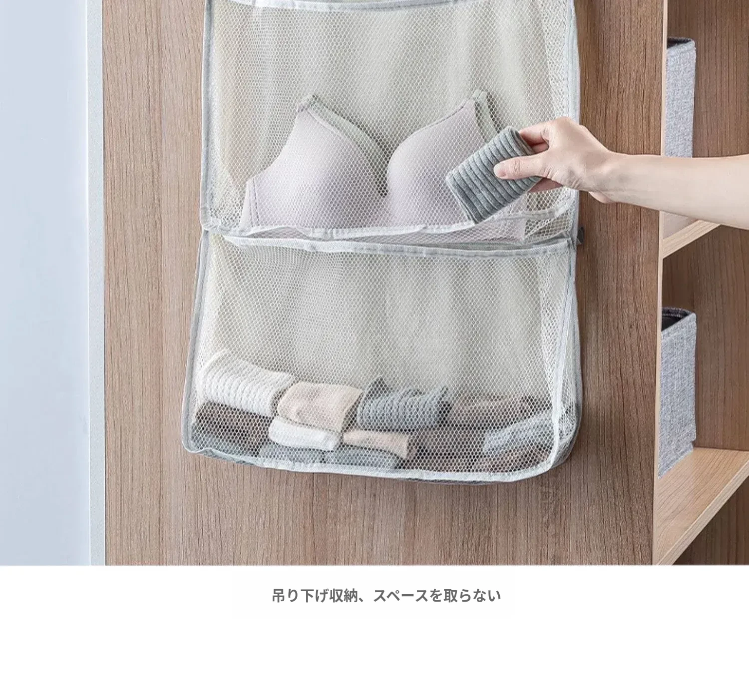 通気性抜群!ドア裏に掛けられる収納ネットバッグで、下着や靴下をすっきり整理。クローゼットのスペースを有効活用できる収納の必需品!