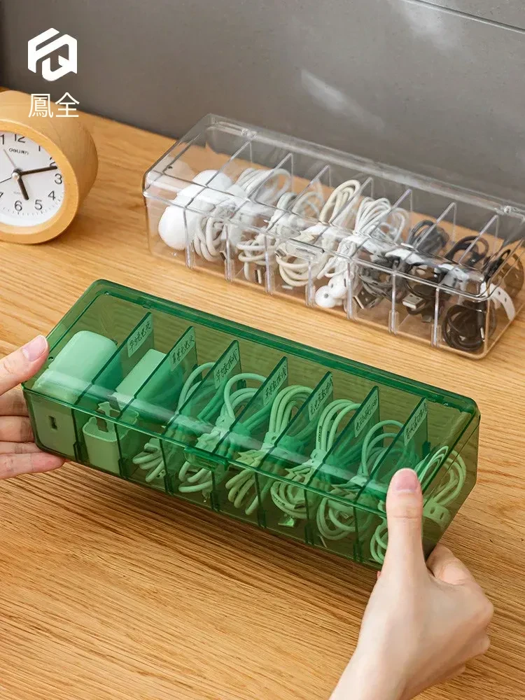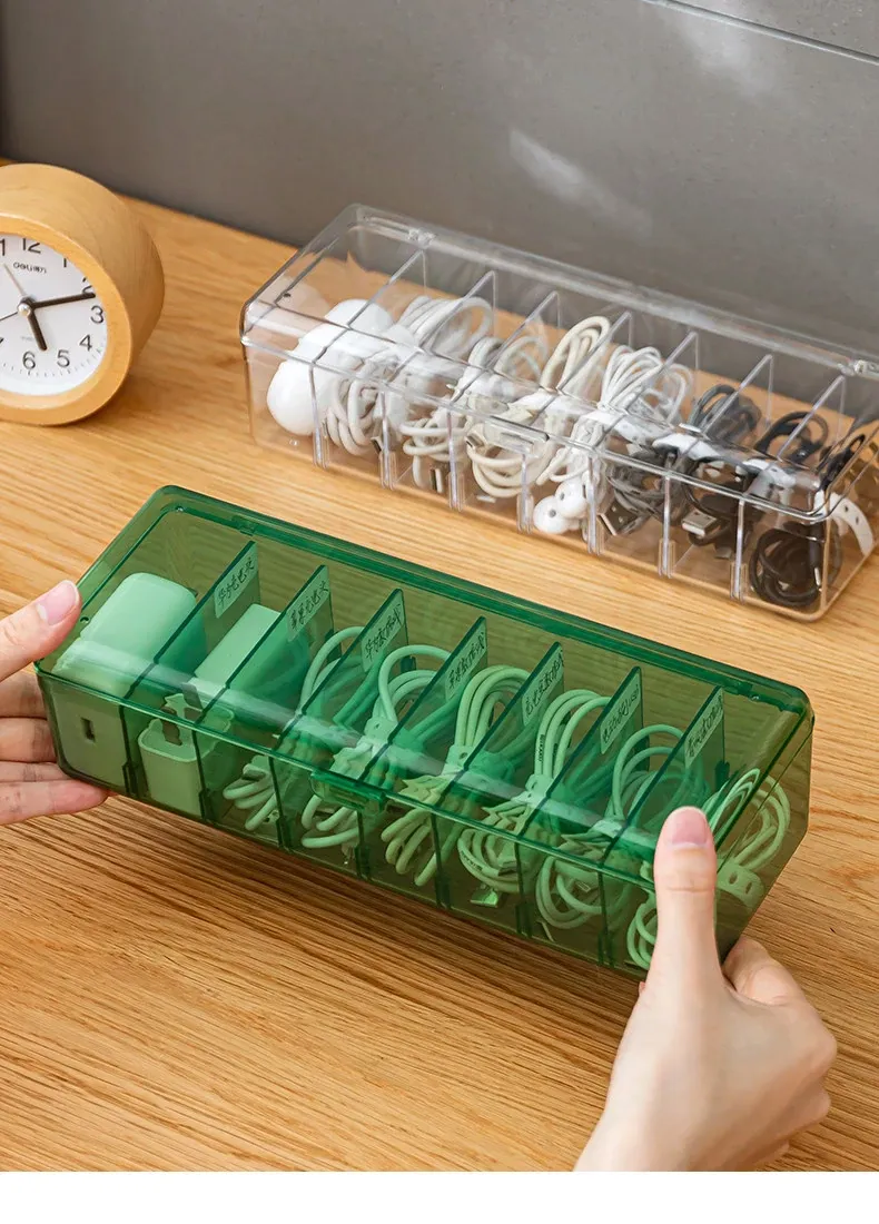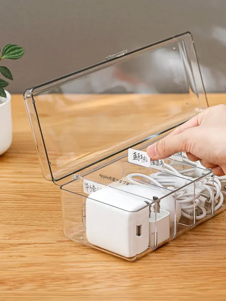 データケーブル収納ボックス - 電源充電ケーブルやスマホ充電器をスッキリ整理!デスク周りを整頓するための便利な仕分け整理グッズ。絡まり知らずのケーブル管理で、快適な作業環境を実現!