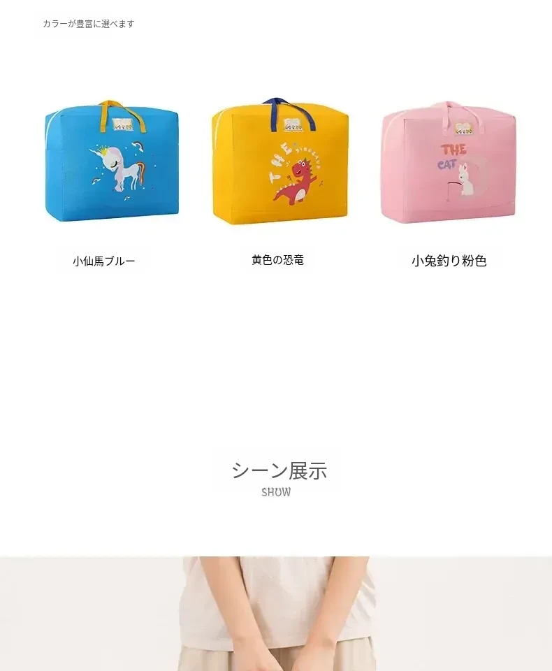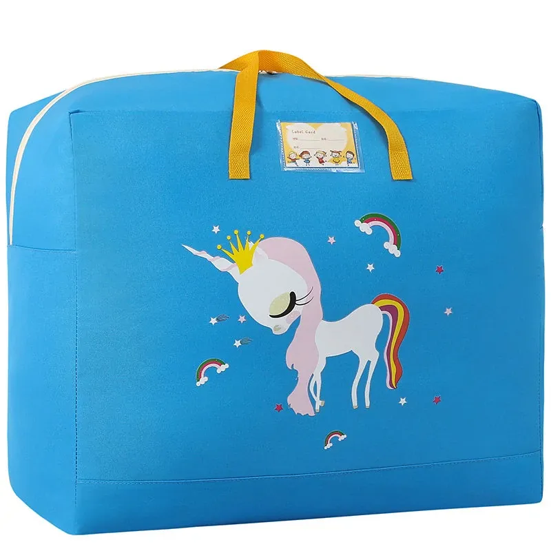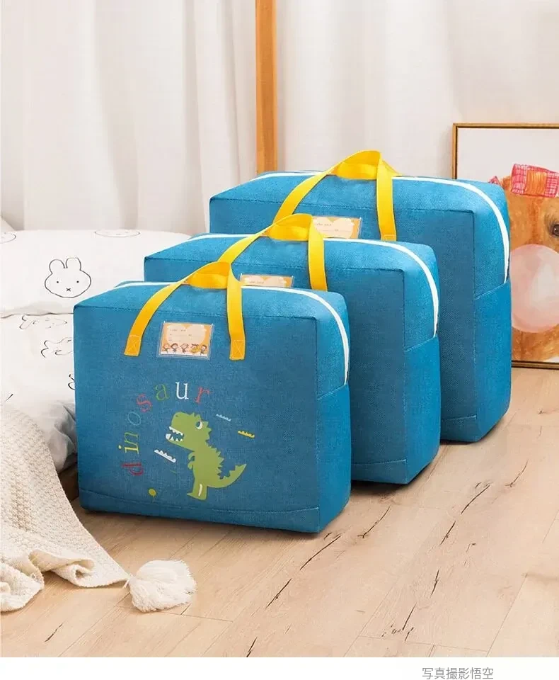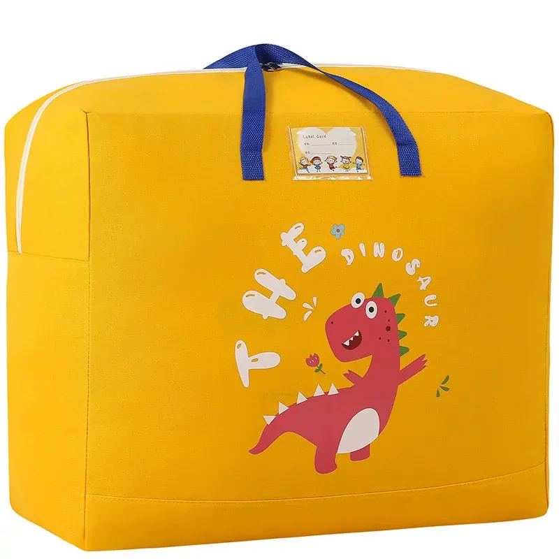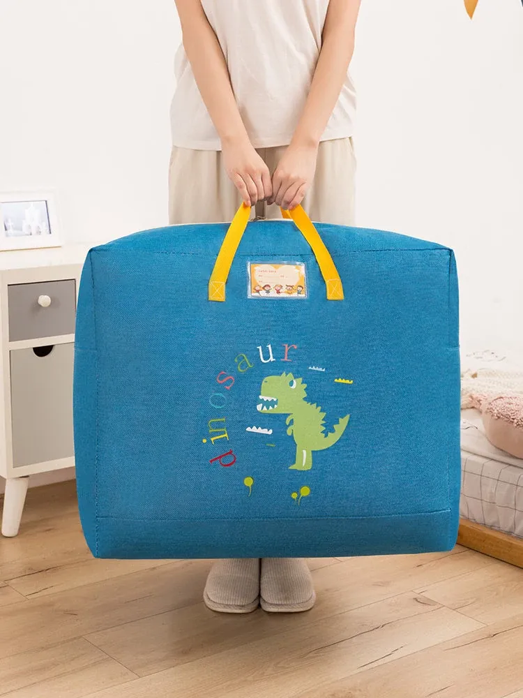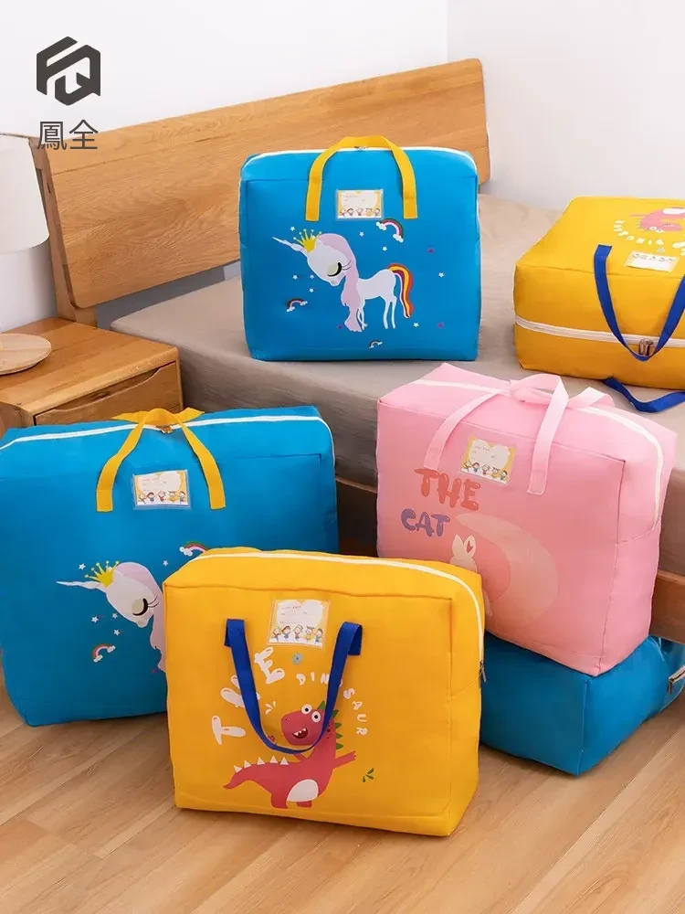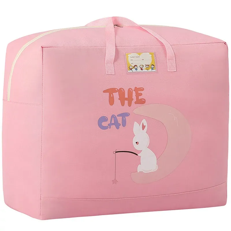 かわいいカートゥーン柄の大容量布団収納バッグ - 家庭用手提げ式、衣類や布団の整理に最適!旅行にも便利なコンパクトデザイン!