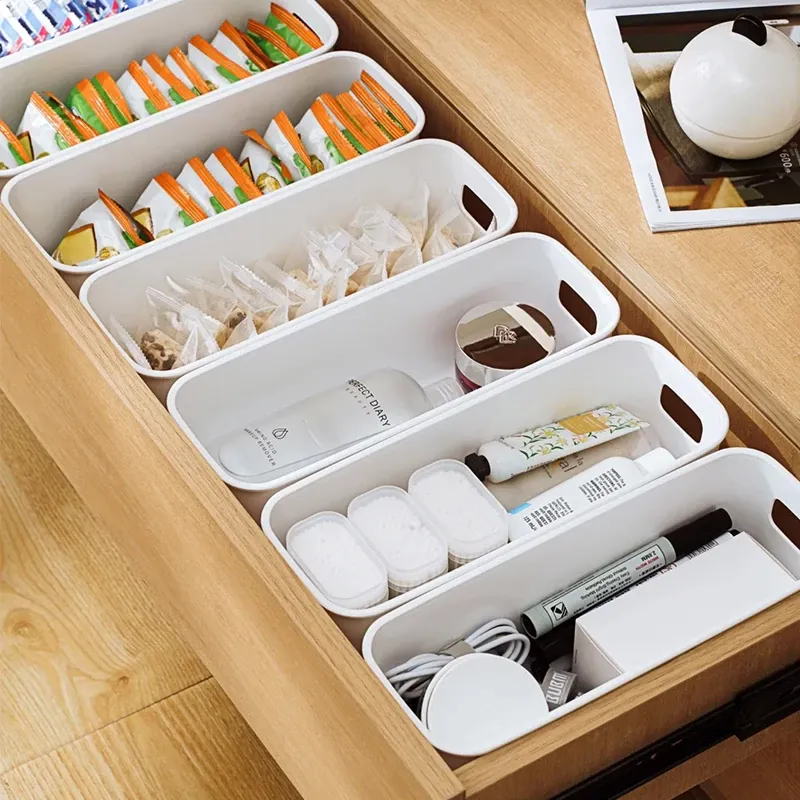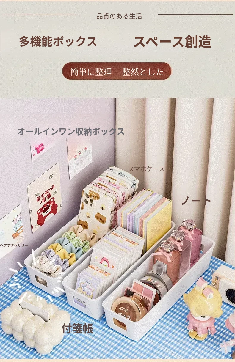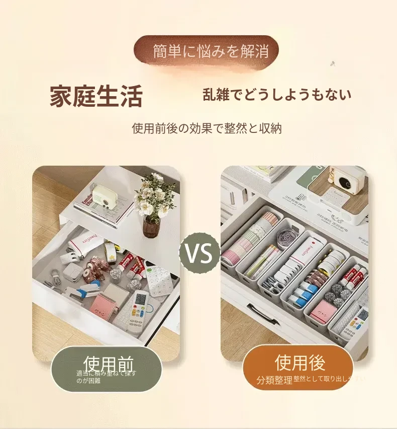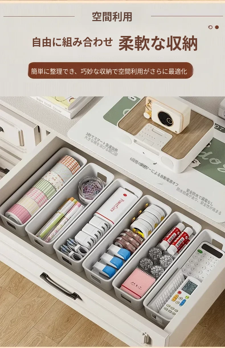 デスクトップ収納ボックス 引き出し内蔵仕切り付き 長方形整理ボックス 寮生活に最適!化粧品や雑貨をスッキリ整理できる便利アイテム!