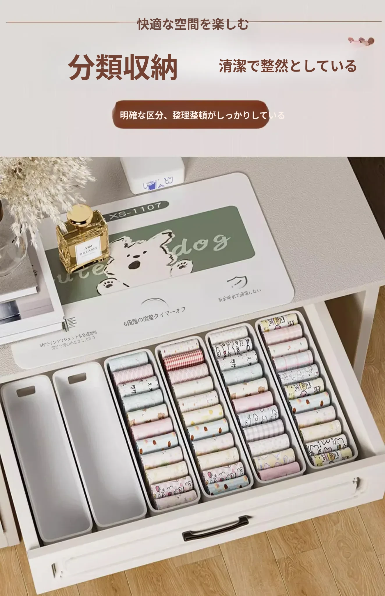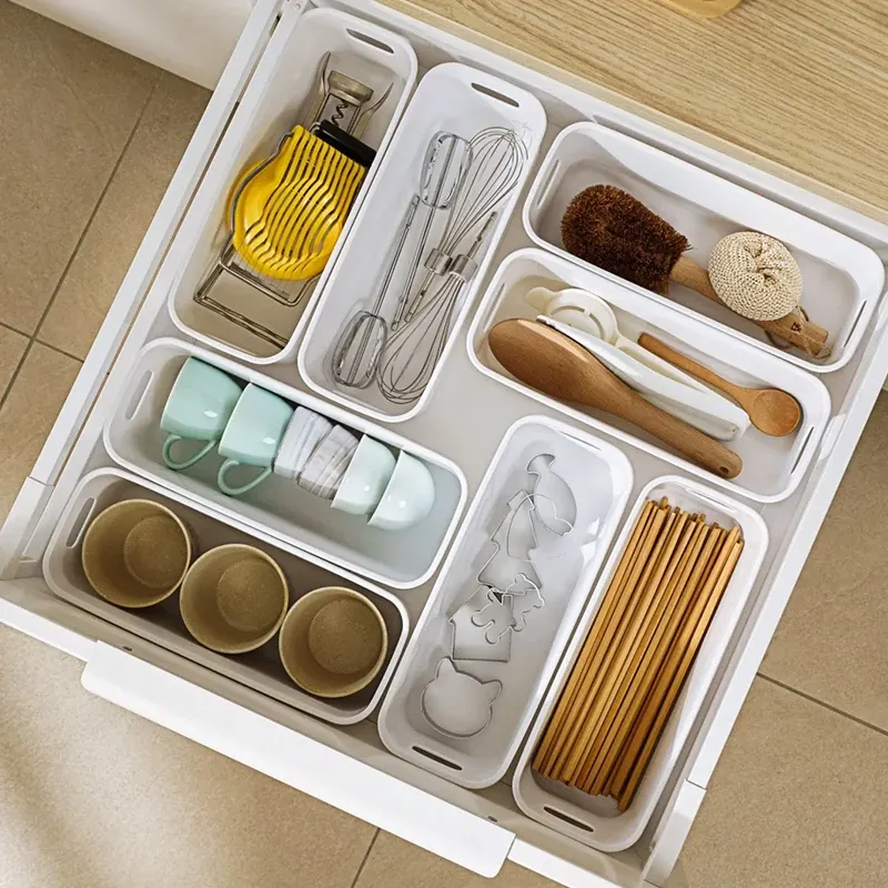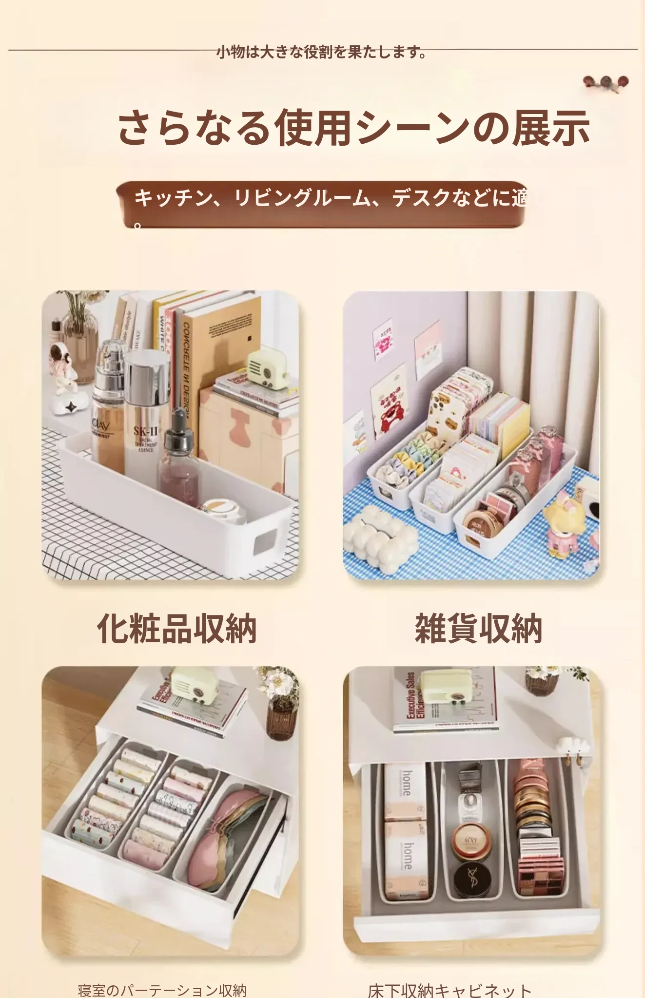 デスクトップ収納ボックス 引き出し内蔵仕切り付き 長方形整理ボックス 寮生活に最適!化粧品や雑貨をスッキリ整理できる便利アイテム!