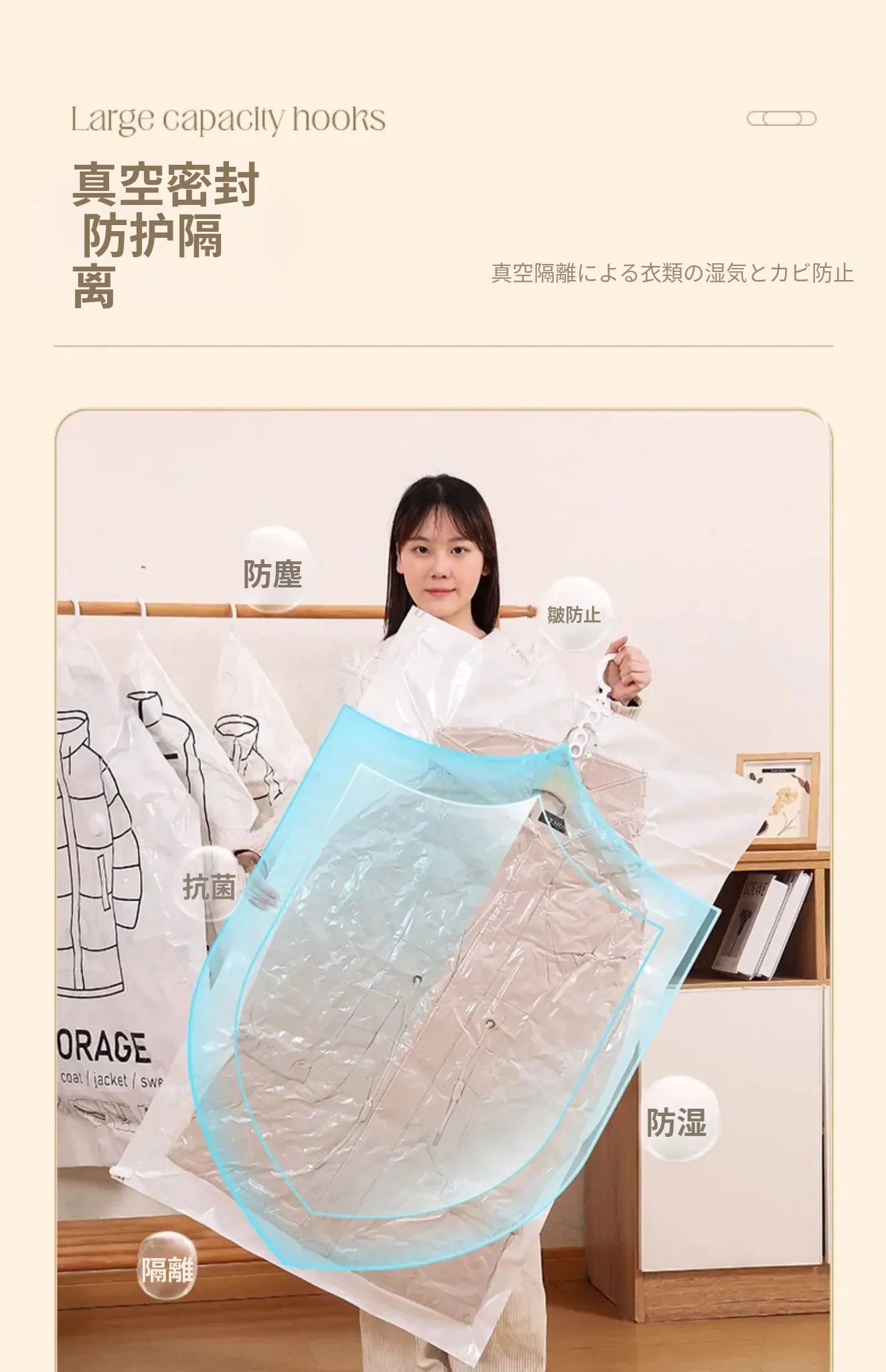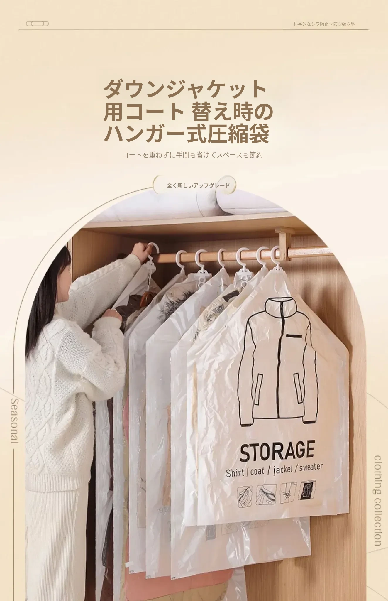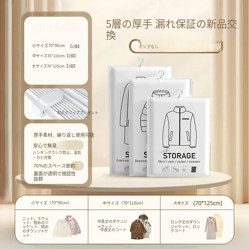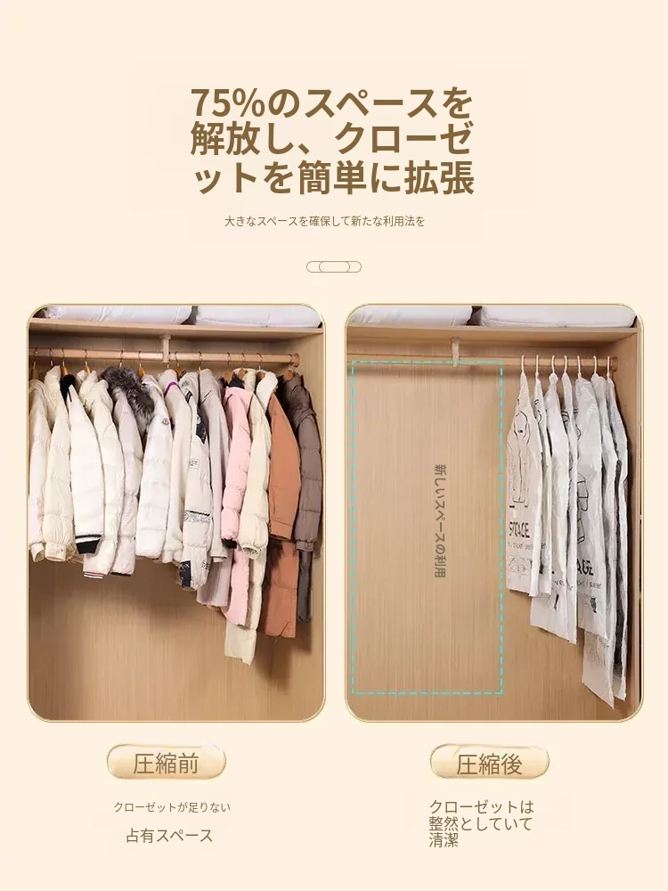 ダウンジャケット防塵袋 クローゼット用ハンガー式衣類カバー コートやスーツの保護カバー 家庭用真空圧縮収納袋で、衣服をすっきり整理!さあ、クローゼットをスリムに!