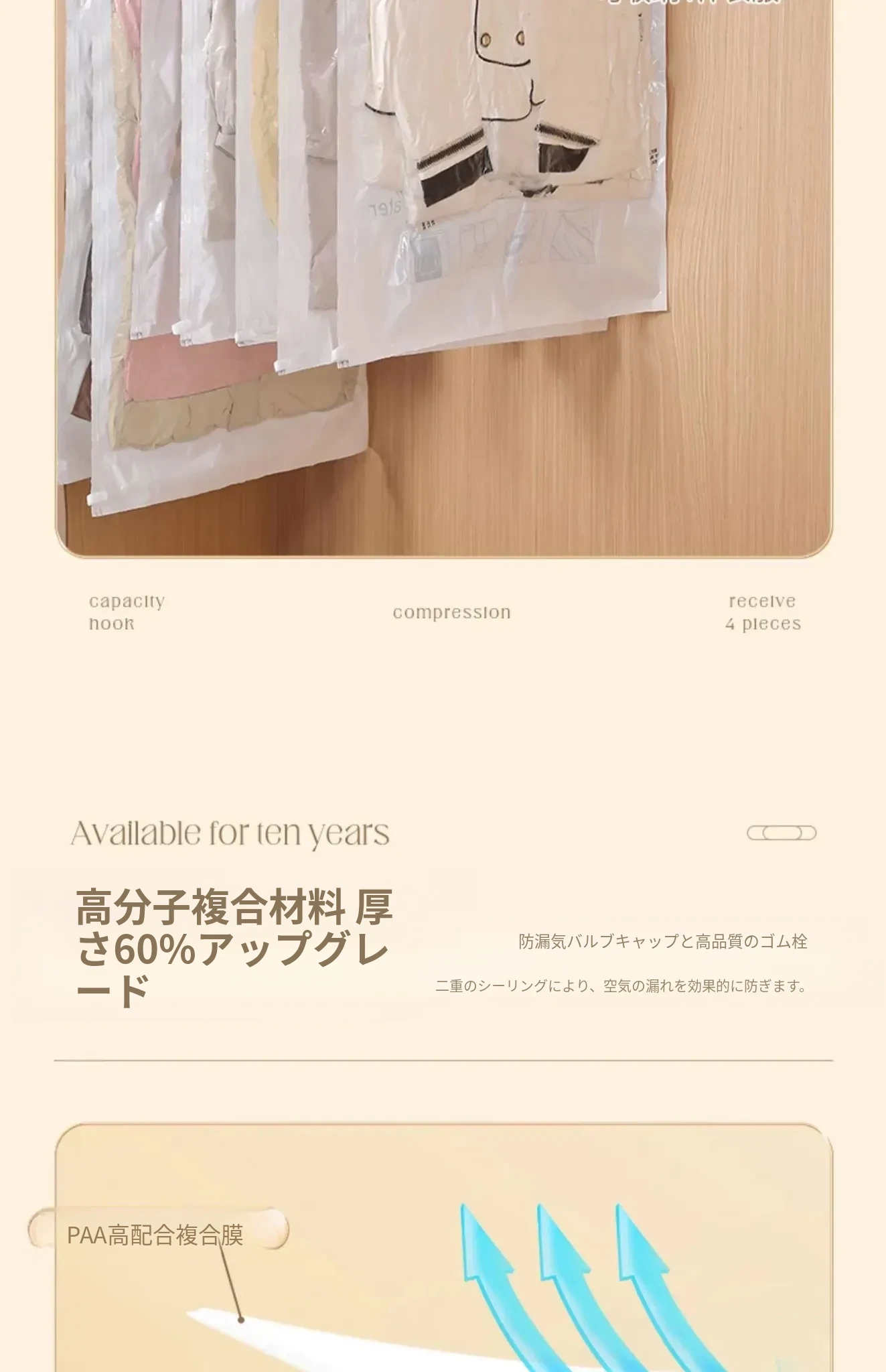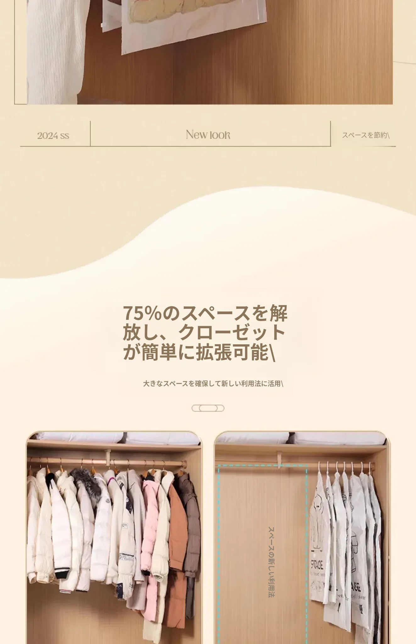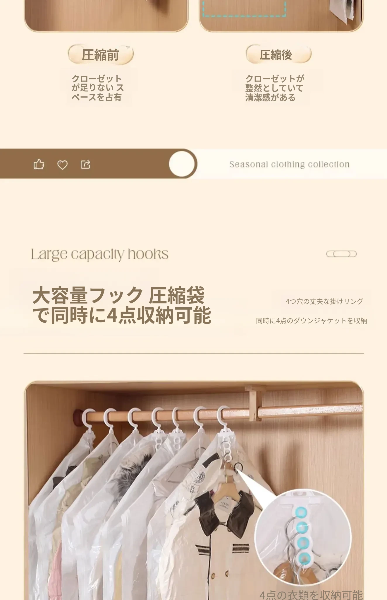 ダウンジャケット防塵袋 クローゼット用ハンガー式衣類カバー コートやスーツの保護カバー 家庭用真空圧縮収納袋で、衣服をすっきり整理!さあ、クローゼットをスリムに!