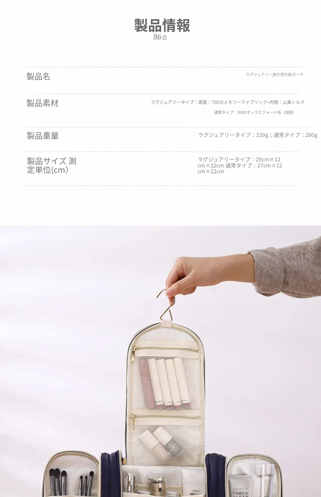 軽奢感漂う大容量多機能トラベル化粧ポーチ!便利な収納力で、出張や旅行に最適。防水設計で洗面用具も安心!あなたの美をいつでも、どこでもサポートします。