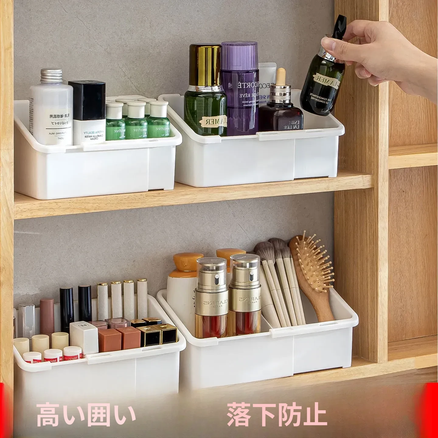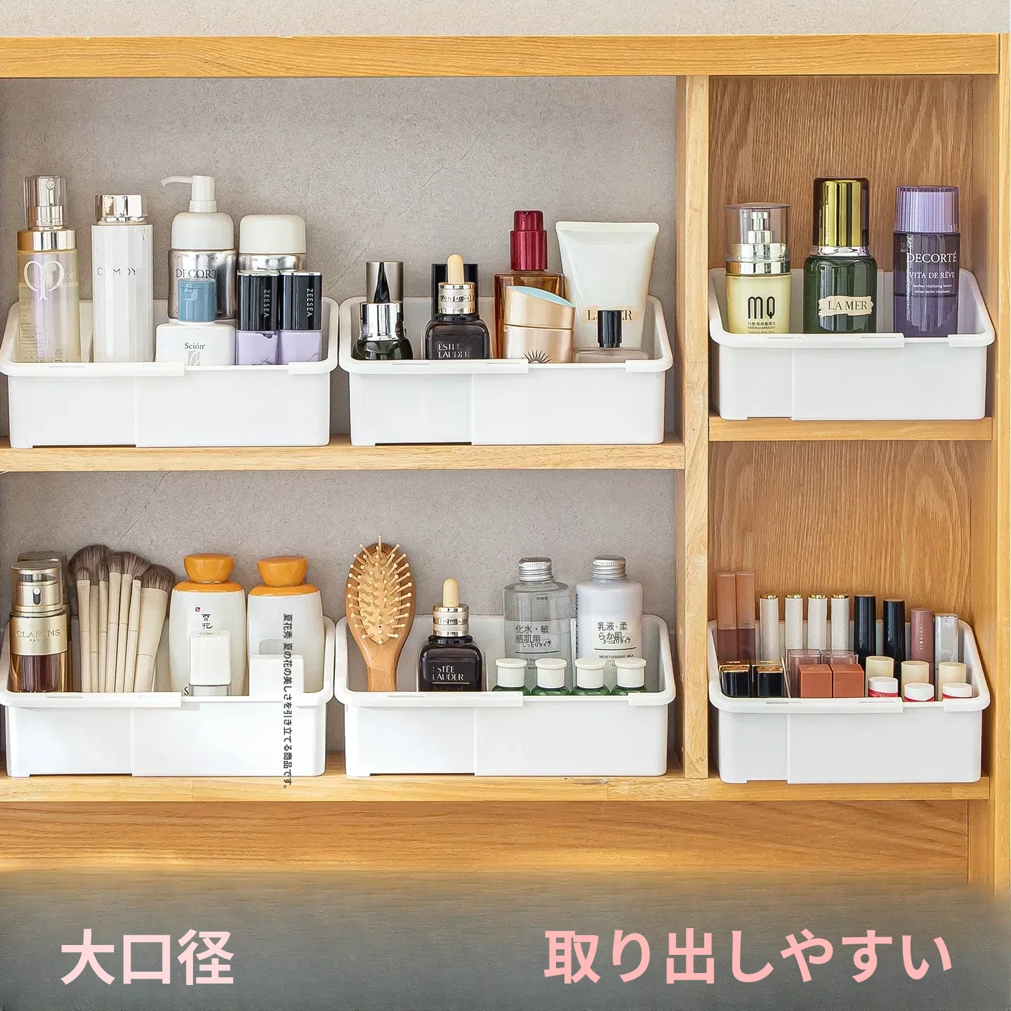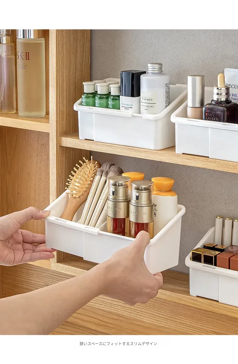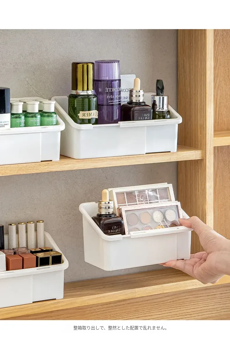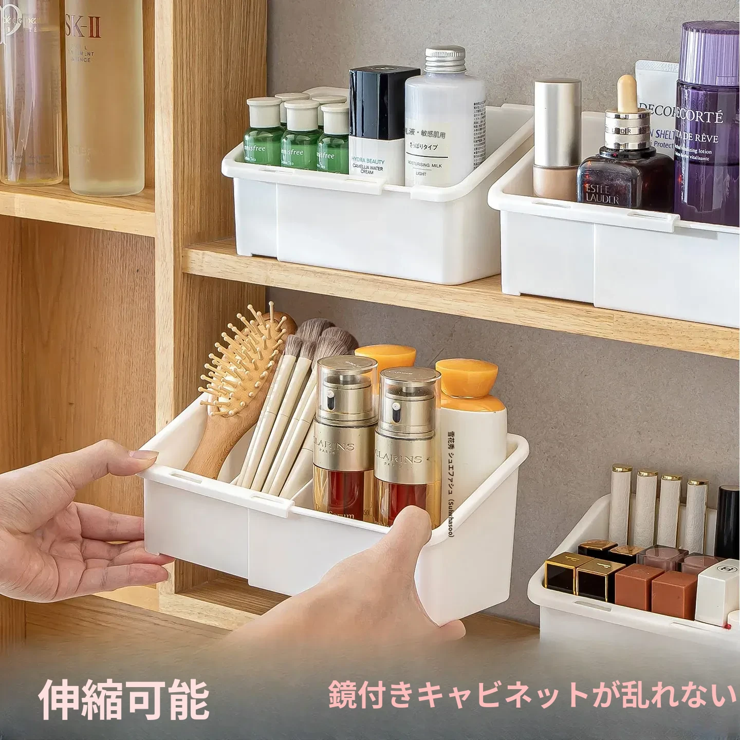 バスルームミラーキャビネット収納ボックス - 伸縮可能で化粧品やリップ、フェイスマスクを整理整頓!洗面所や浴室にぴったりの仕切り付きラックで、すっきりとした空間を実現!