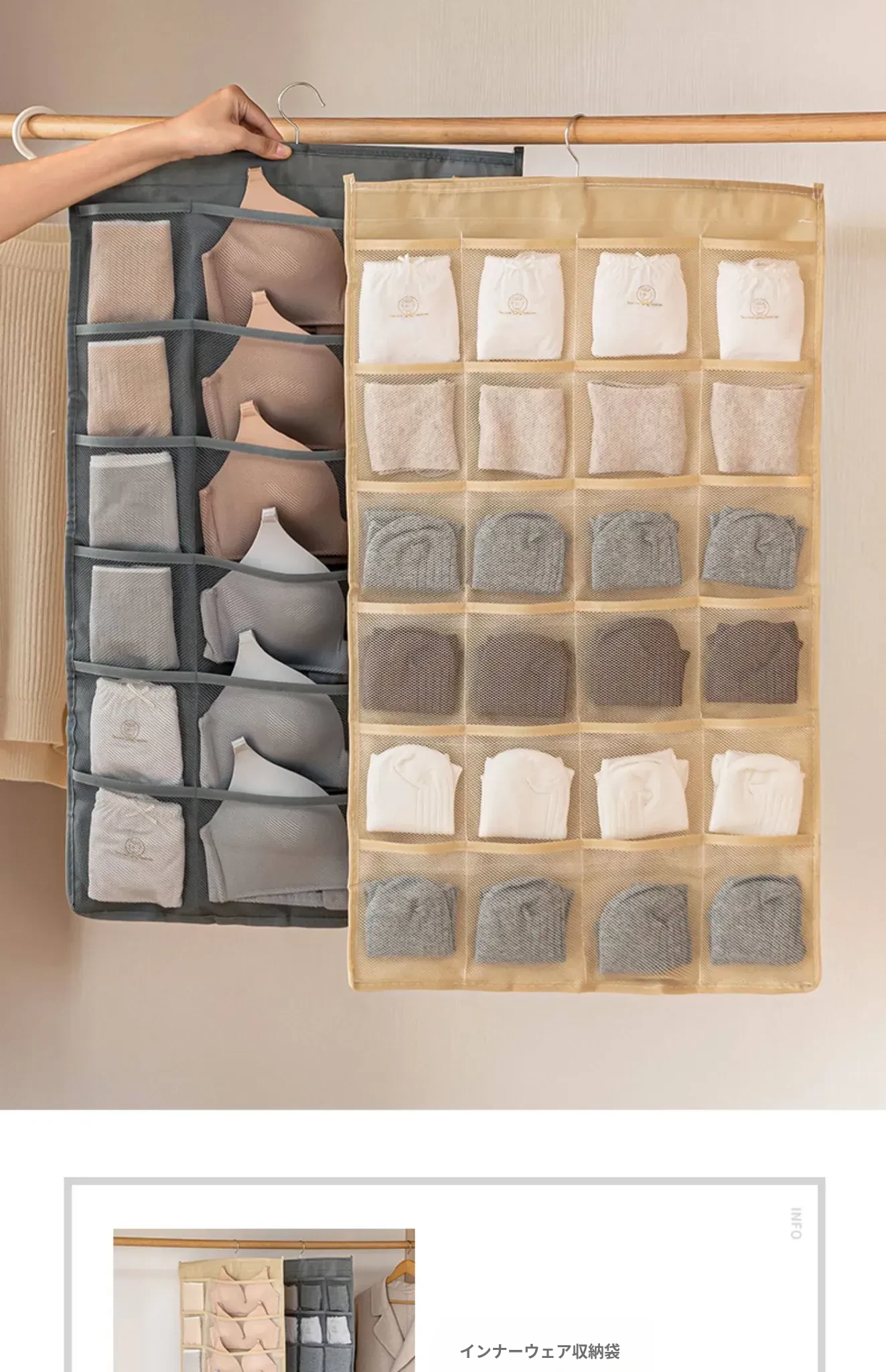 おしゃれな布製インナー収納バッグ|クローゼット整理の必需品|ブラジャー、靴下、パンティーもスッキリ収納|寮や家庭に最適な便利アイテム!