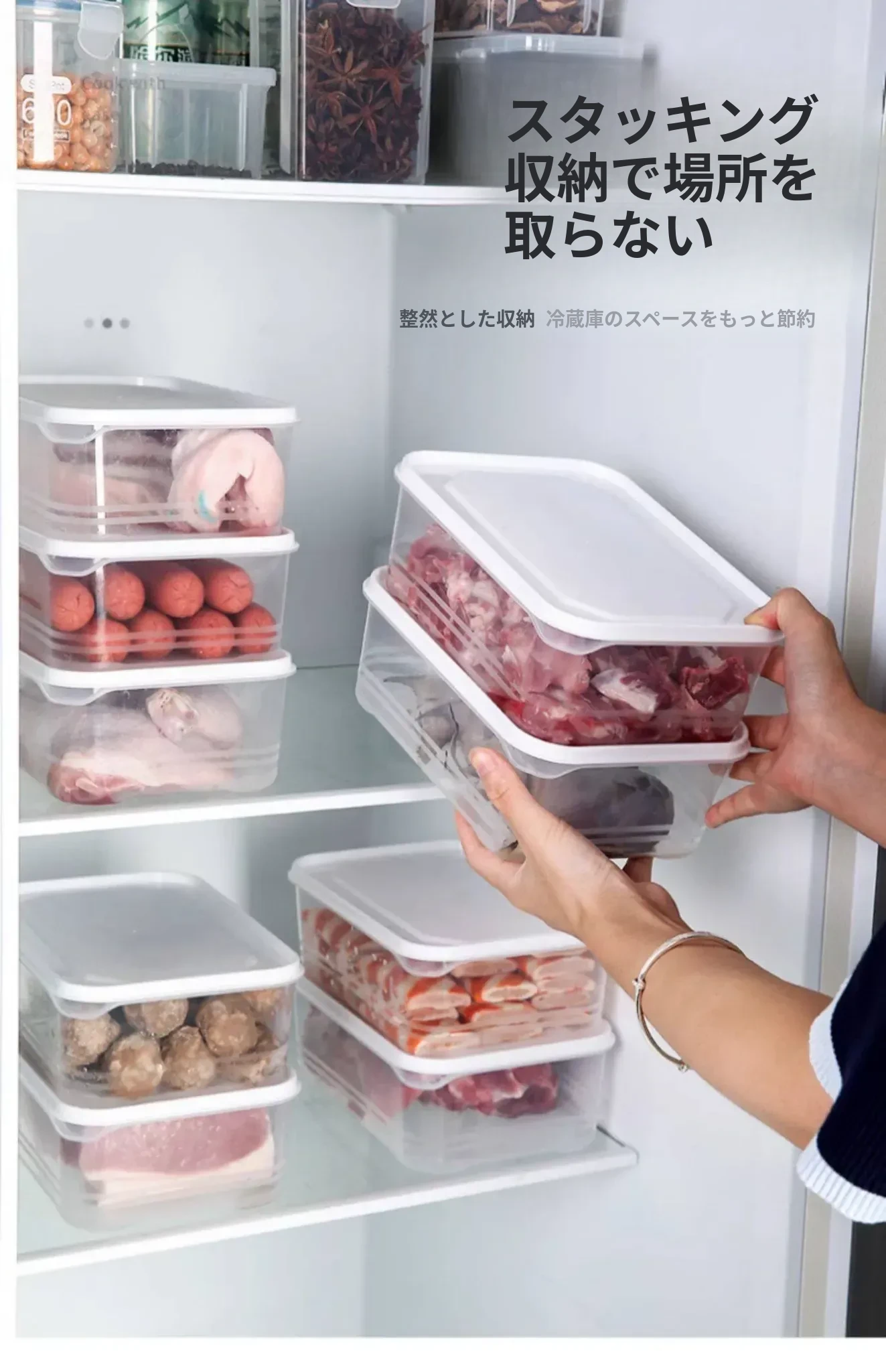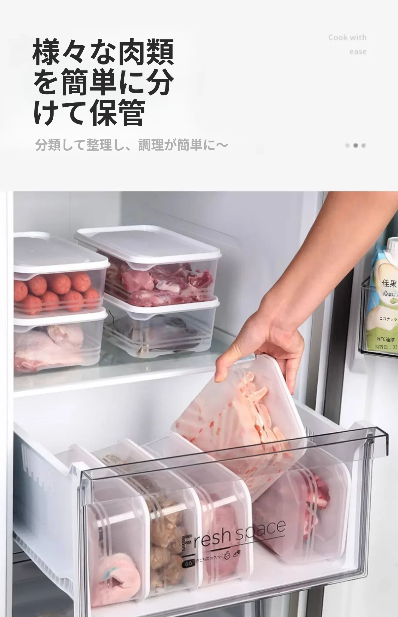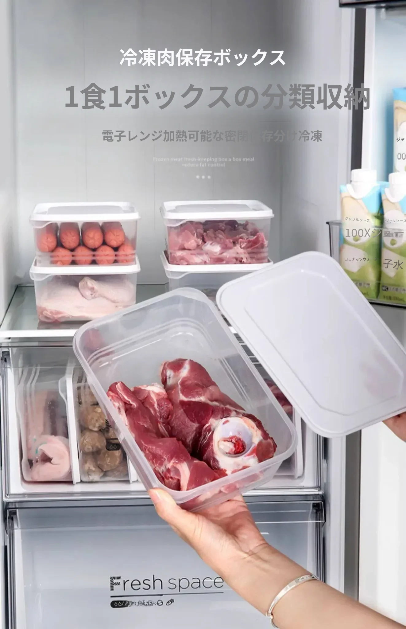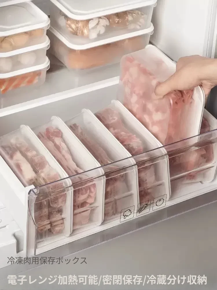 冷凍肉専用!食品グレードの整理収納ボックス - 電子レンジ対応・鮮度保持!便利な分けられるストレージボックスで、冷蔵庫をスッキリ整理しよう!