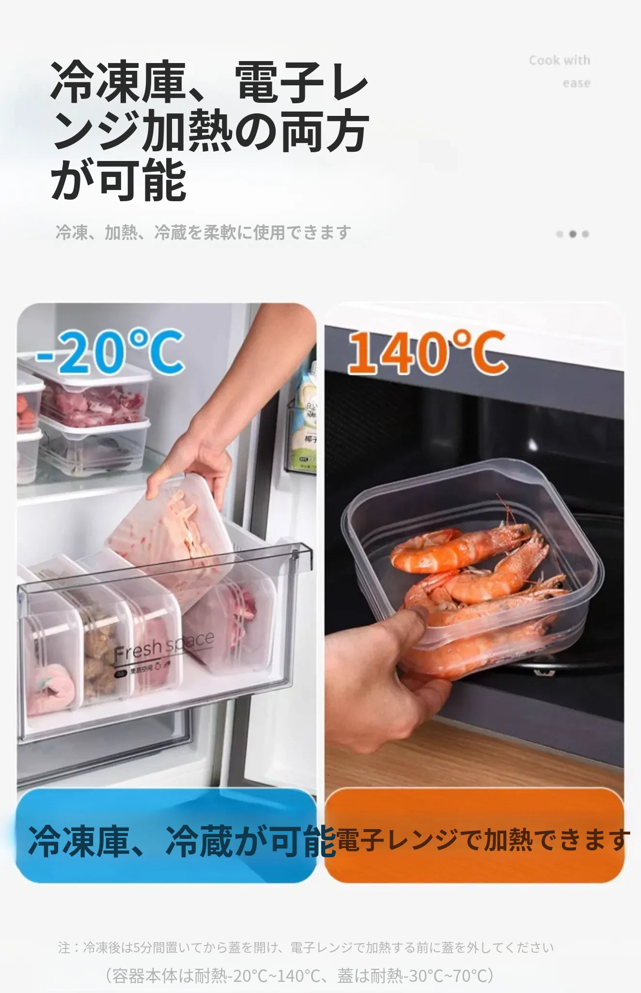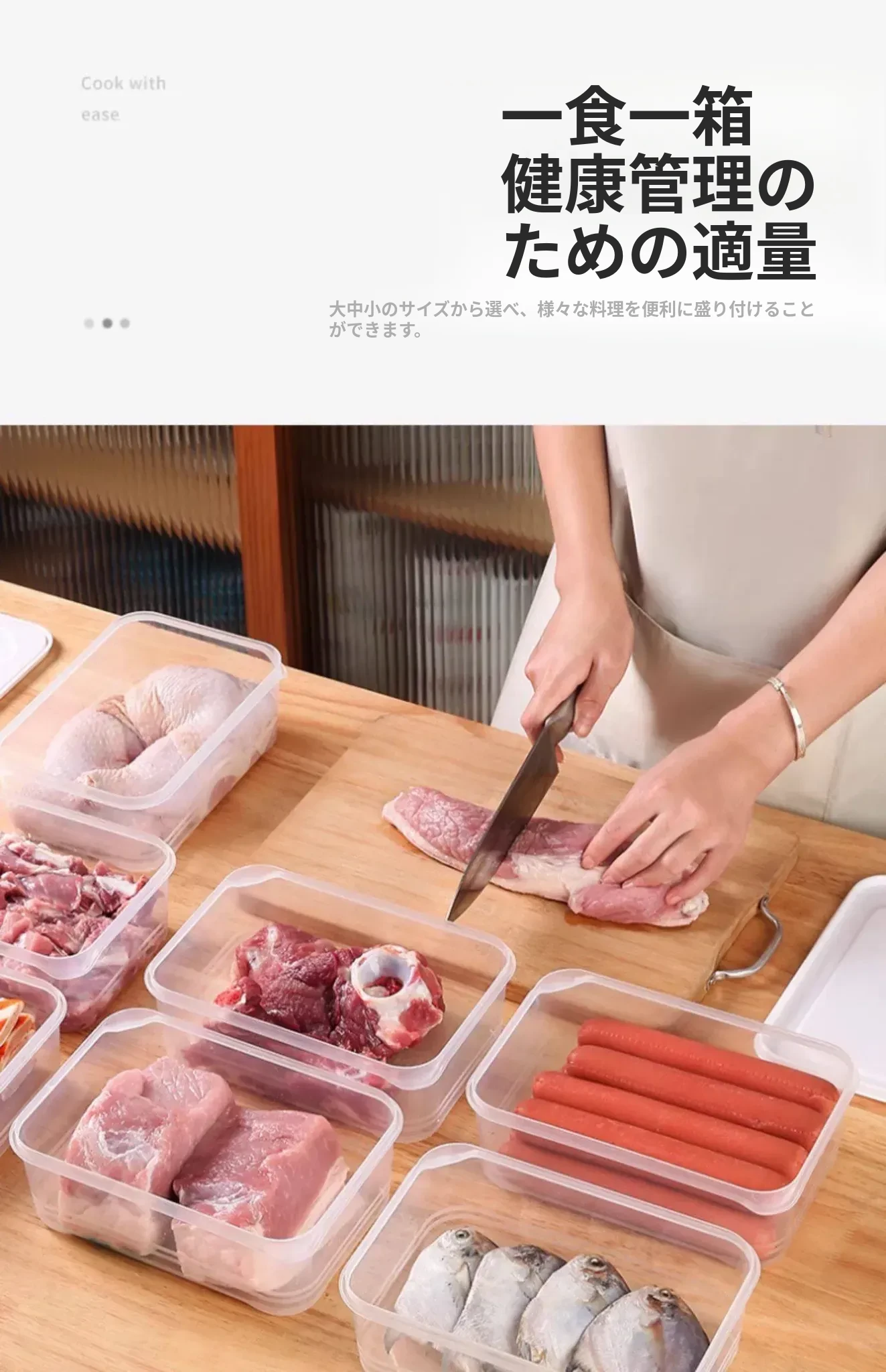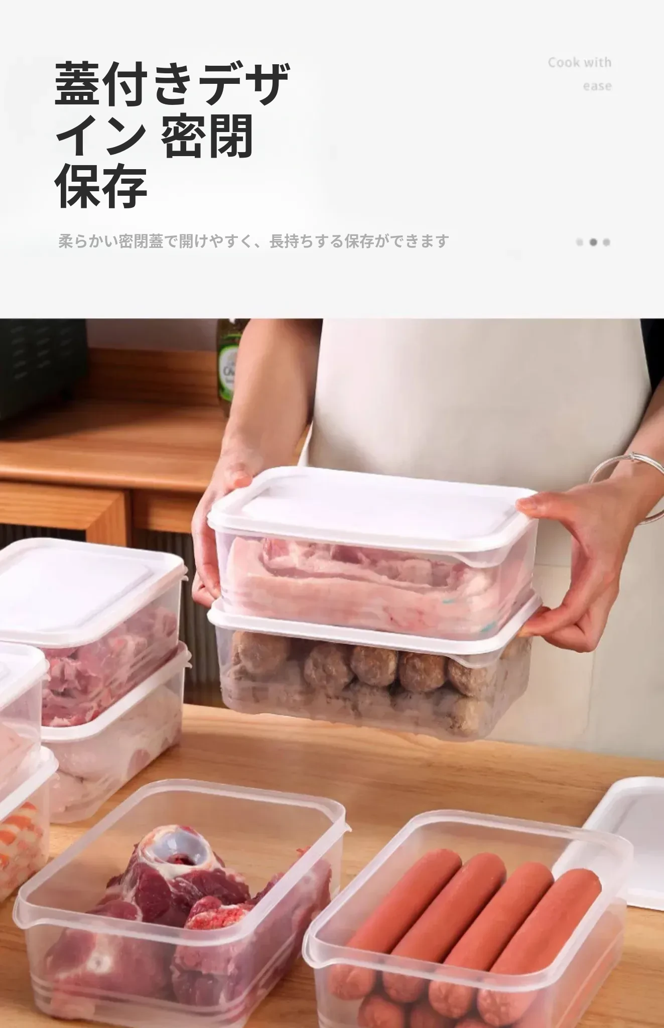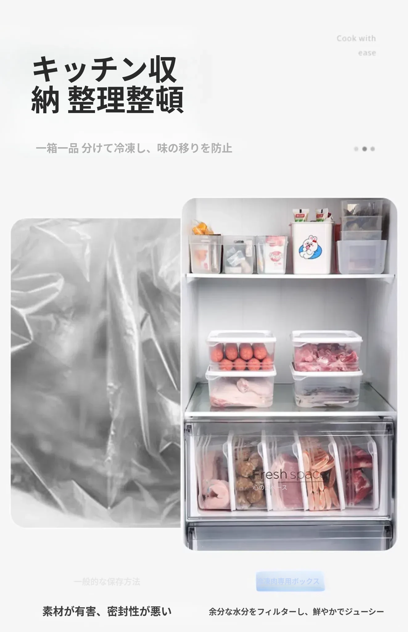 冷凍肉専用!食品グレードの整理収納ボックス - 電子レンジ対応・鮮度保持!便利な分けられるストレージボックスで、冷蔵庫をスッキリ整理しよう!