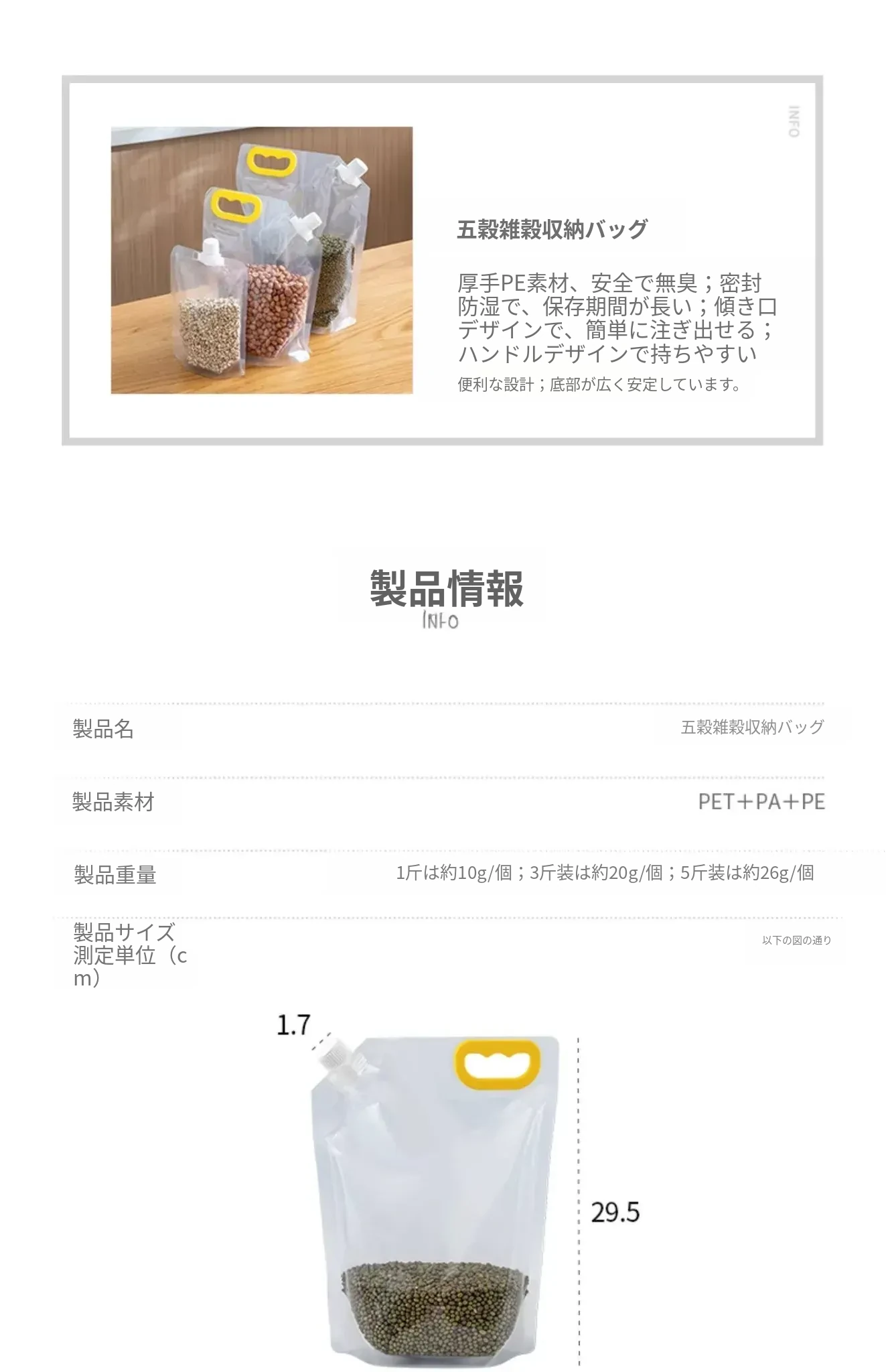 食品グレードの厚手五穀雑穀収納密封バッグ - キッチンでの米の分け収納に最適!湿気・虫から守る大容量タイプで、家庭での保存も安心!