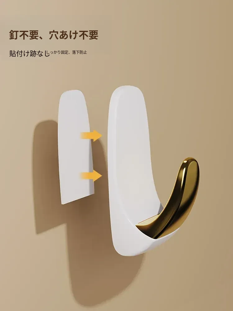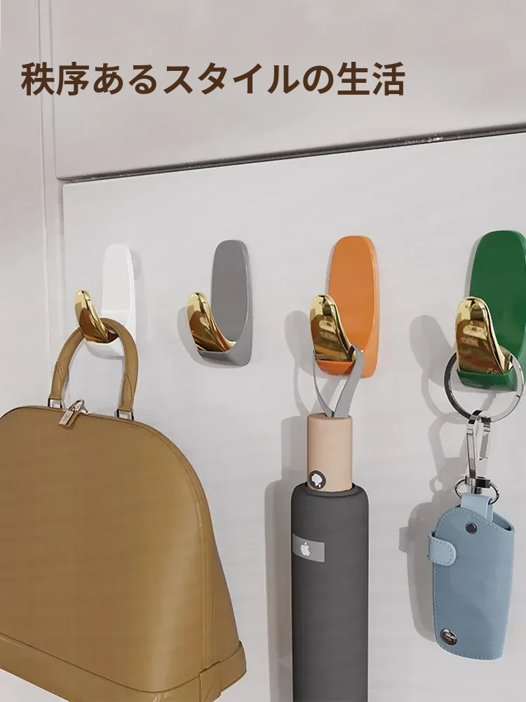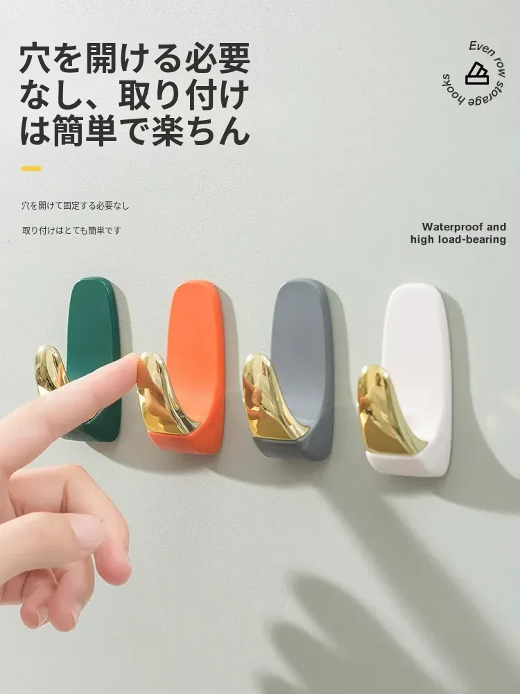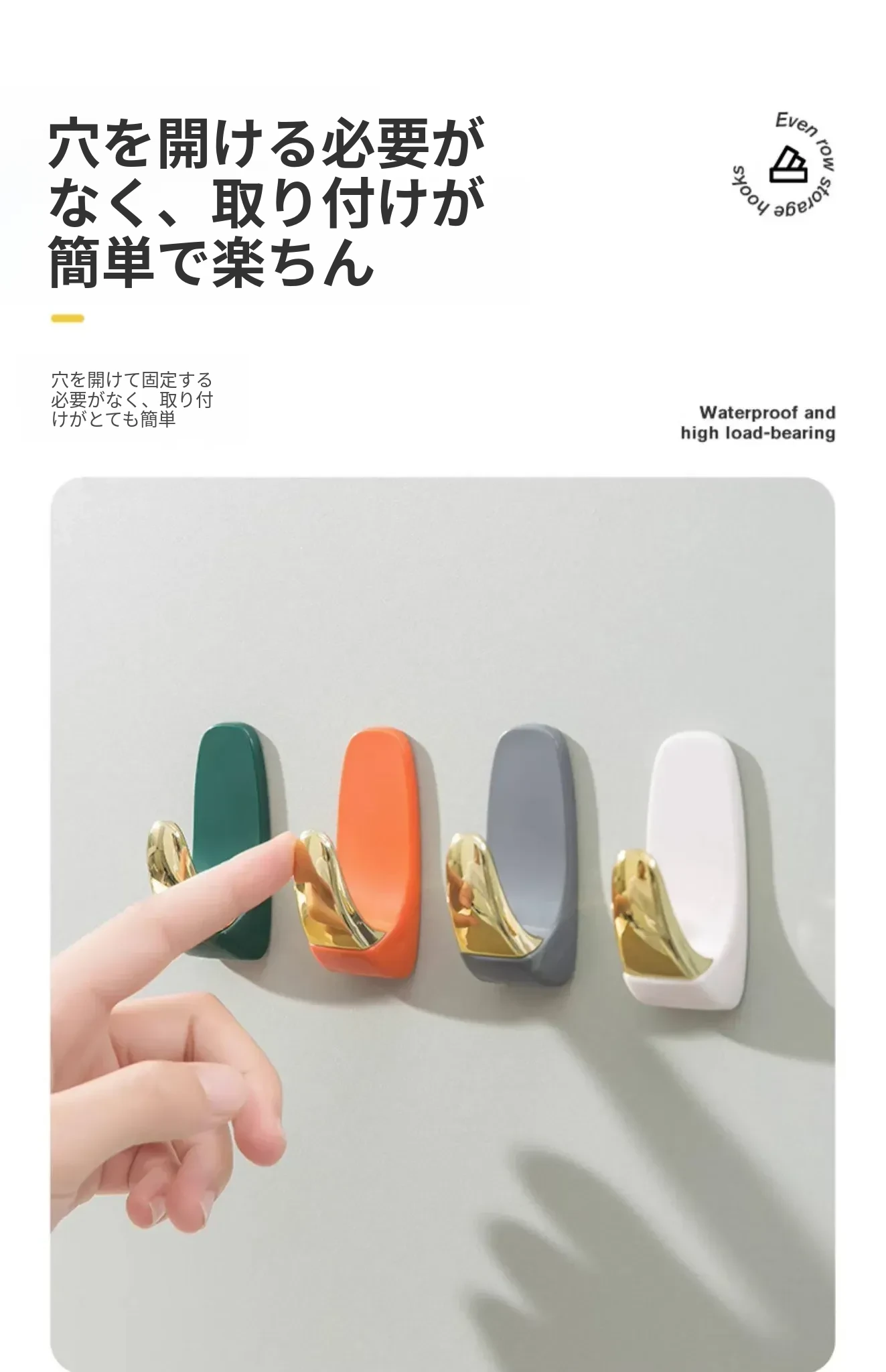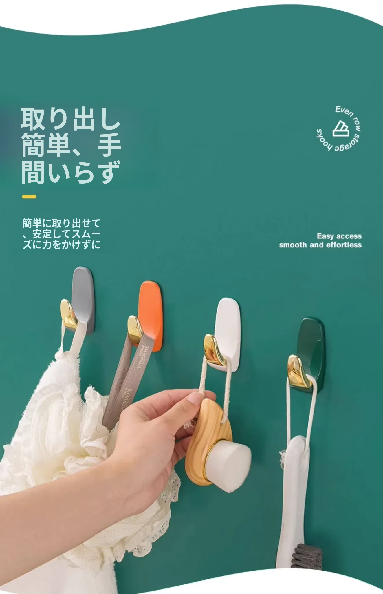 強力粘着フック - 穴あけ不要で取り付け簡単!バスルームやトイレに最適な無痕フック、タオルや小物をしっかりサポート!ドア裏や壁掛けにも使える便利アイテム!