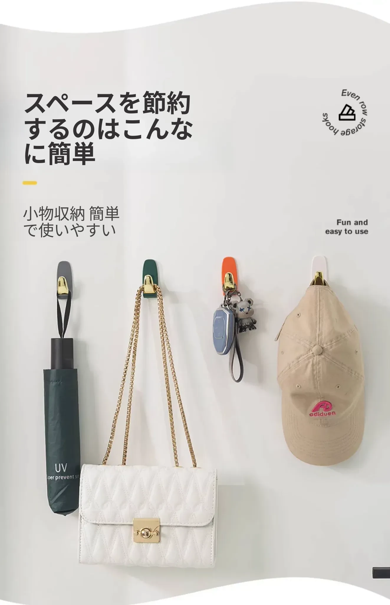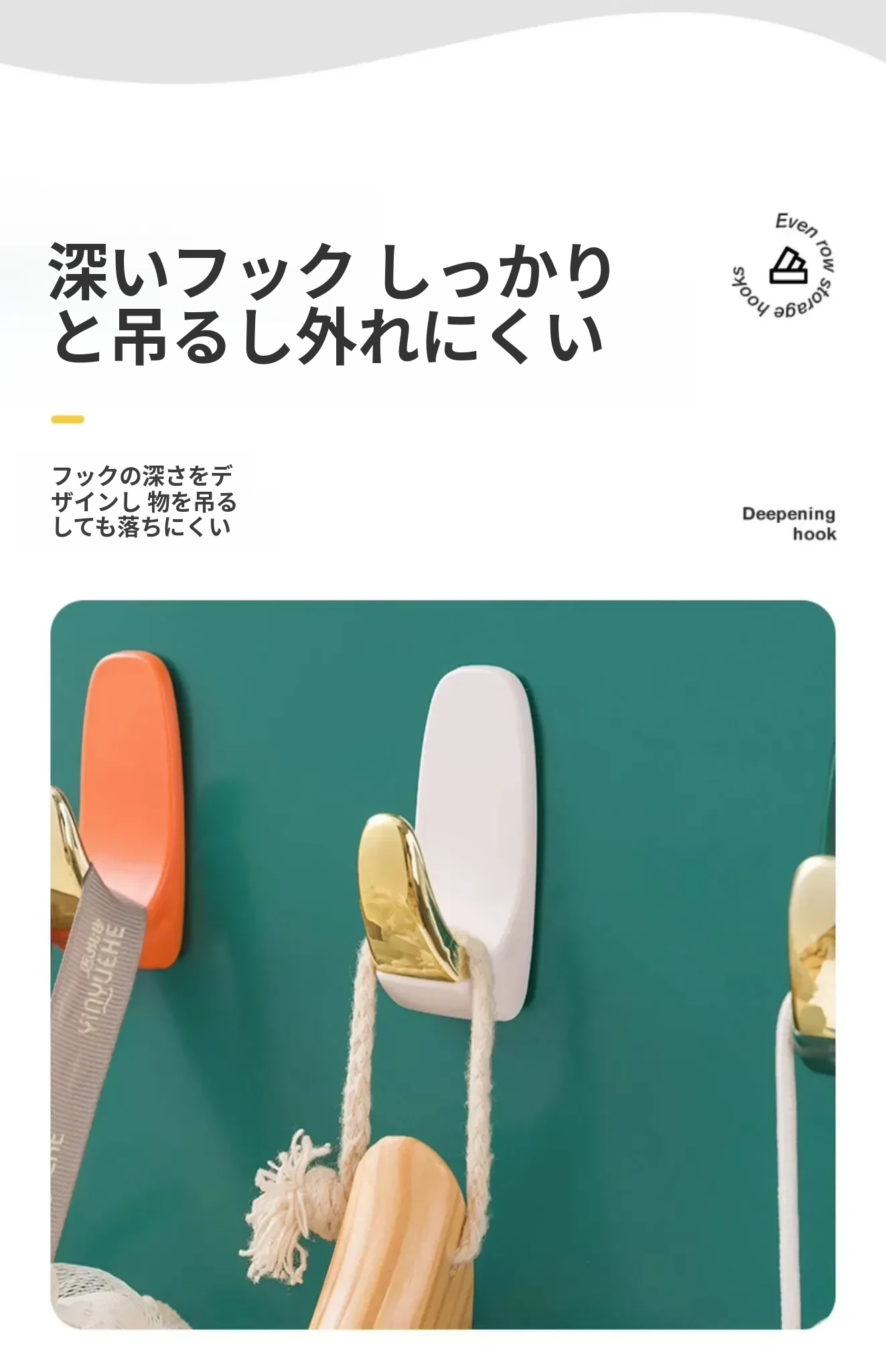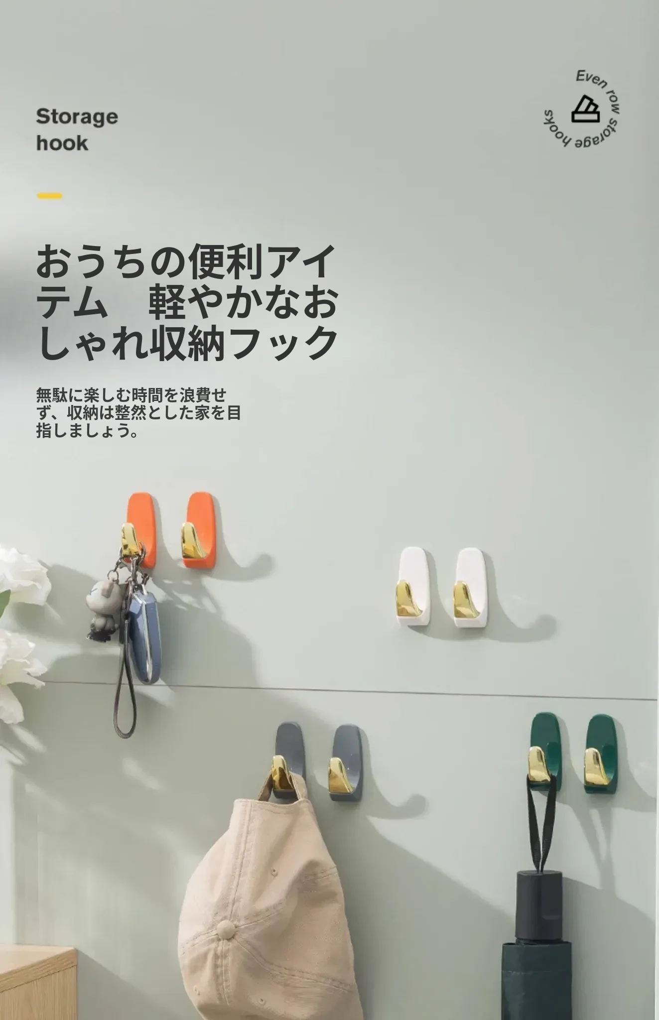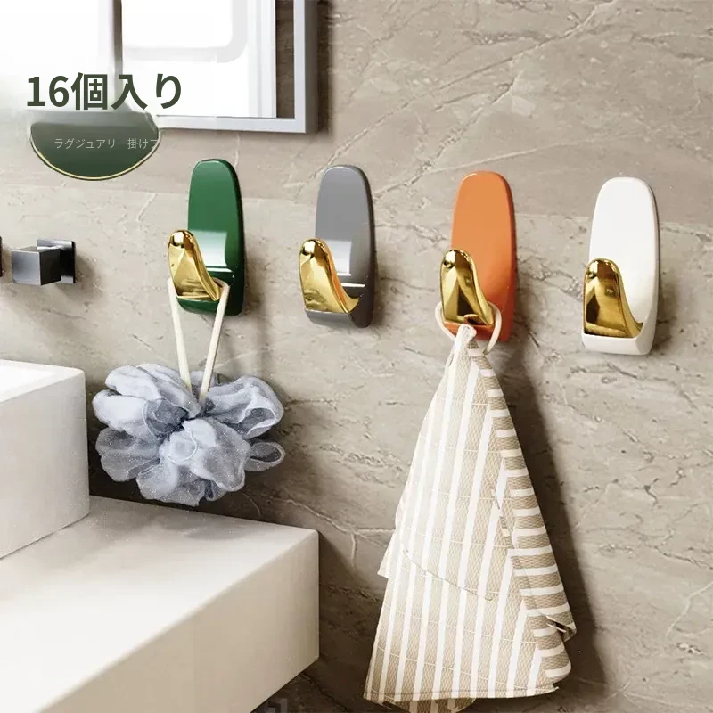 強力粘着フック - 穴あけ不要で取り付け簡単!バスルームやトイレに最適な無痕フック、タオルや小物をしっかりサポート!ドア裏や壁掛けにも使える便利アイテム!