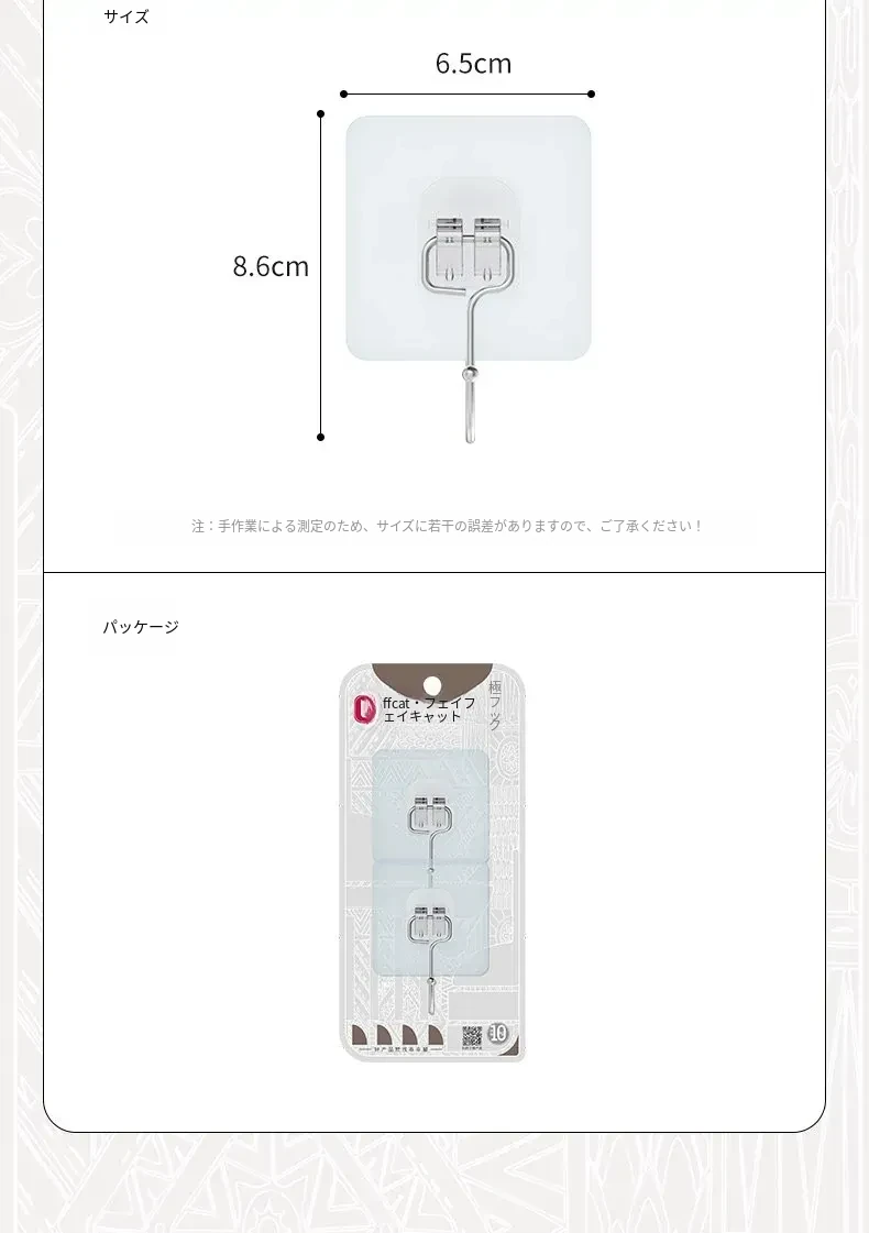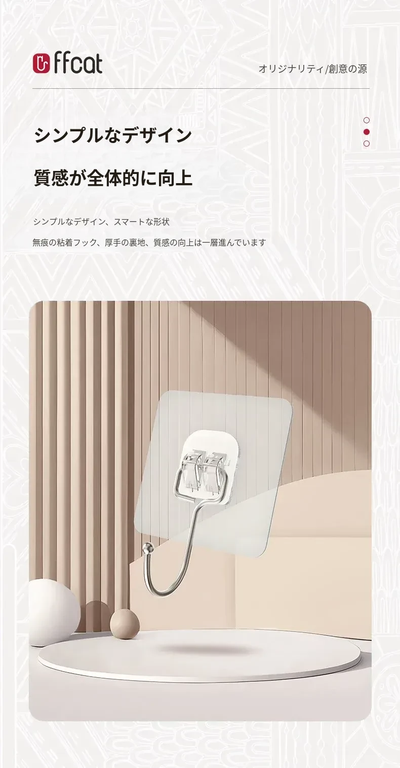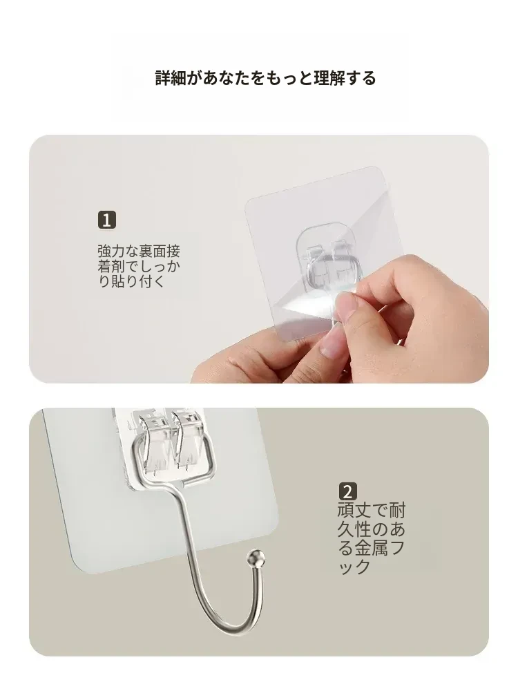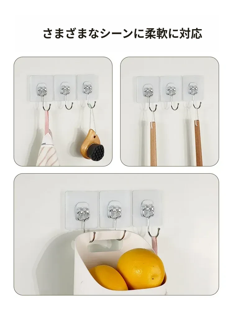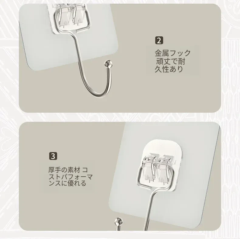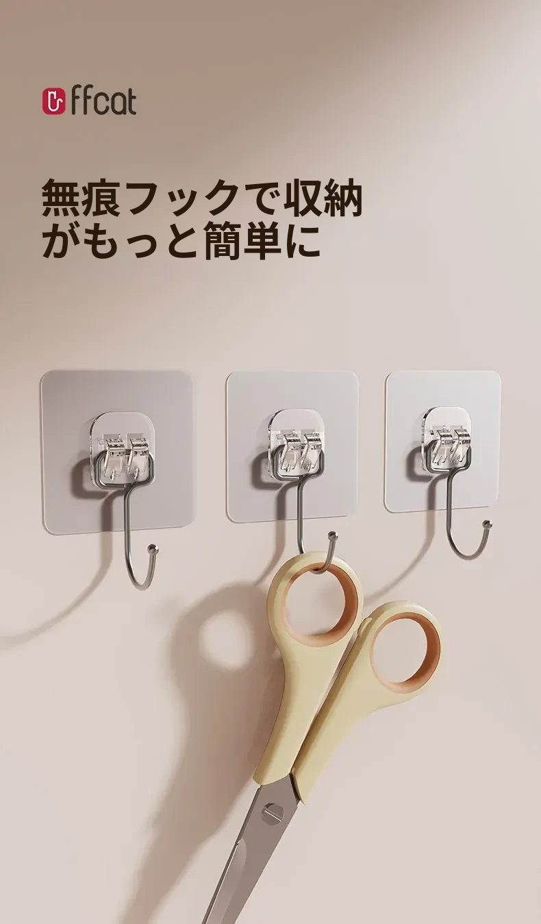 強力粘着フック|穴を開けずに取り付け可能!キッチンやバスルームに最適な無痕壁掛けフック。便利でおしゃれな収納を実現!