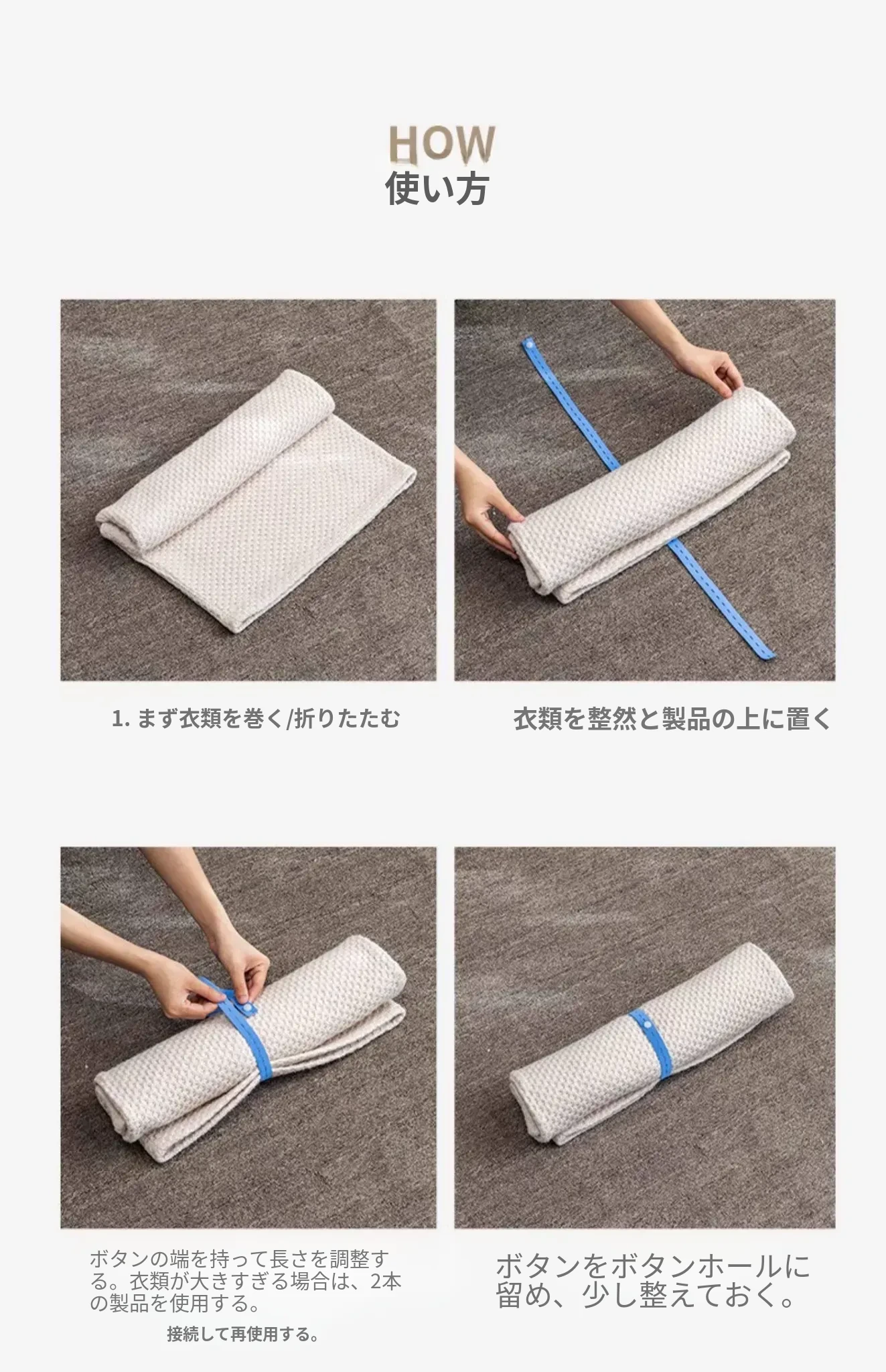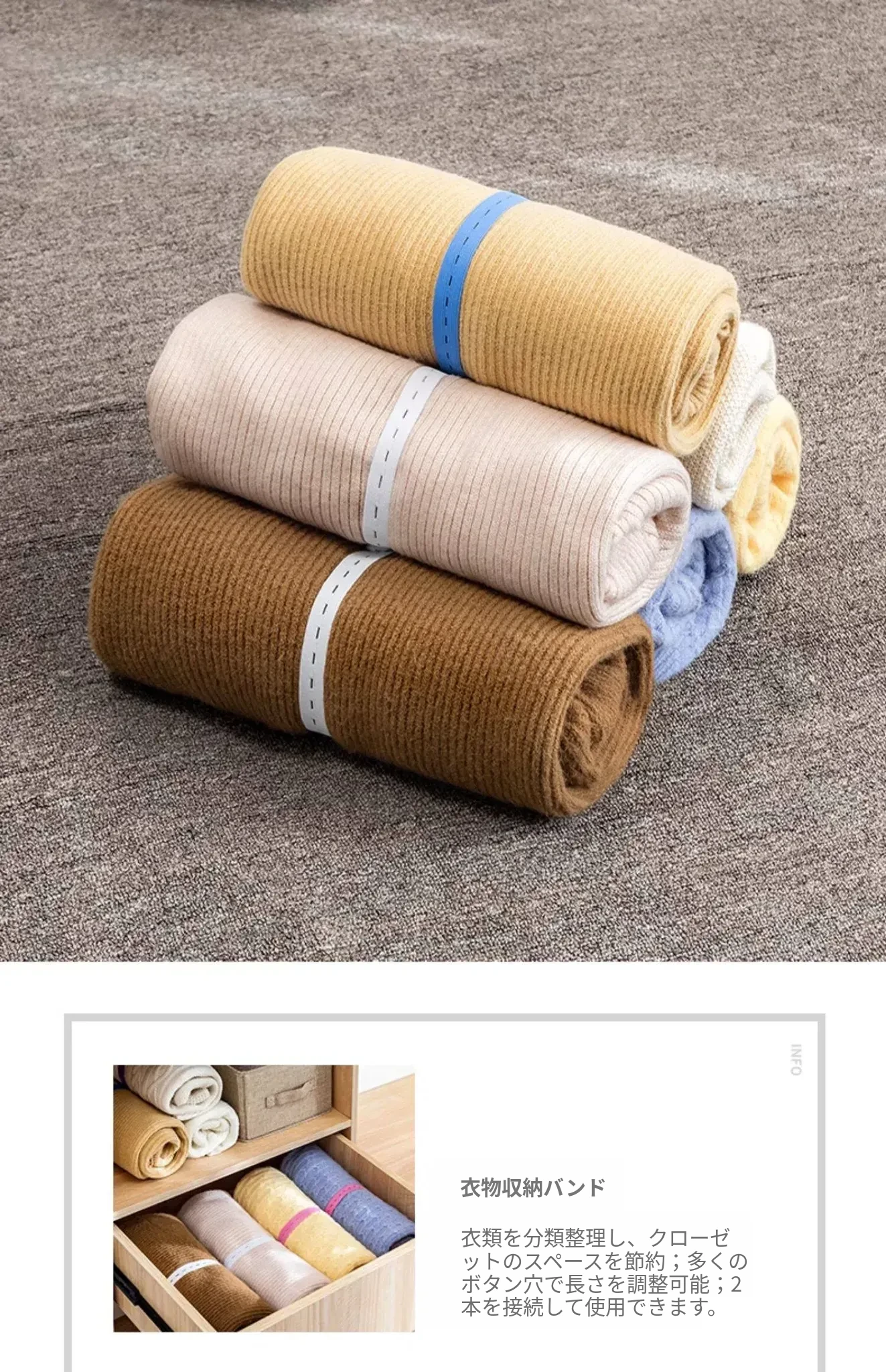 ララ巻き衣類収納グッズ|服・布団を簡単にまとめるバンドと折りたたみボード|セーターやパンツの整理に最適!手間いらずの収納でスッキリ!
