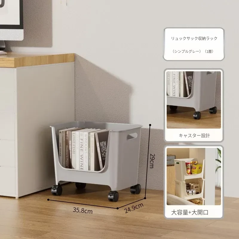 【シンプルグレー一段】バックパック収納ラック❤️キャスター付き