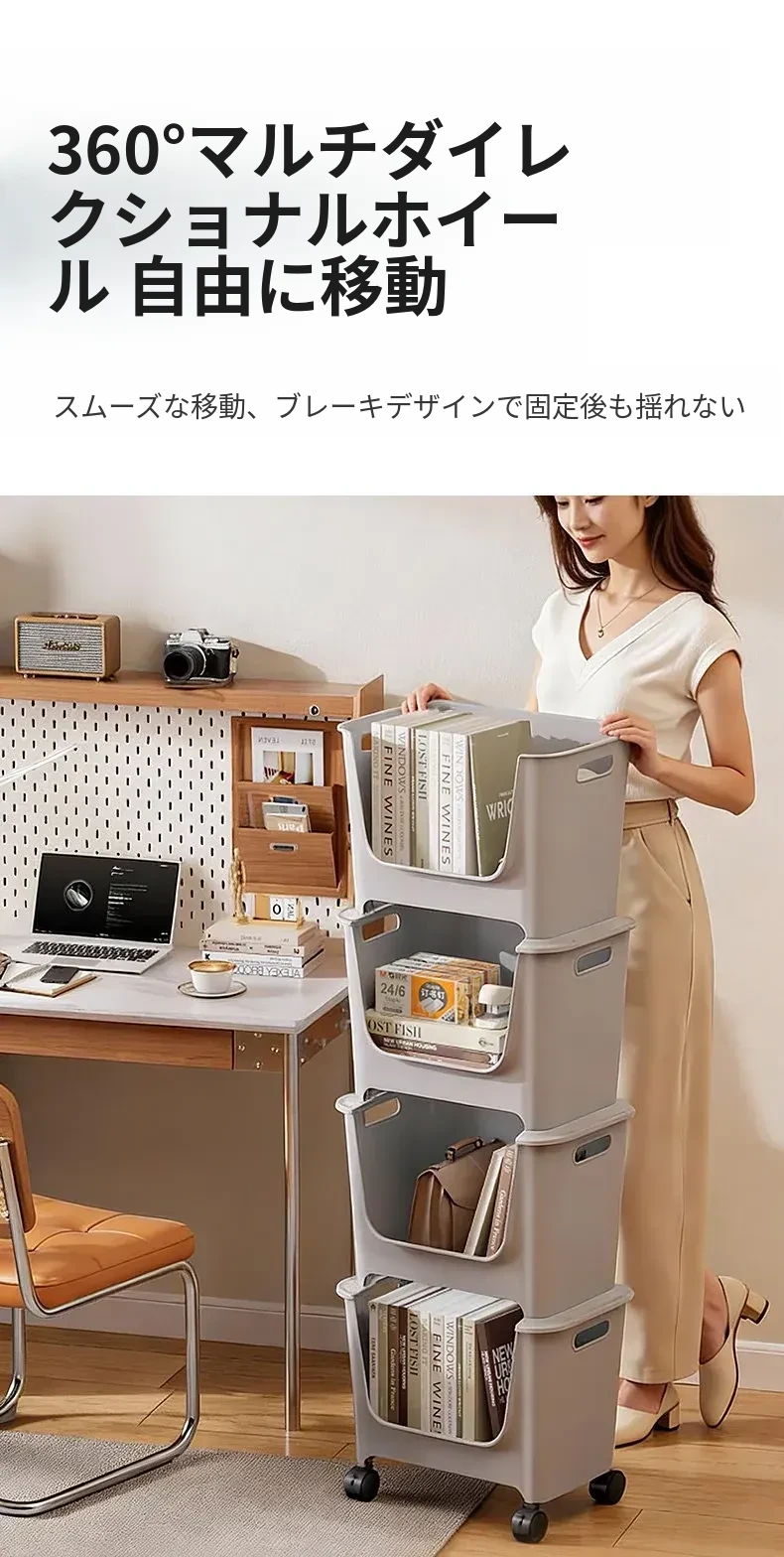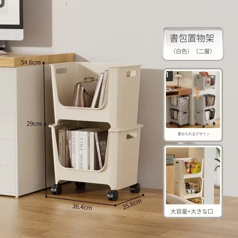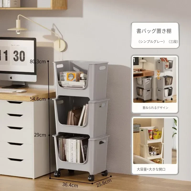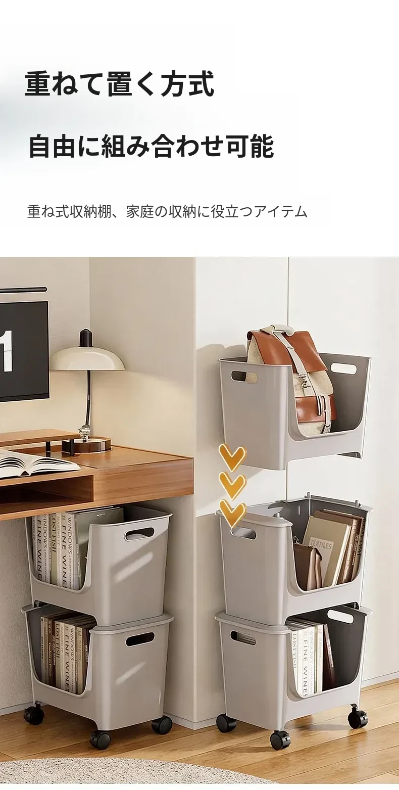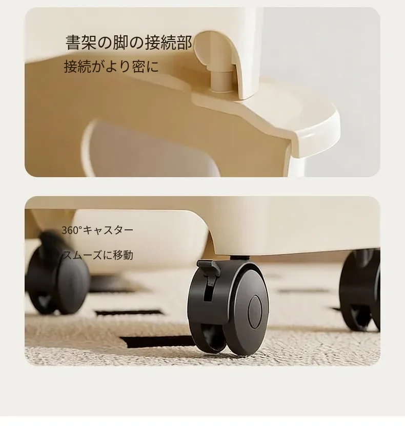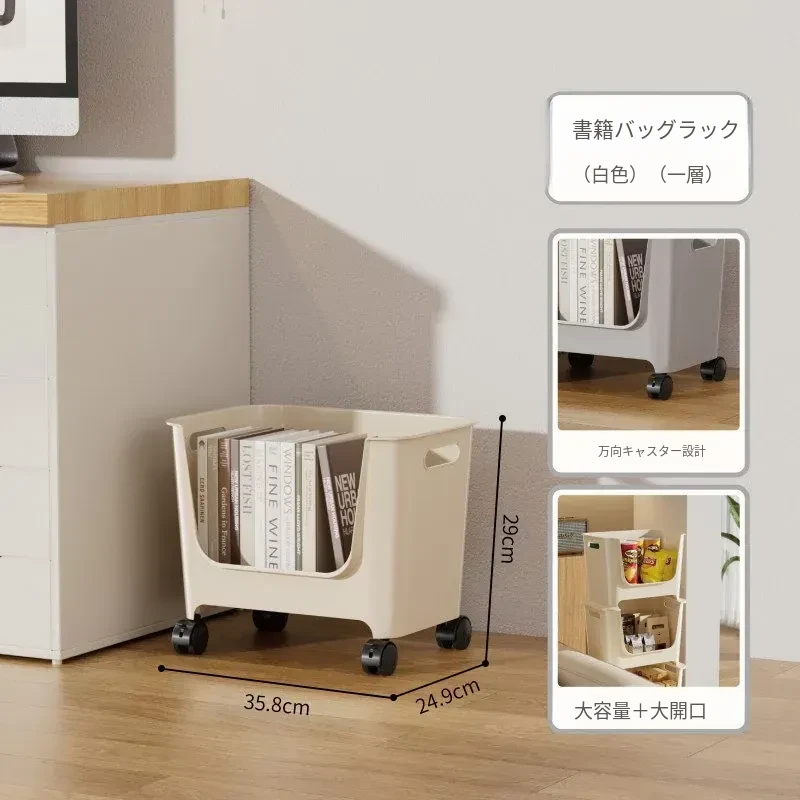 移動式ブックシェルフ!オフィスや寮に最適なデスク下収納。多層構造で、キャスター付きの小型プッシュワゴンが本や雑貨をスッキリ整理。便利さとスタイルを両立!