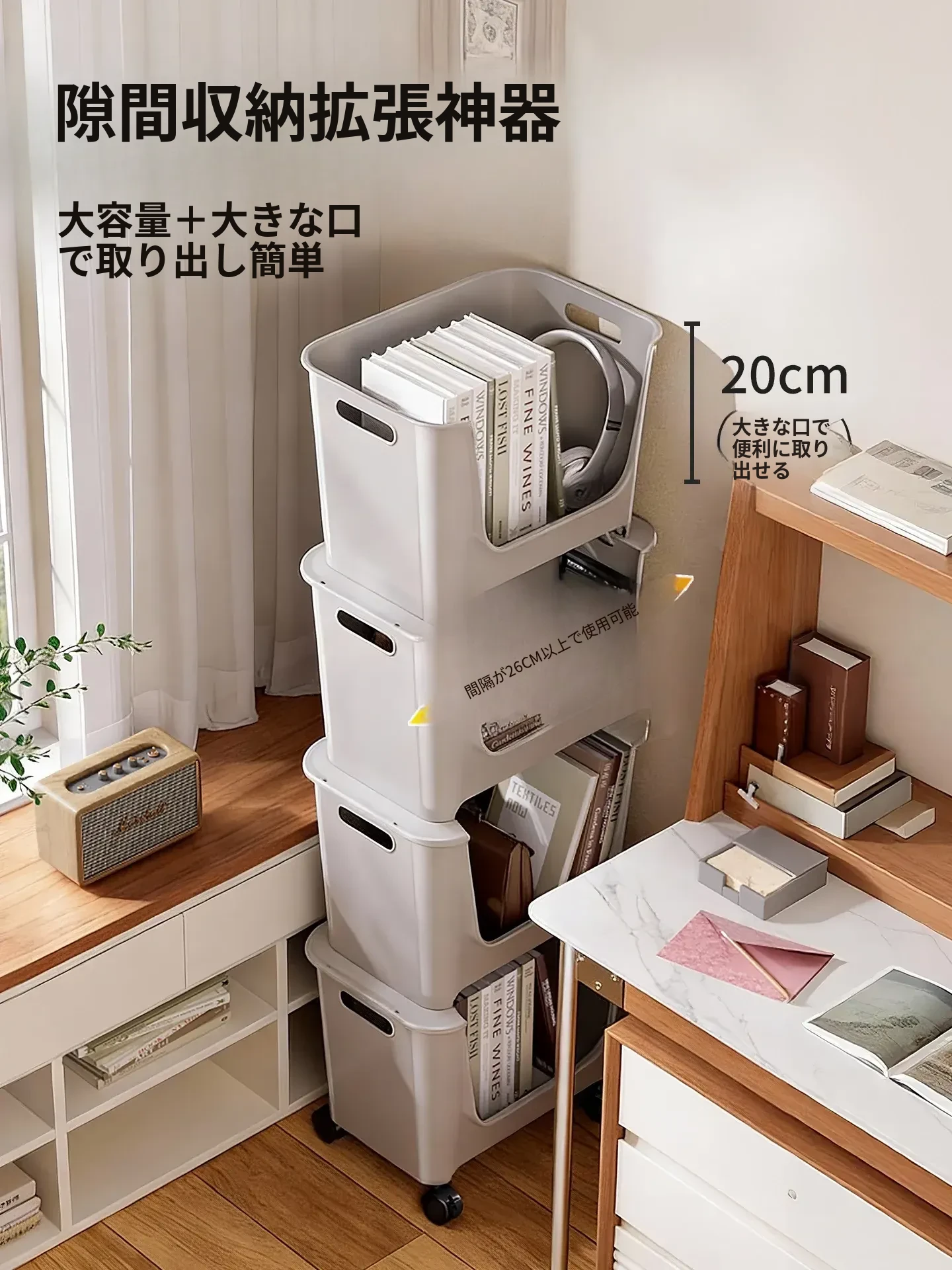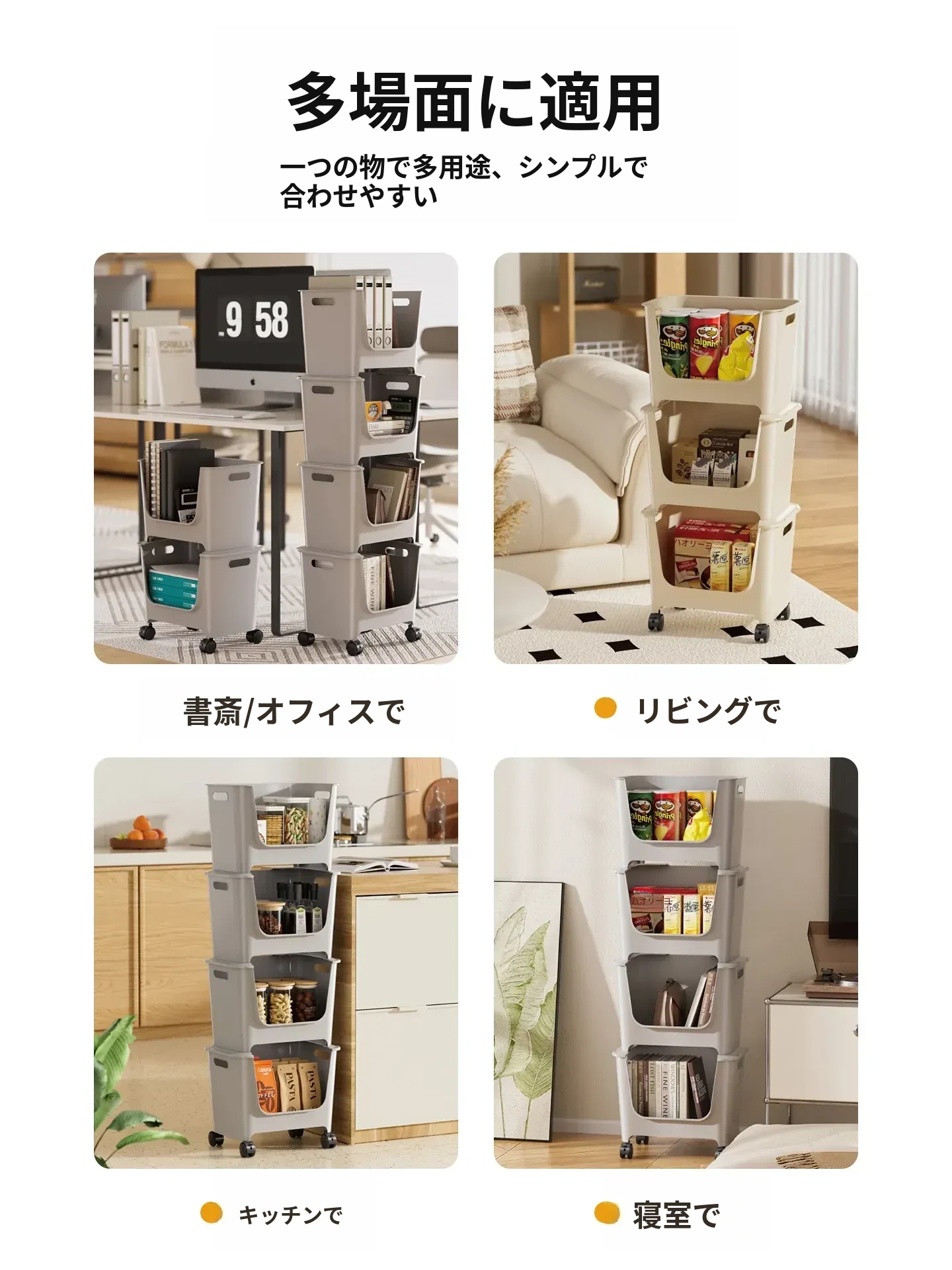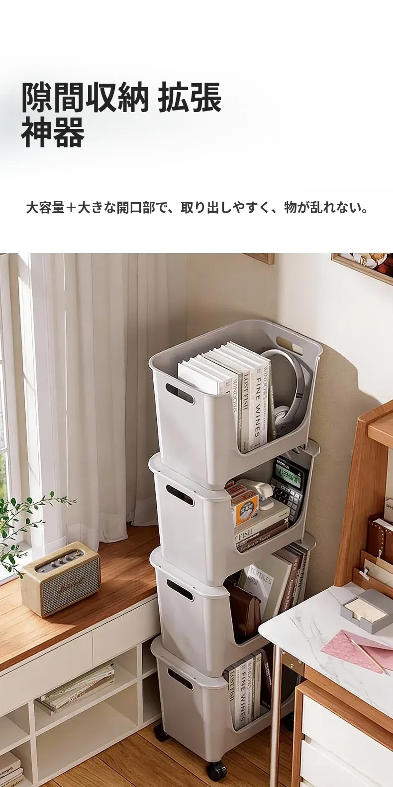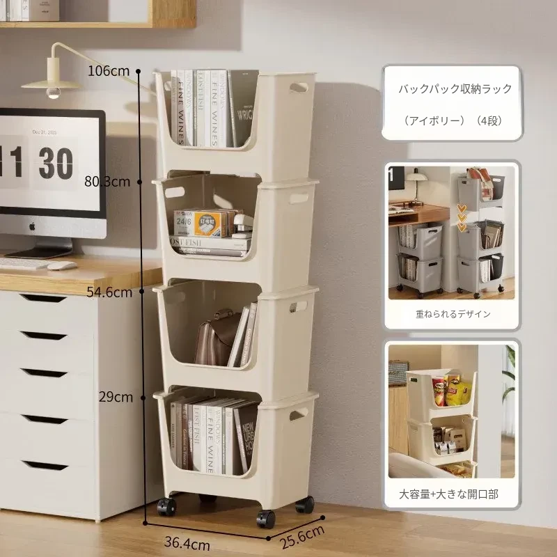 移動式ブックシェルフ!オフィスや寮に最適なデスク下収納。多層構造で、キャスター付きの小型プッシュワゴンが本や雑貨をスッキリ整理。便利さとスタイルを両立!