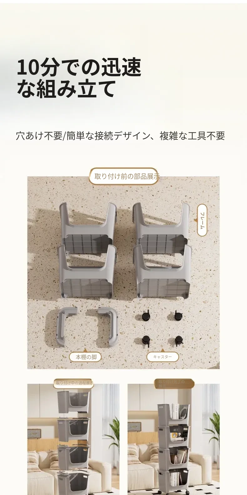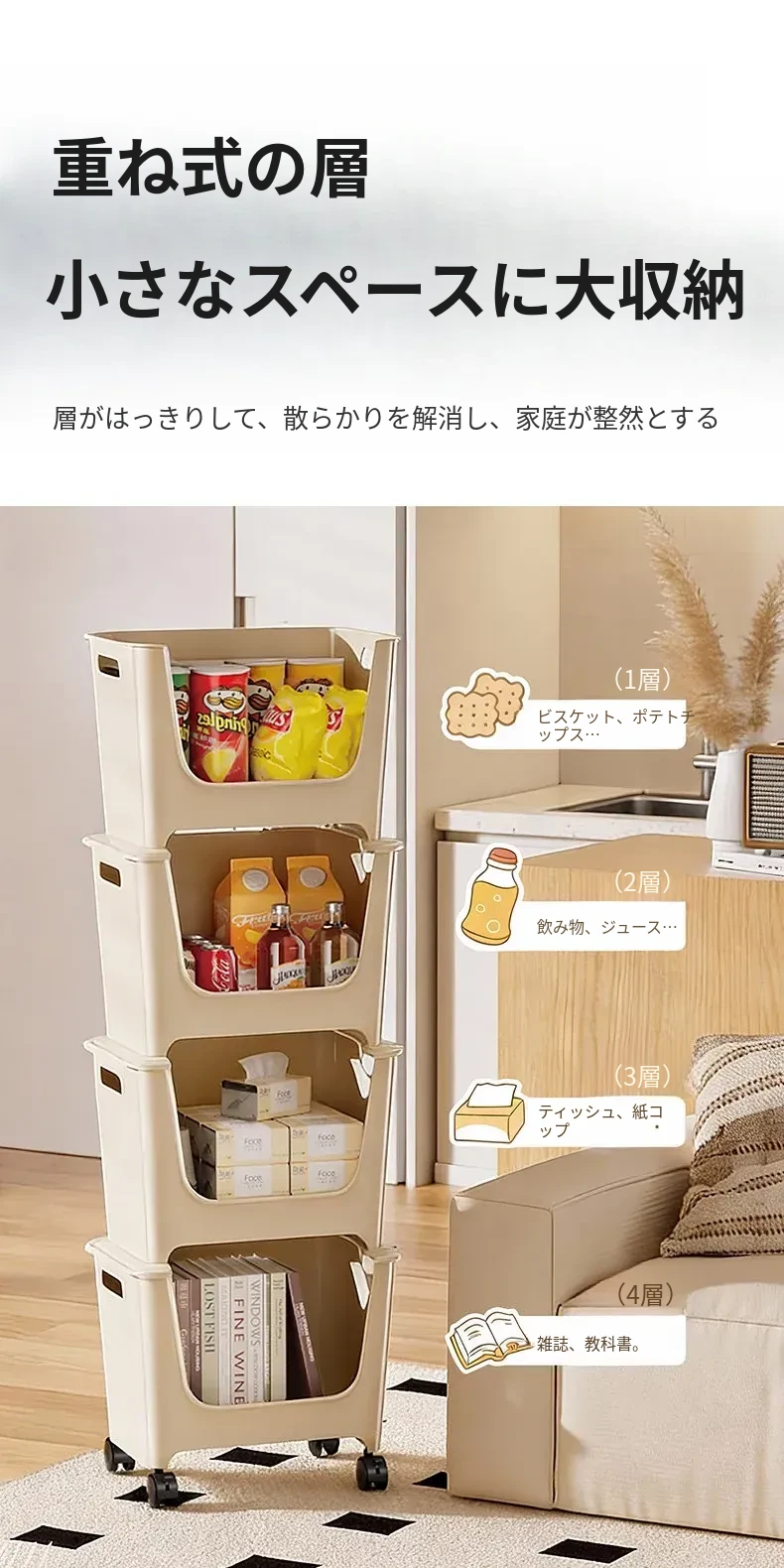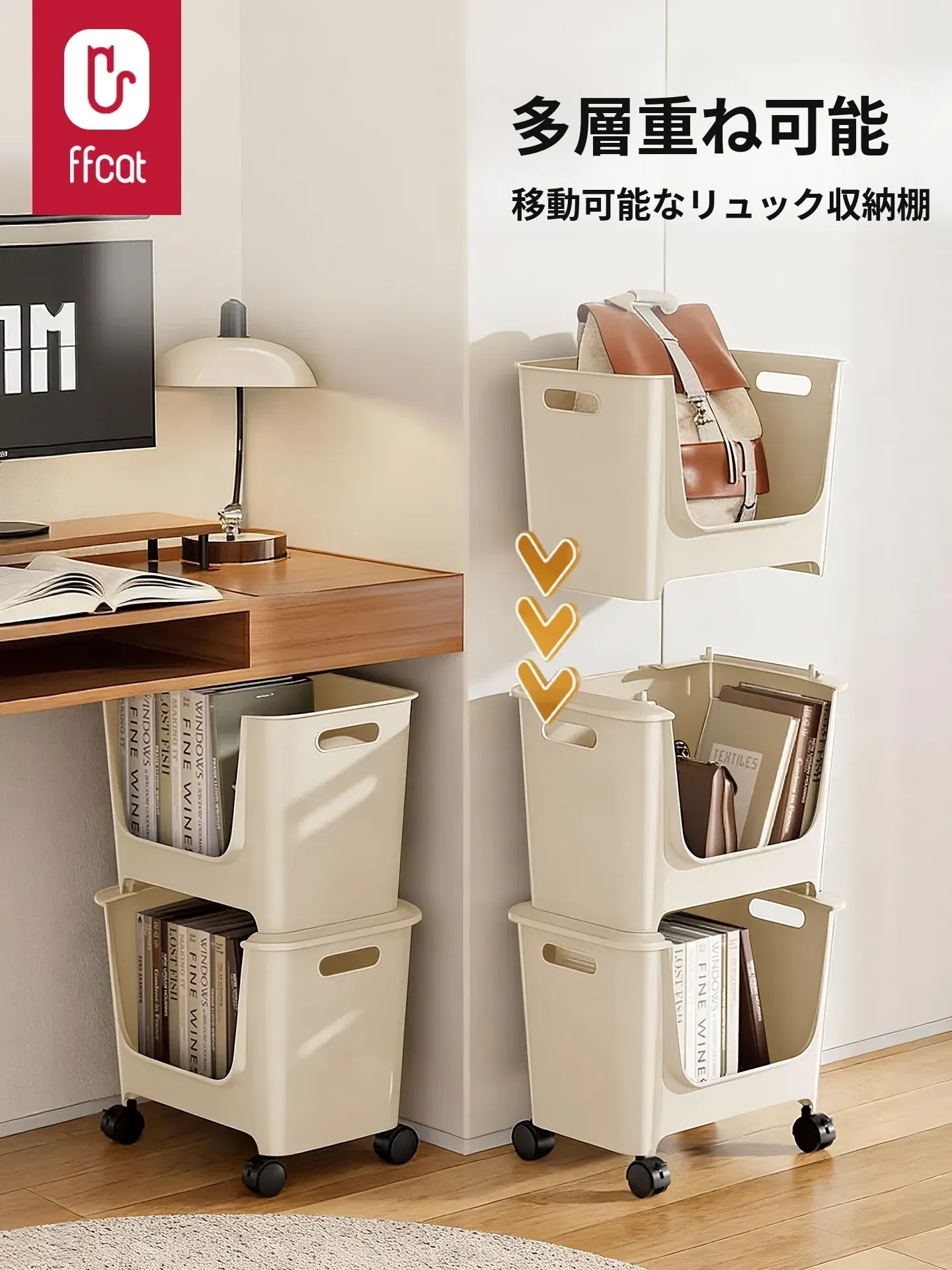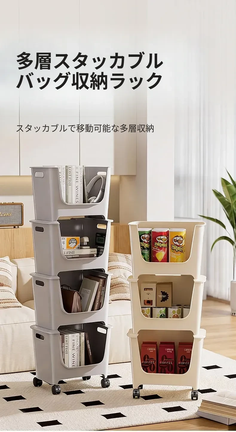 【アイボリー色四段】バックパック収納ラック⭐多層重ね可能