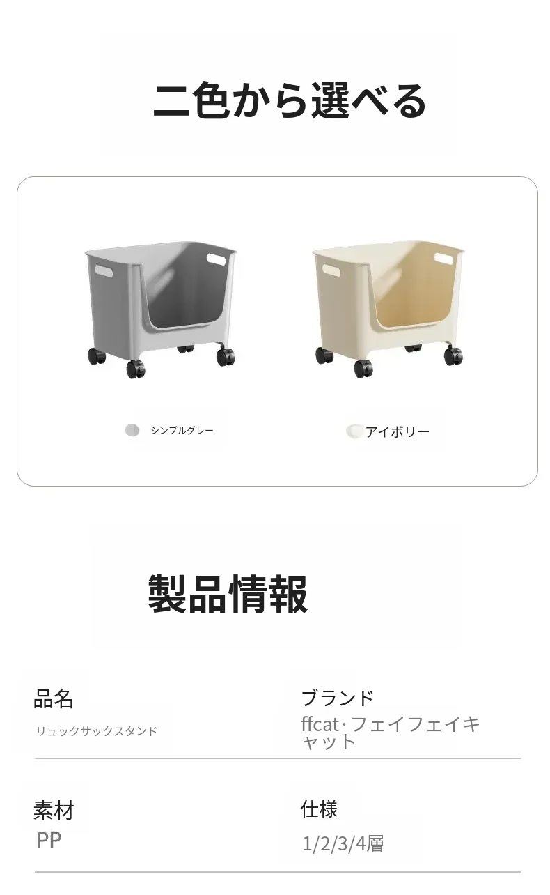 【シンプルグレー二段】バックパック収納ラック❤️キャスター付き