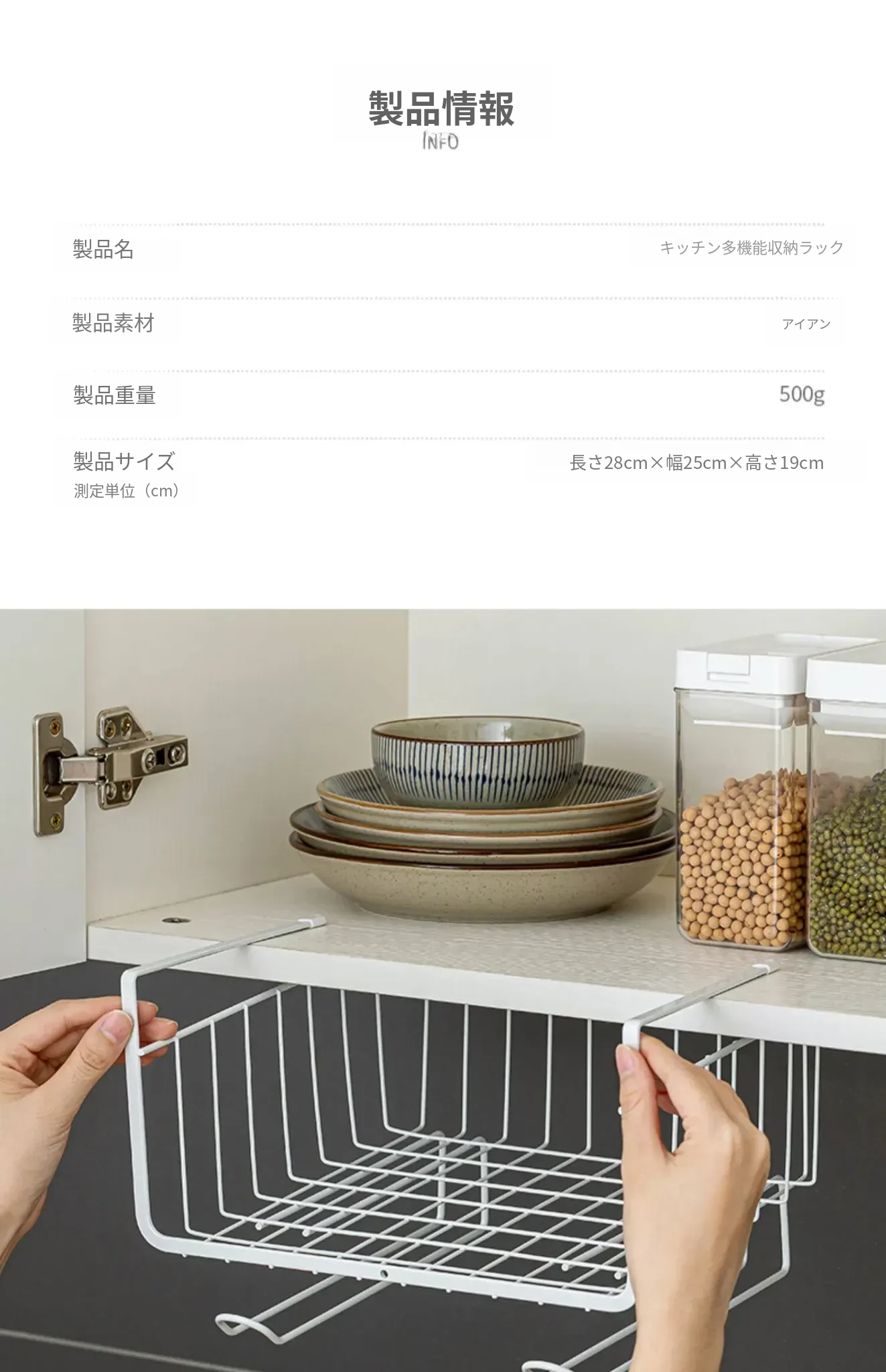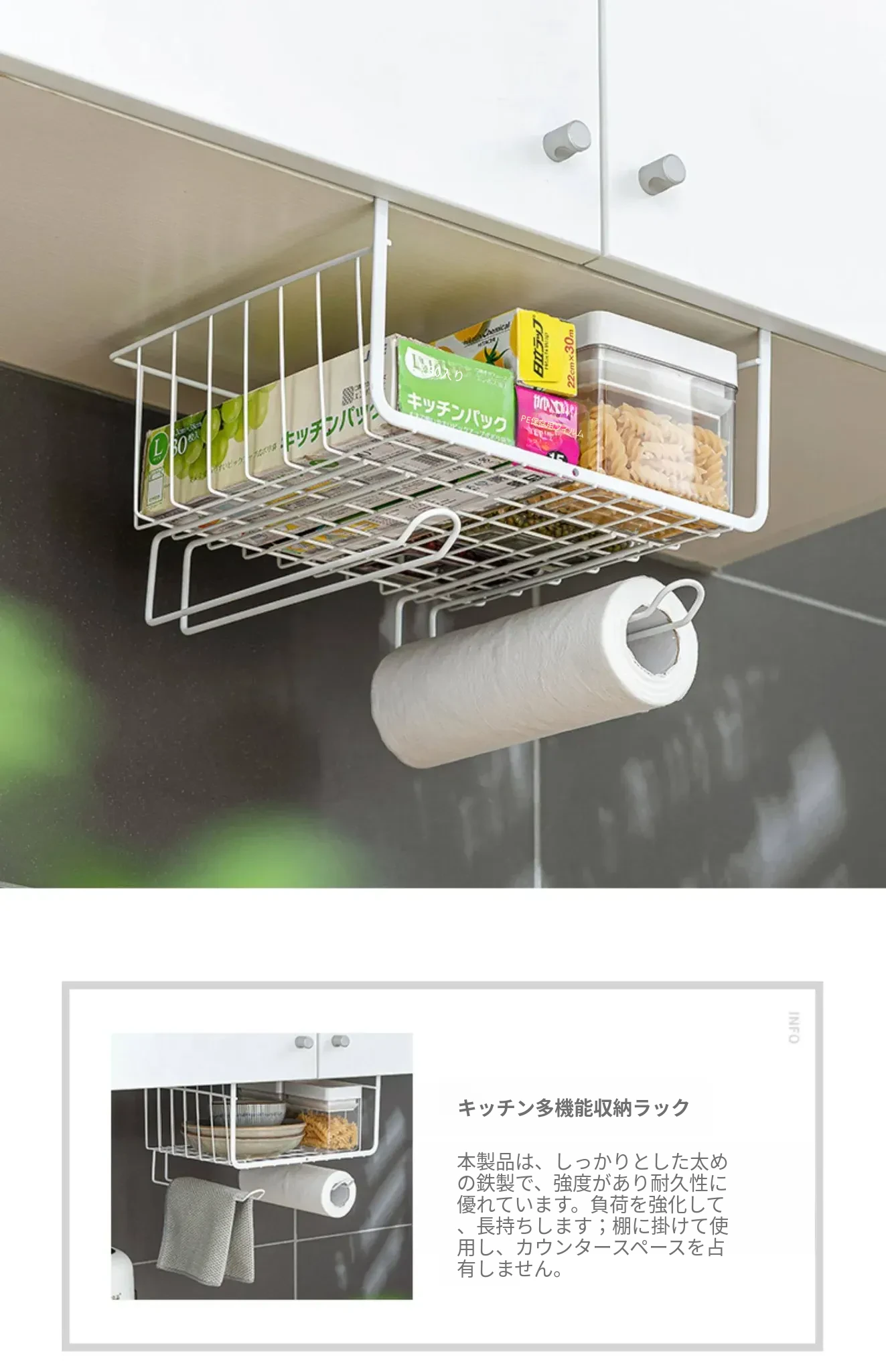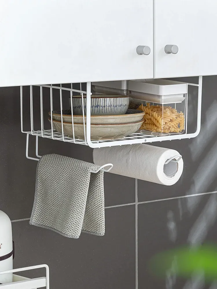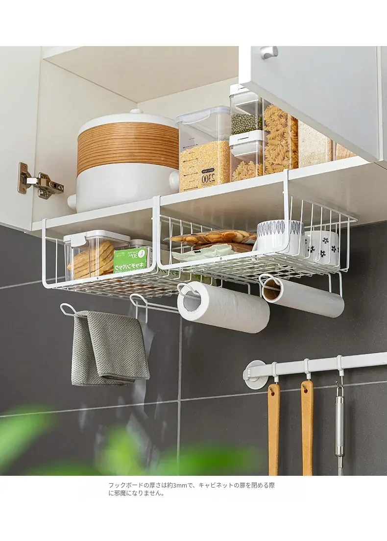 キッチン吊り棚用の多層収納ラック - スペースを有効活用し、整理整頓を実現!壁掛けタイプで便利な収納を提供する、スタイリッシュで機能的なアイテムです。