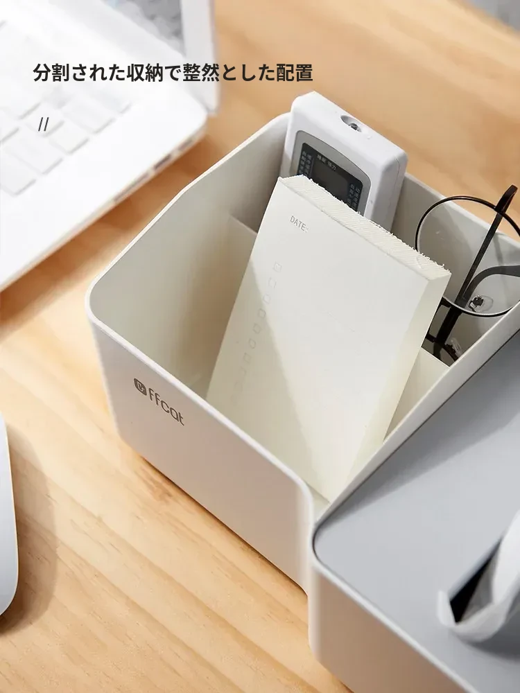 北欧風デザインの「非非猫」デスクティッシュボックス - 多機能でおしゃれなリモコン収納もできる!リビングやコーヒーテーブルにぴったりな創造的なアイテム。