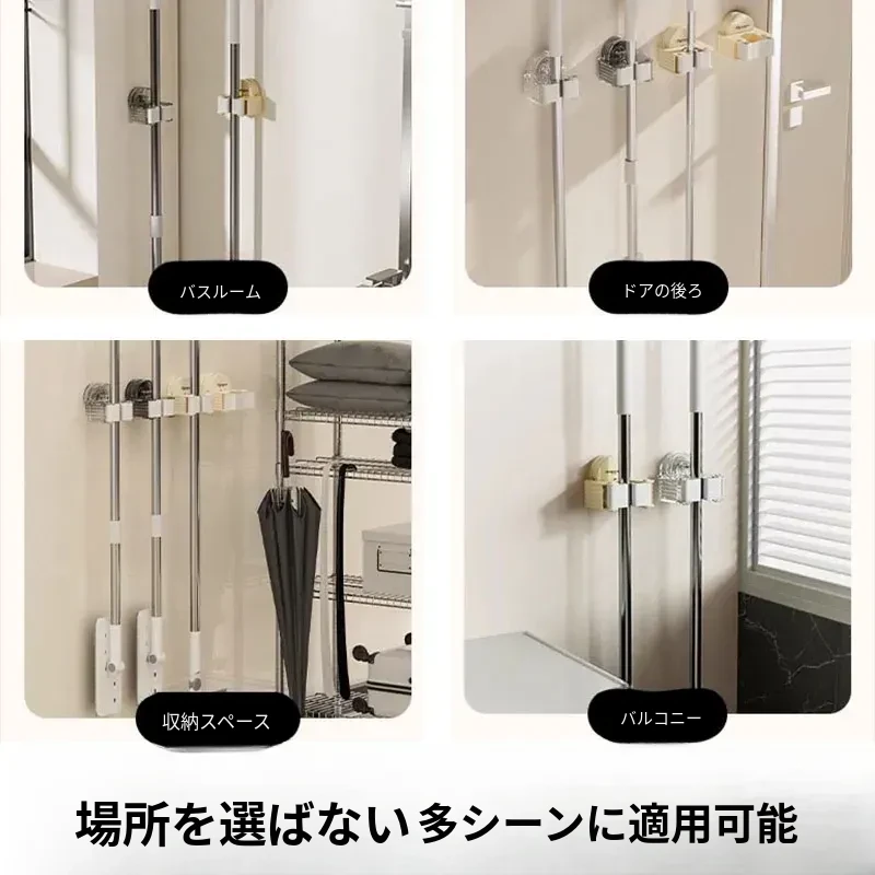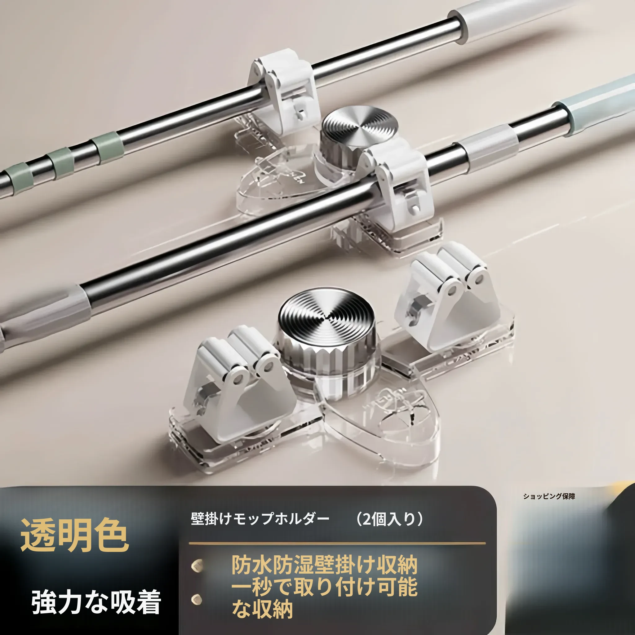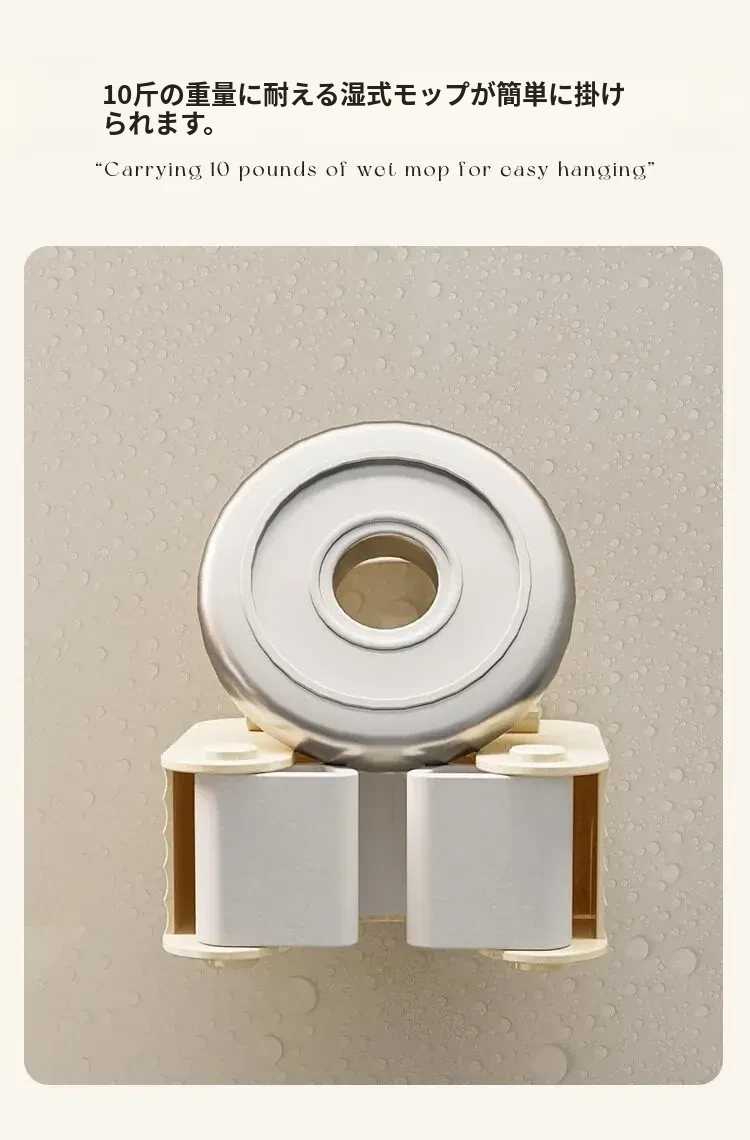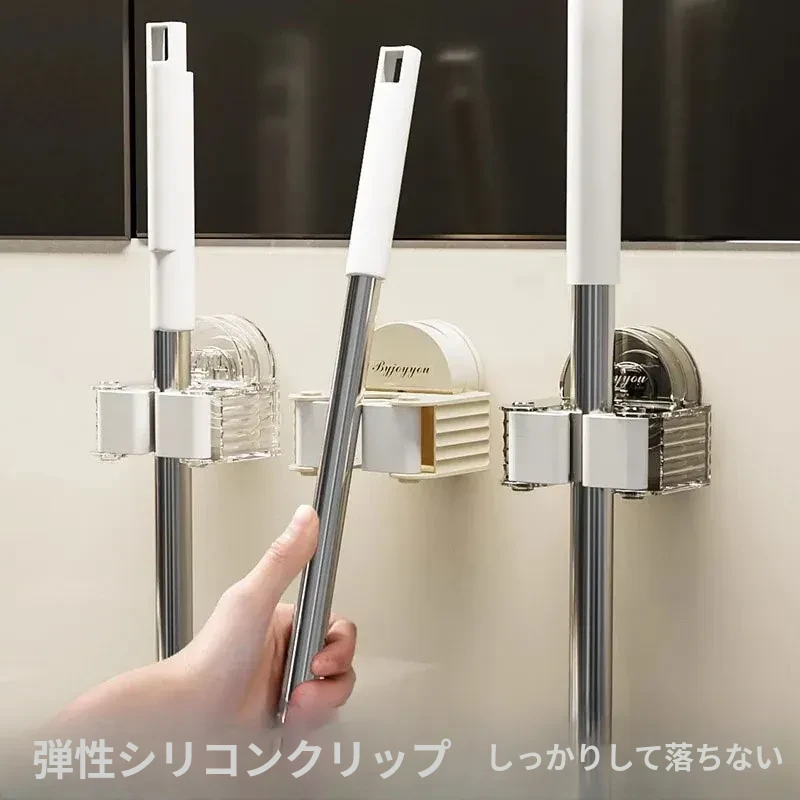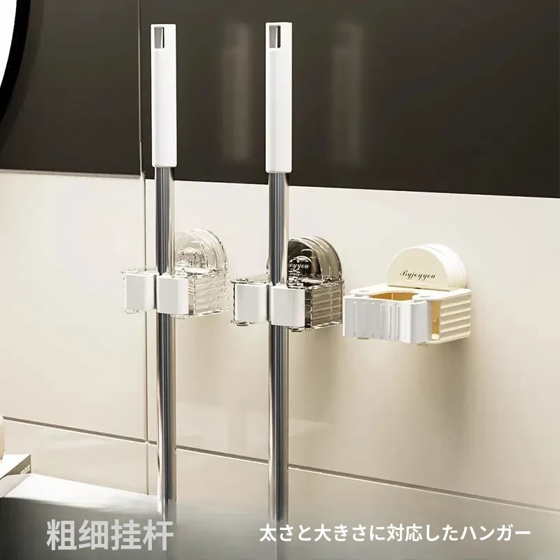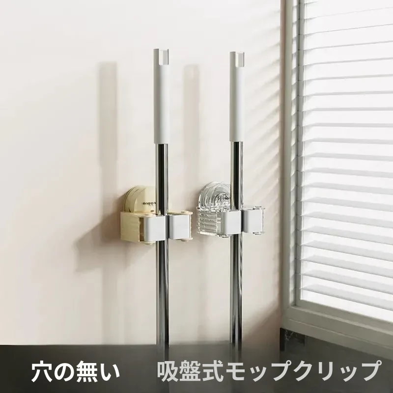 穴あけ不要!便利な吸盤式モップ掛けフック - 壁掛け収納でトイレ掃除もスッキリ!粘着式で簡単取り付け、モップや掃除道具をスマートに整理整頓!