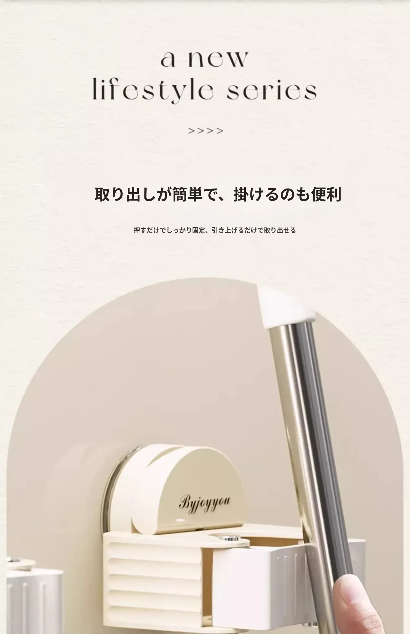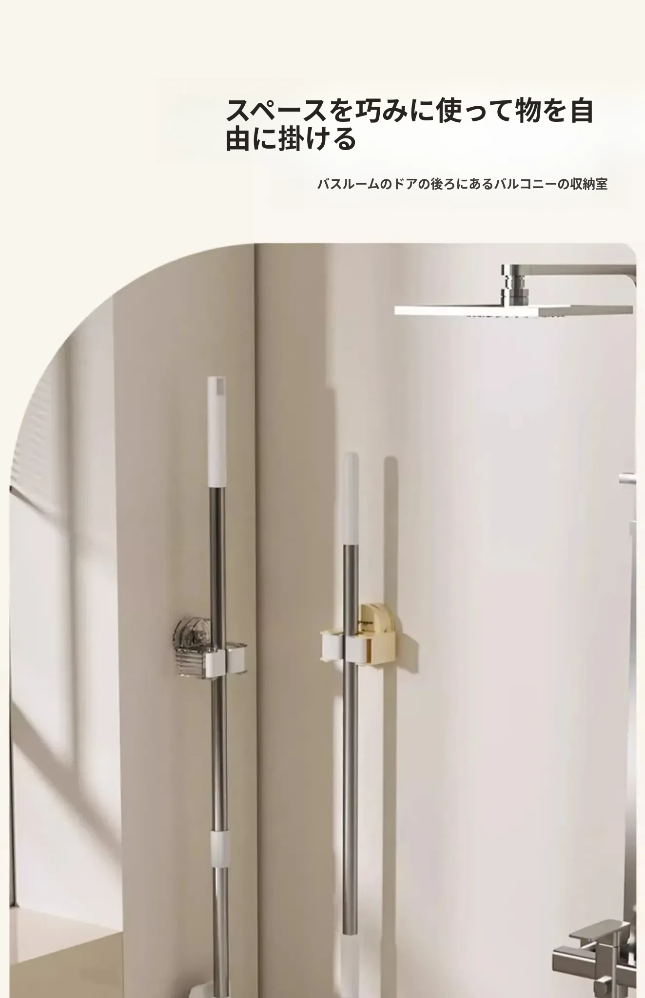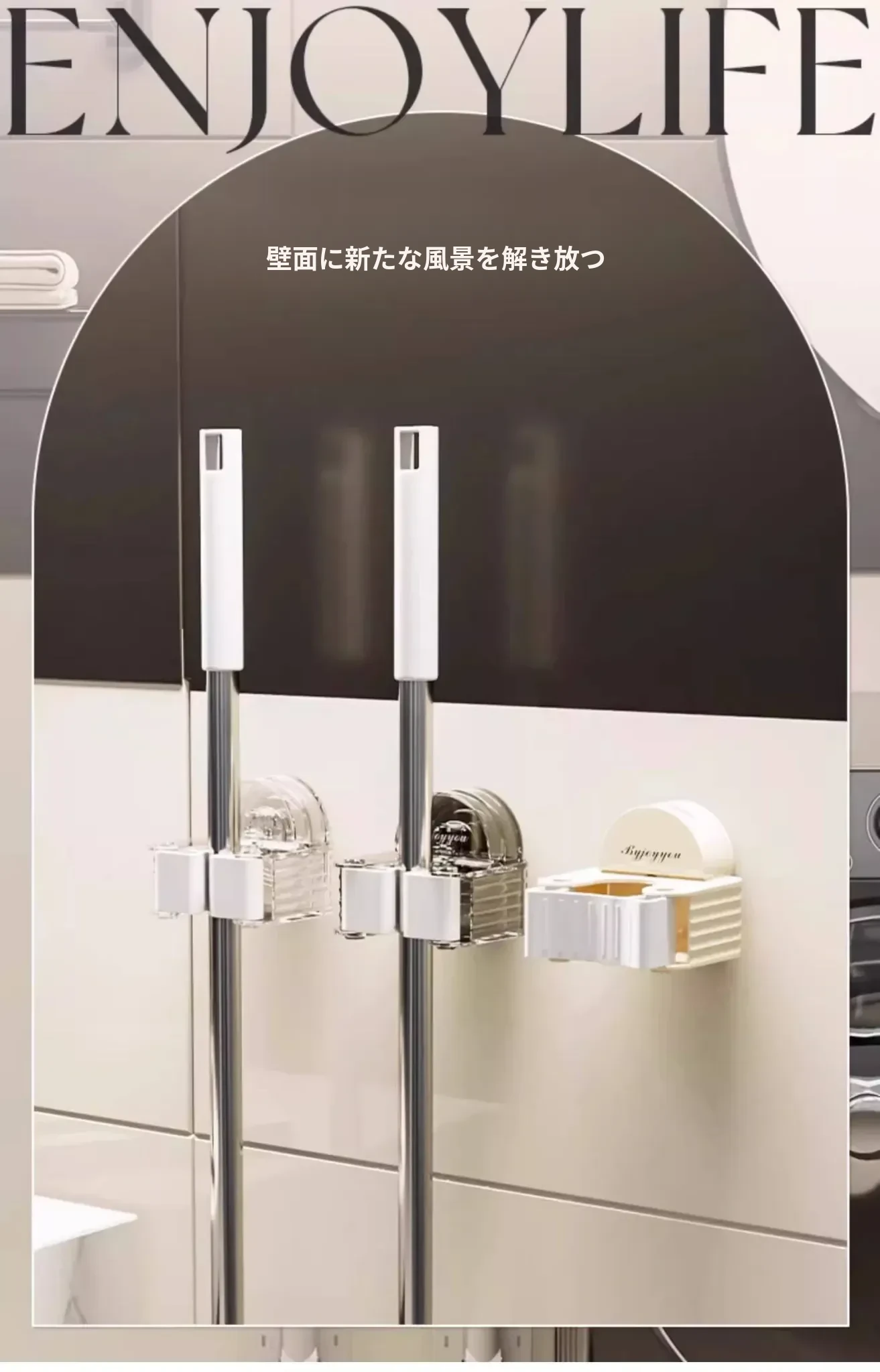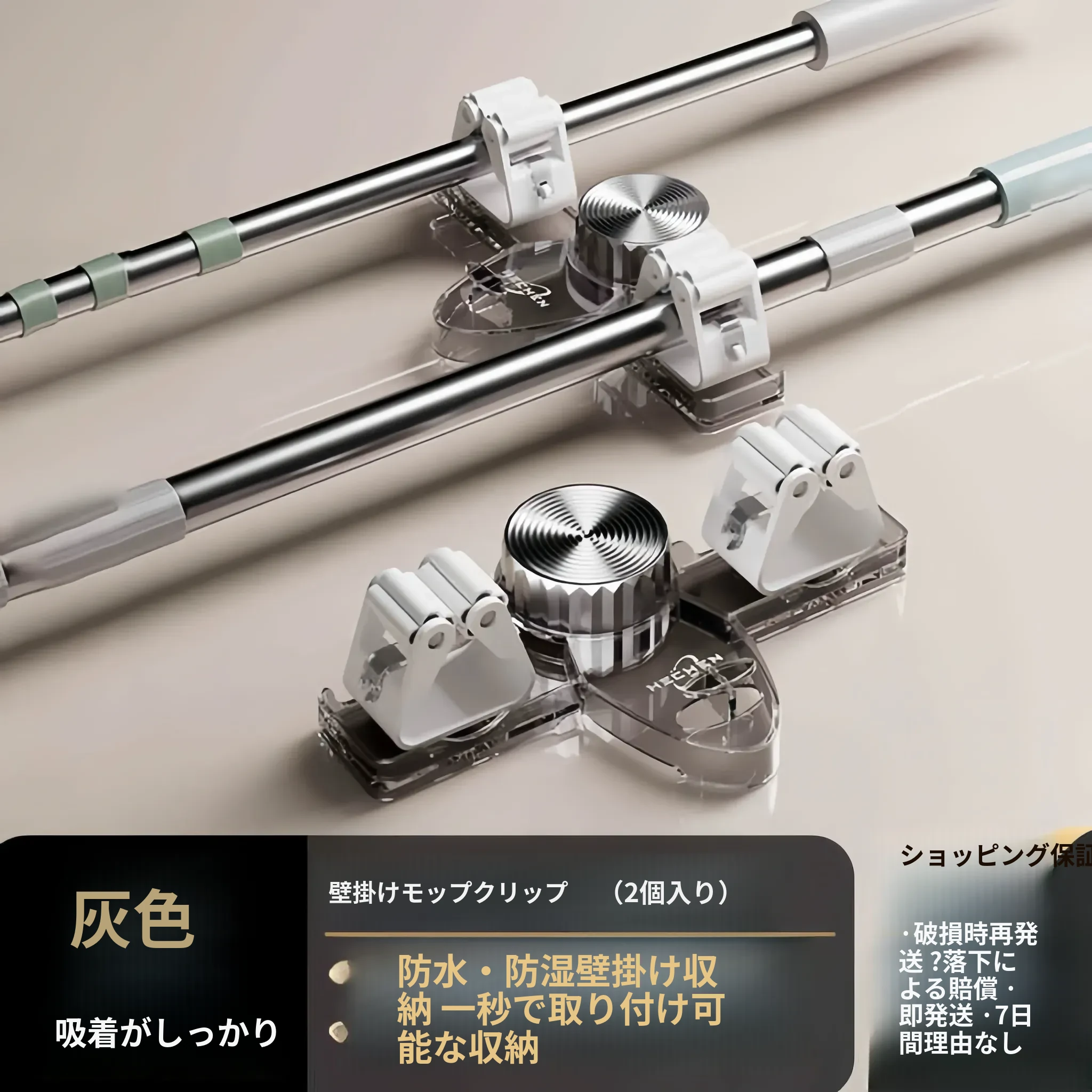 穴あけ不要!便利な吸盤式モップ掛けフック - 壁掛け収納でトイレ掃除もスッキリ!粘着式で簡単取り付け、モップや掃除道具をスマートに整理整頓!