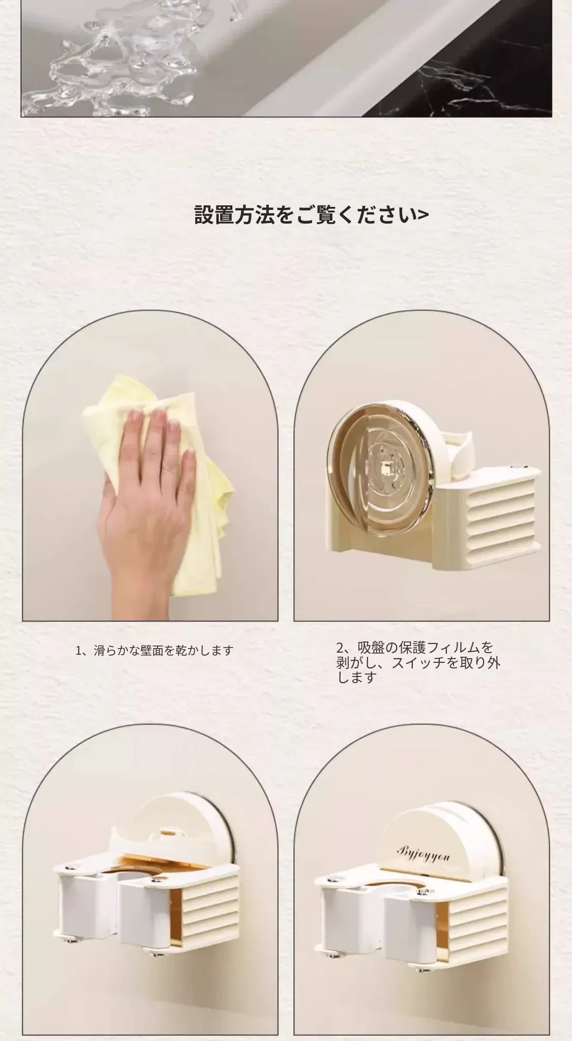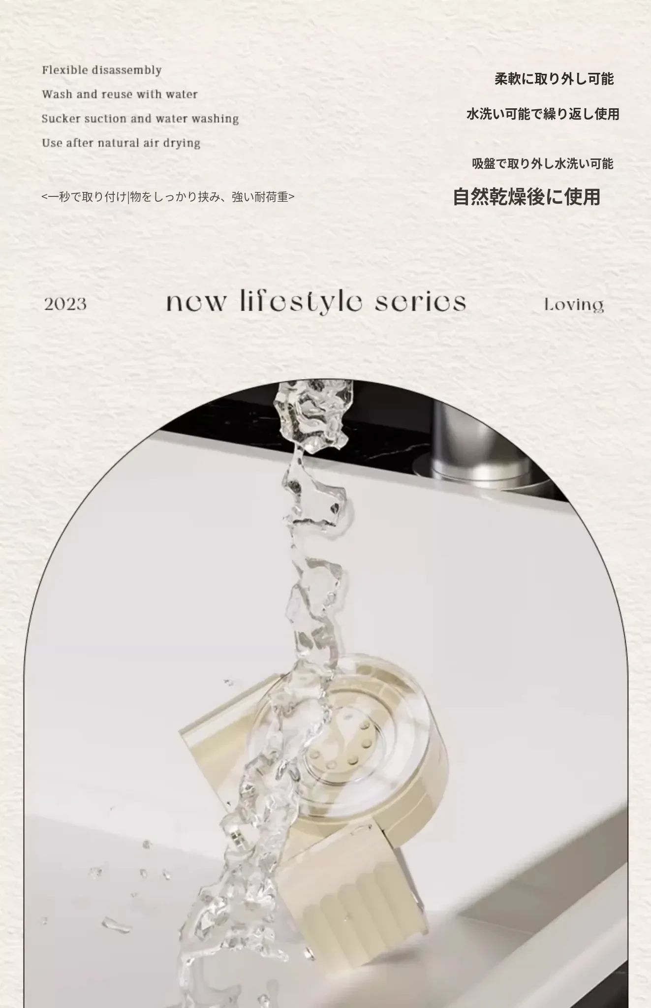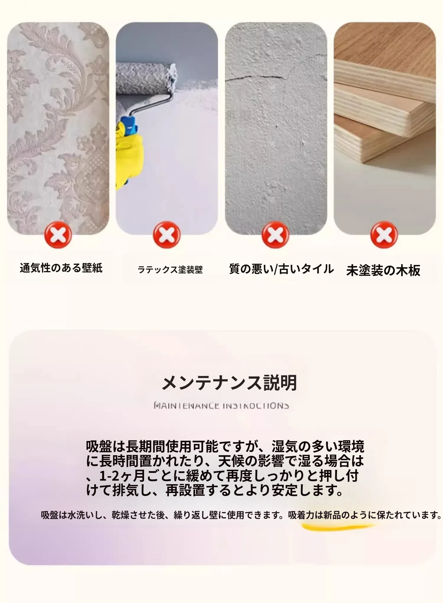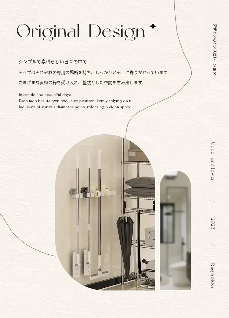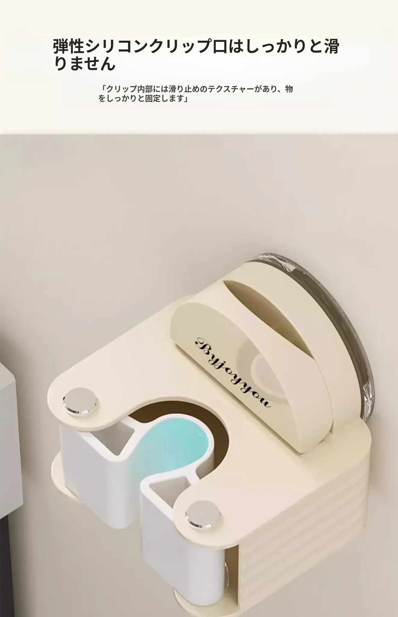穴あけ不要!便利な吸盤式モップ掛けフック - 壁掛け収納でトイレ掃除もスッキリ!粘着式で簡単取り付け、モップや掃除道具をスマートに整理整頓!