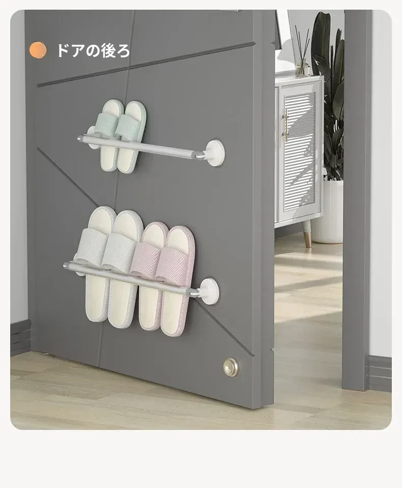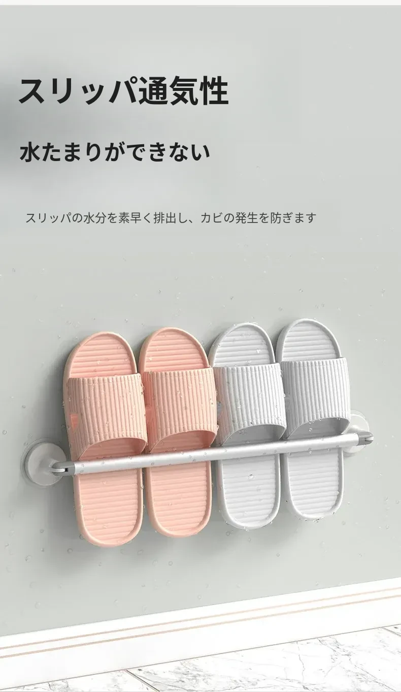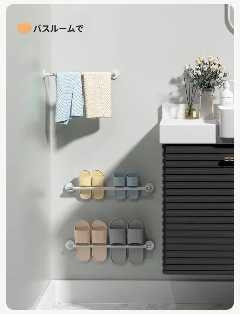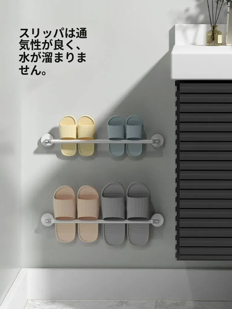 おしゃれで便利!穴あけ不要のバスルーム用スリッパハンガー - トイレや洗面所に最適な収納ラック!ドアの後ろや隙間にピッタリフィット、水切り機能付きで清潔に保てる!