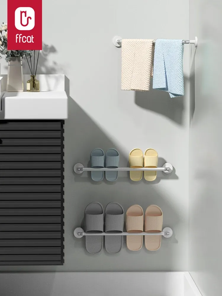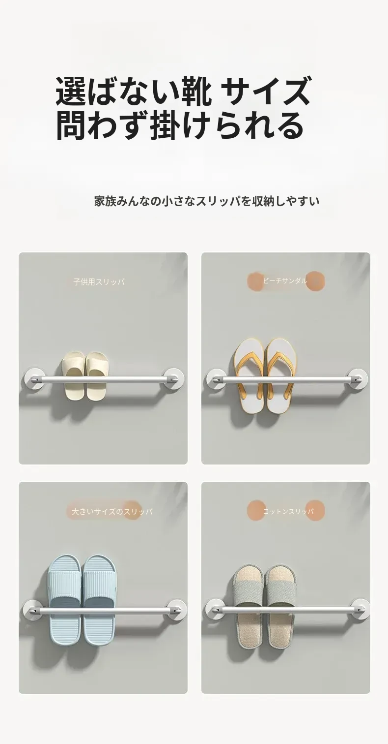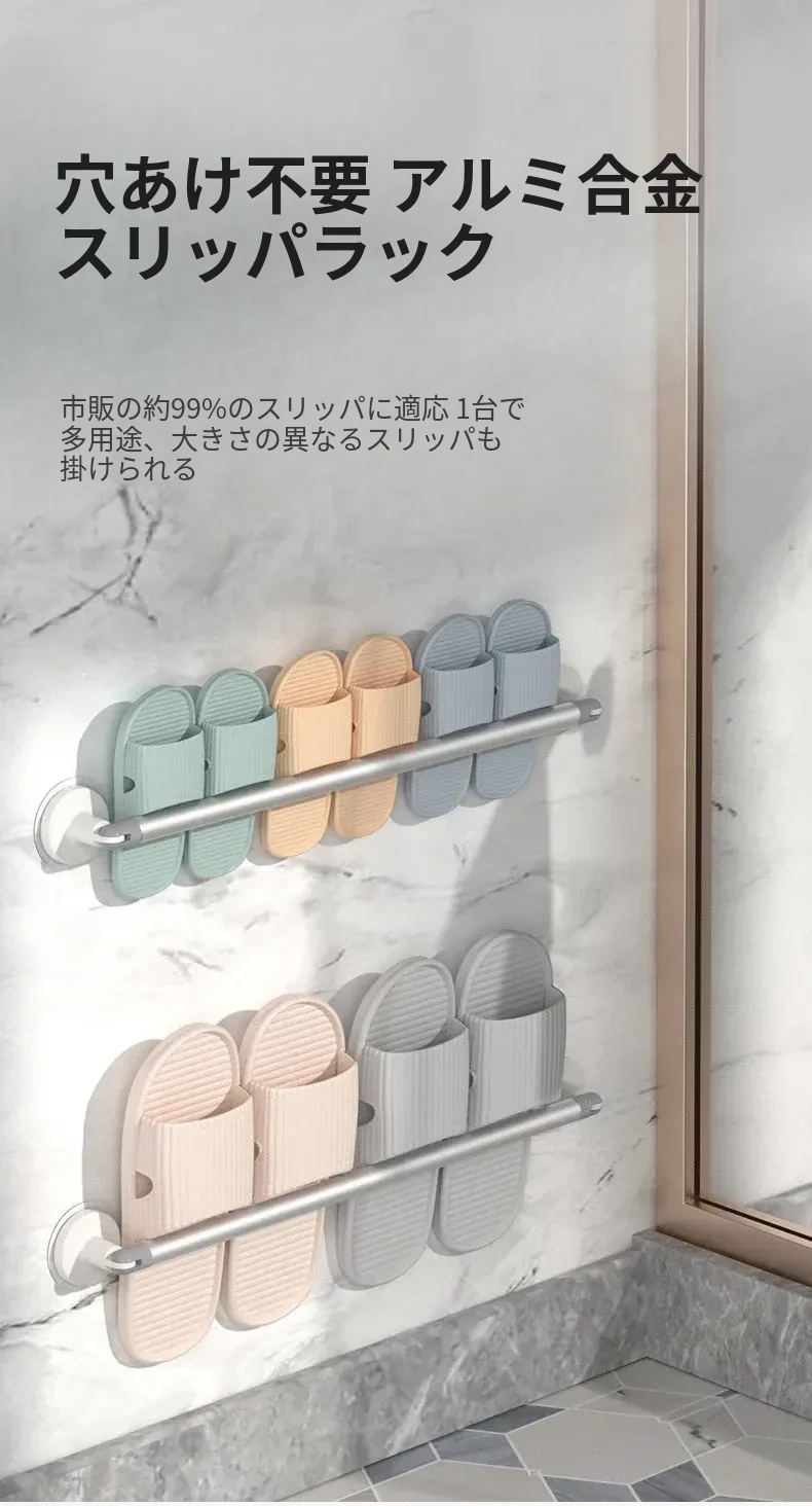おしゃれで便利!穴あけ不要のバスルーム用スリッパハンガー - トイレや洗面所に最適な収納ラック!ドアの後ろや隙間にピッタリフィット、水切り機能付きで清潔に保てる!