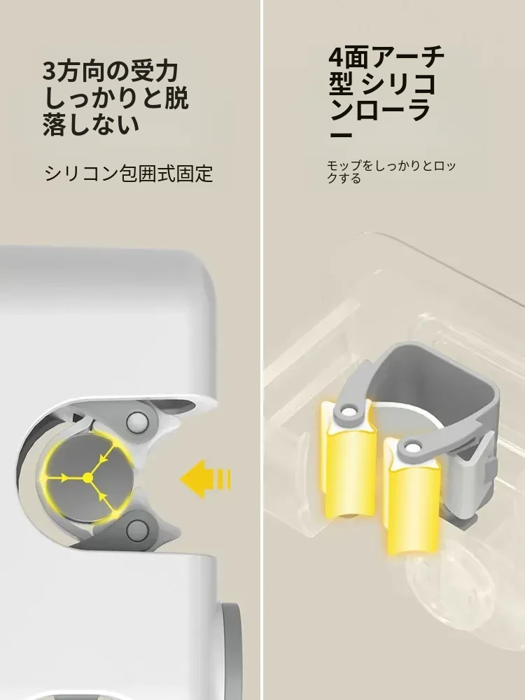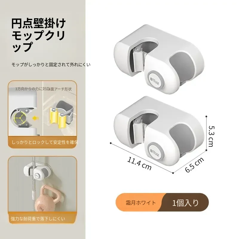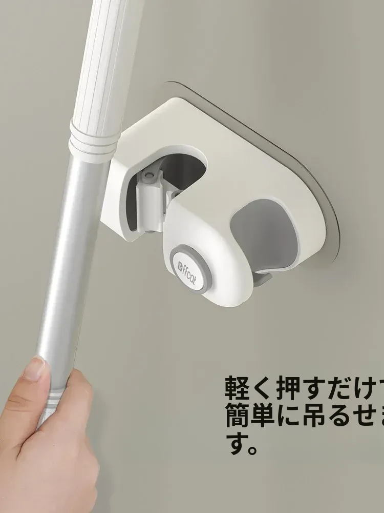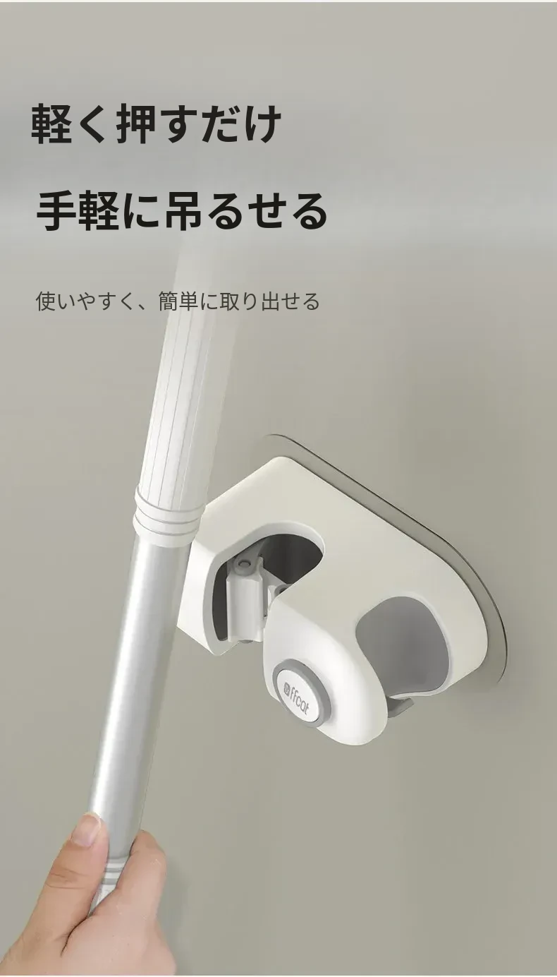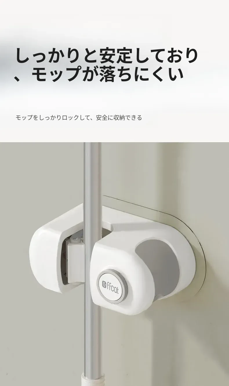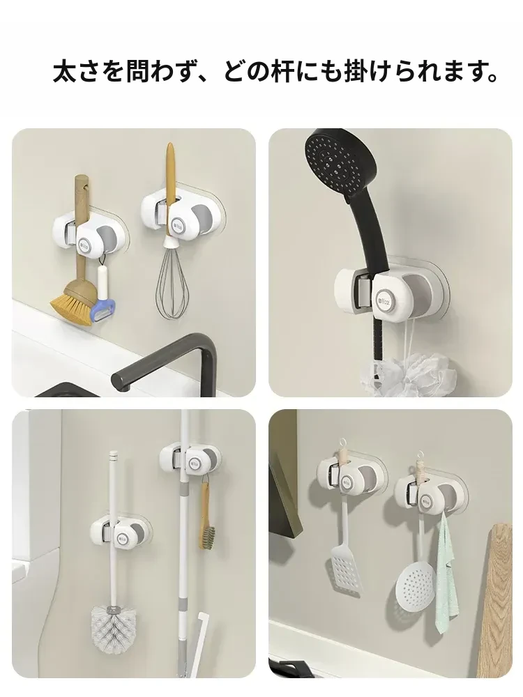 トイレ用壁掛けモップホルダー - 穴あけ不要で強力な耐荷重、無痕の粘着フックで簡単取り付け!浴室をスッキリ整理整頓!