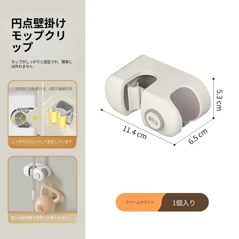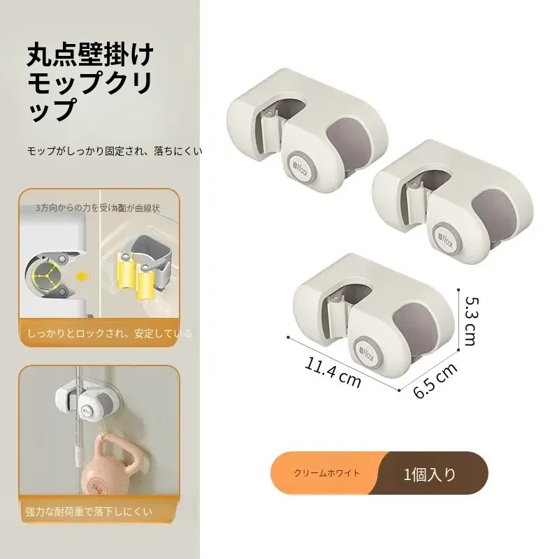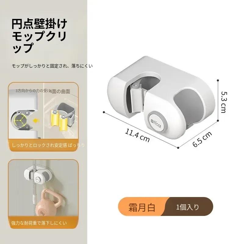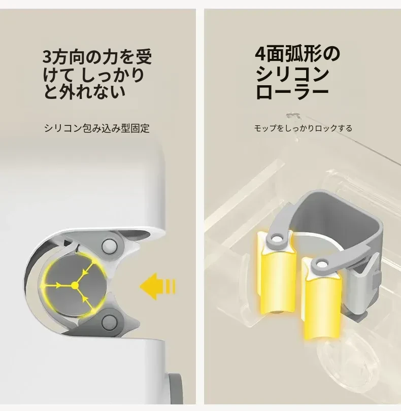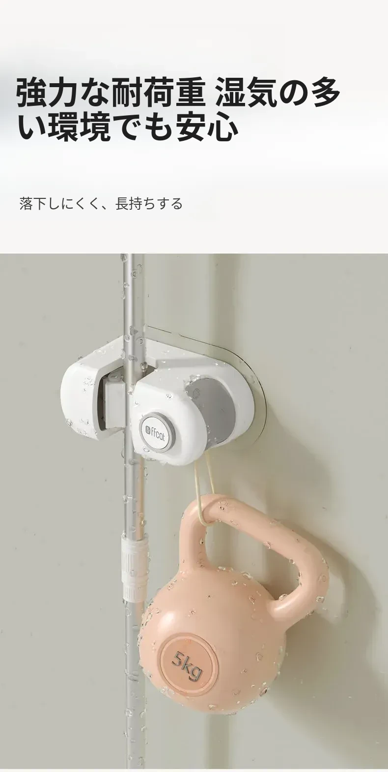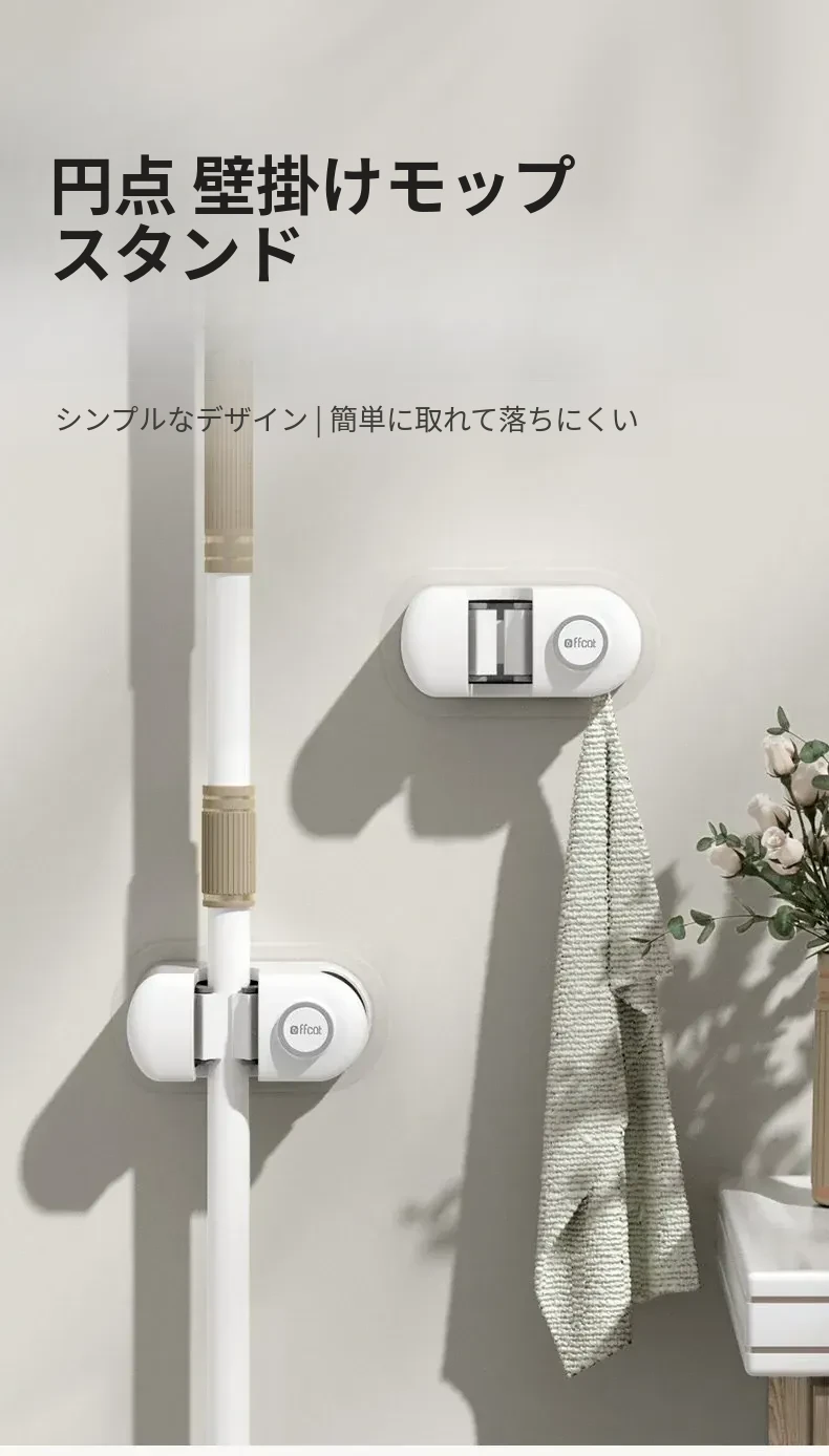 トイレ用壁掛けモップホルダー - 穴あけ不要で強力な耐荷重、無痕の粘着フックで簡単取り付け!浴室をスッキリ整理整頓!