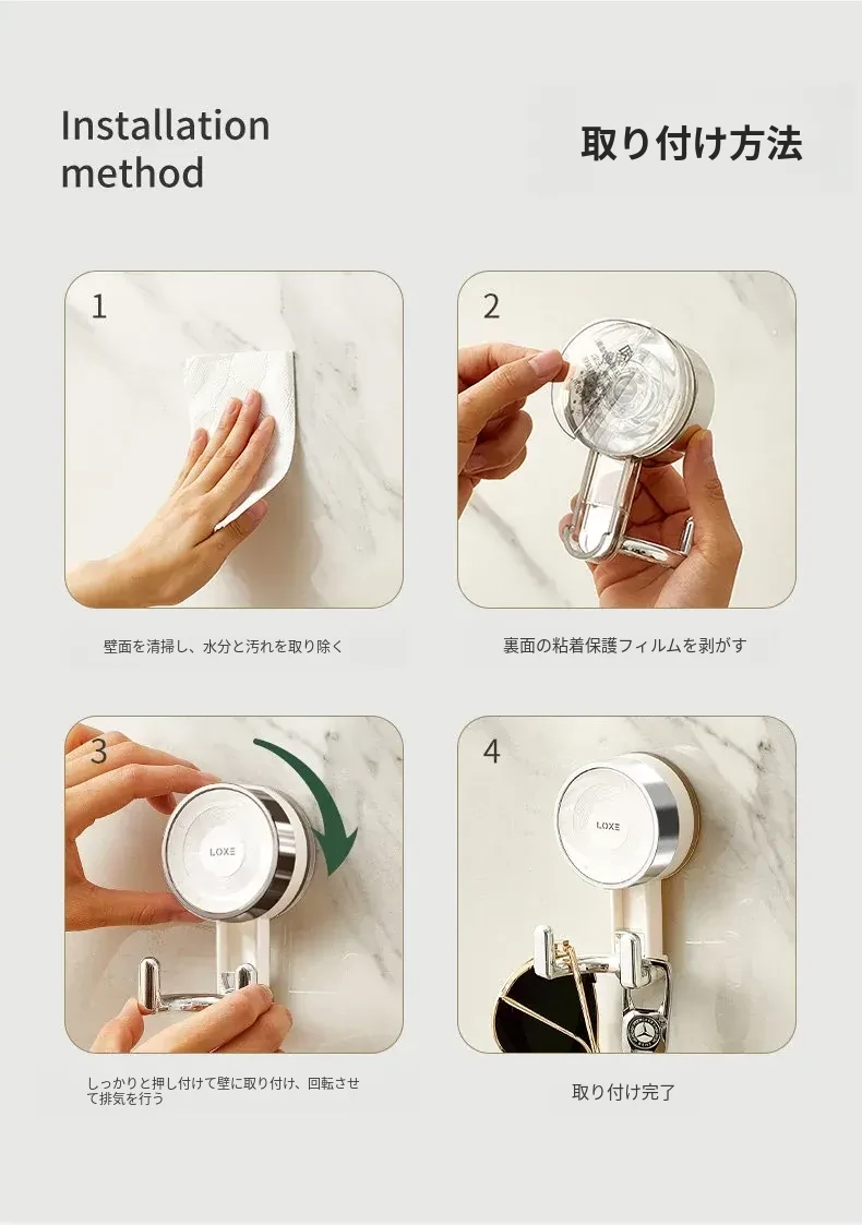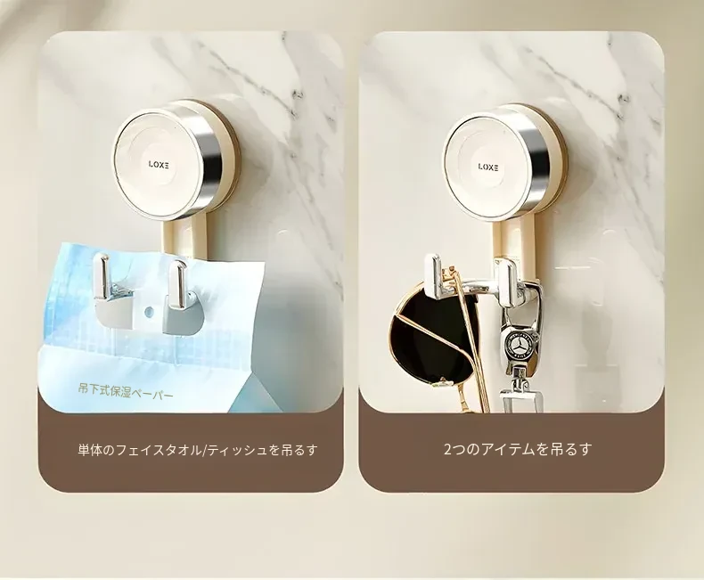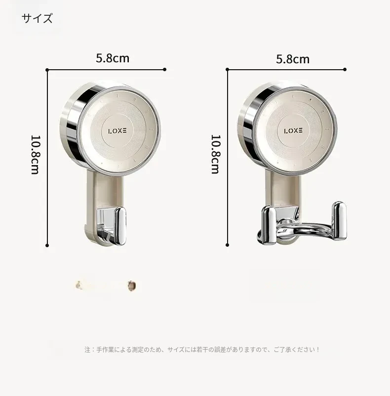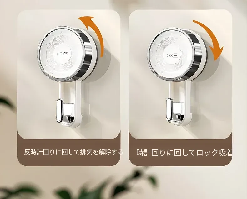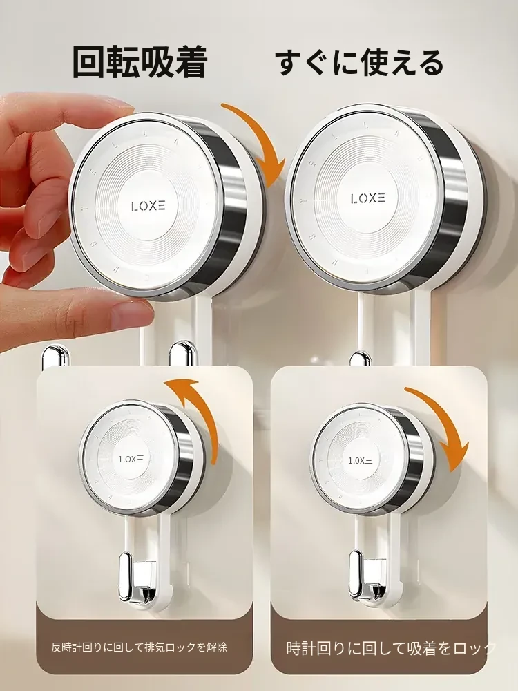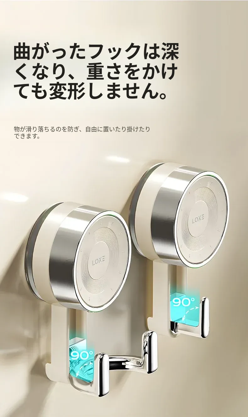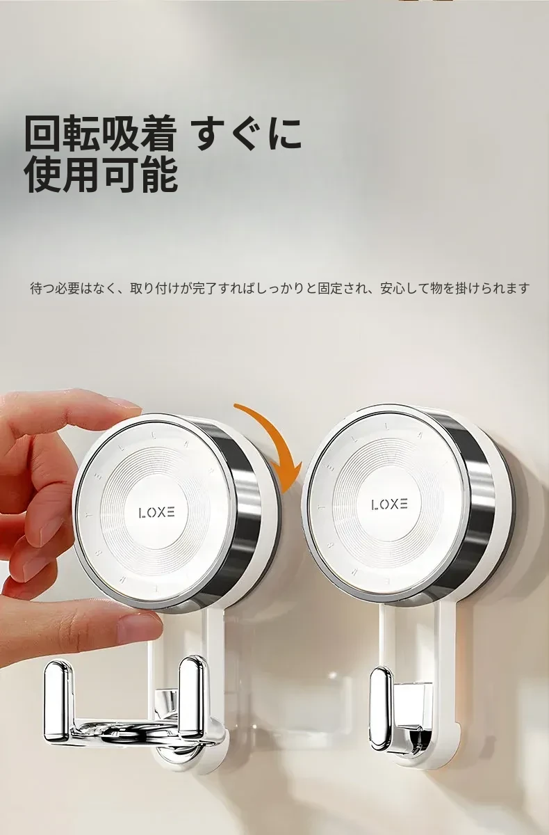 ノーハードルで簡単取り付け!真空吸盤フック - 高い耐荷重で、ドア裏やキッチン、バスルーム、トイレの壁面にピッタリ!跡が残らない粘着式で、すっきりとした空間を実現。