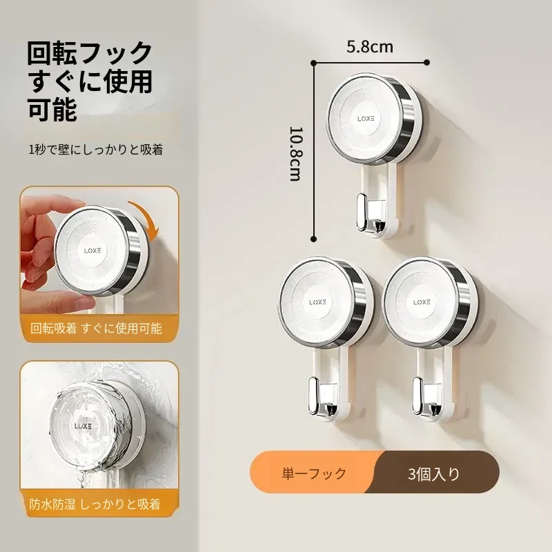 【シングルフック-3個セット】真空吸盤/取り外し可能/再利用可能/強い耐荷重