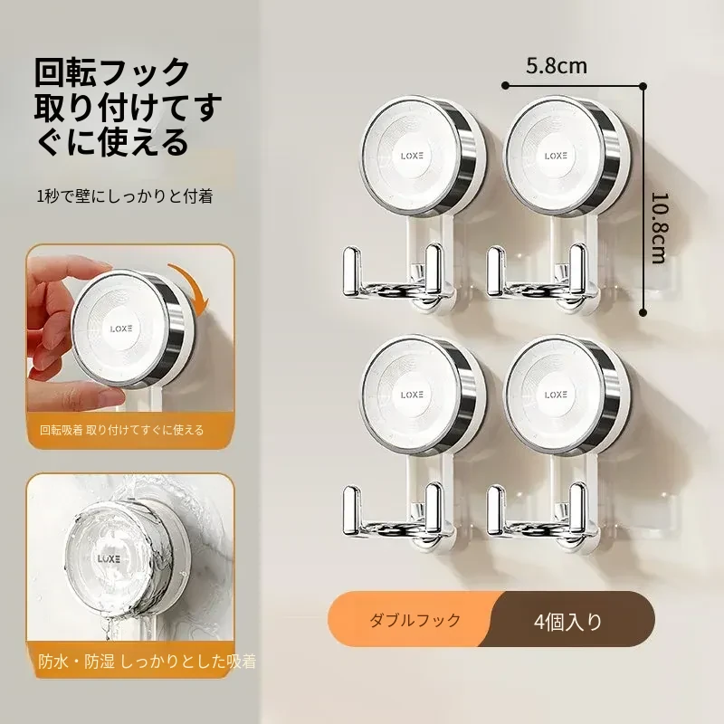 【ダブルフック-4個セット】真空吸盤/取り外し可能/再利用可能/強い耐荷重