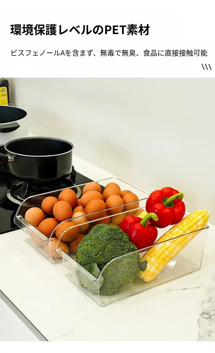 冷凍専用!食品グレードのキッチン収納ボックス - 野菜や卵をスッキリ整理!冷蔵庫の必需品、使いやすい引き出し式収納で、食材の鮮度をキープする魔法のアイテム!