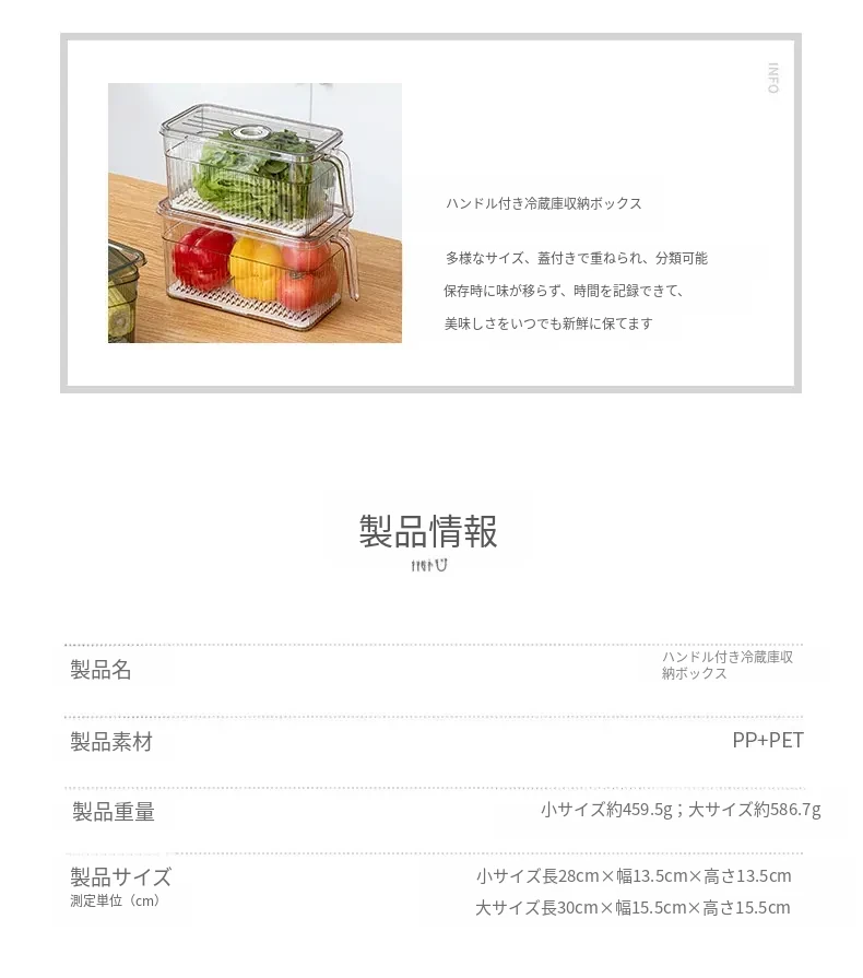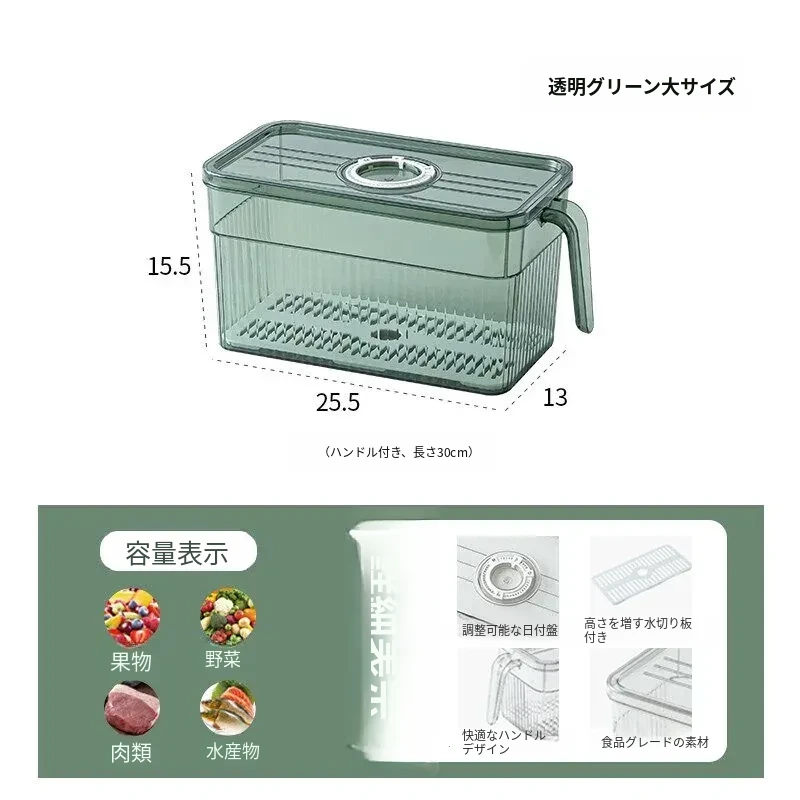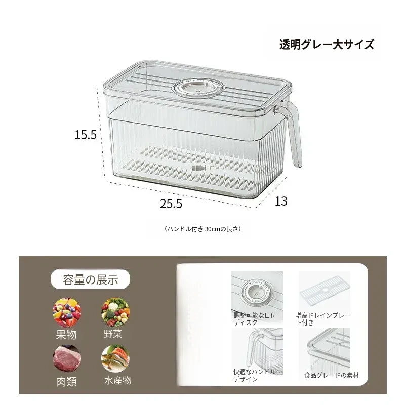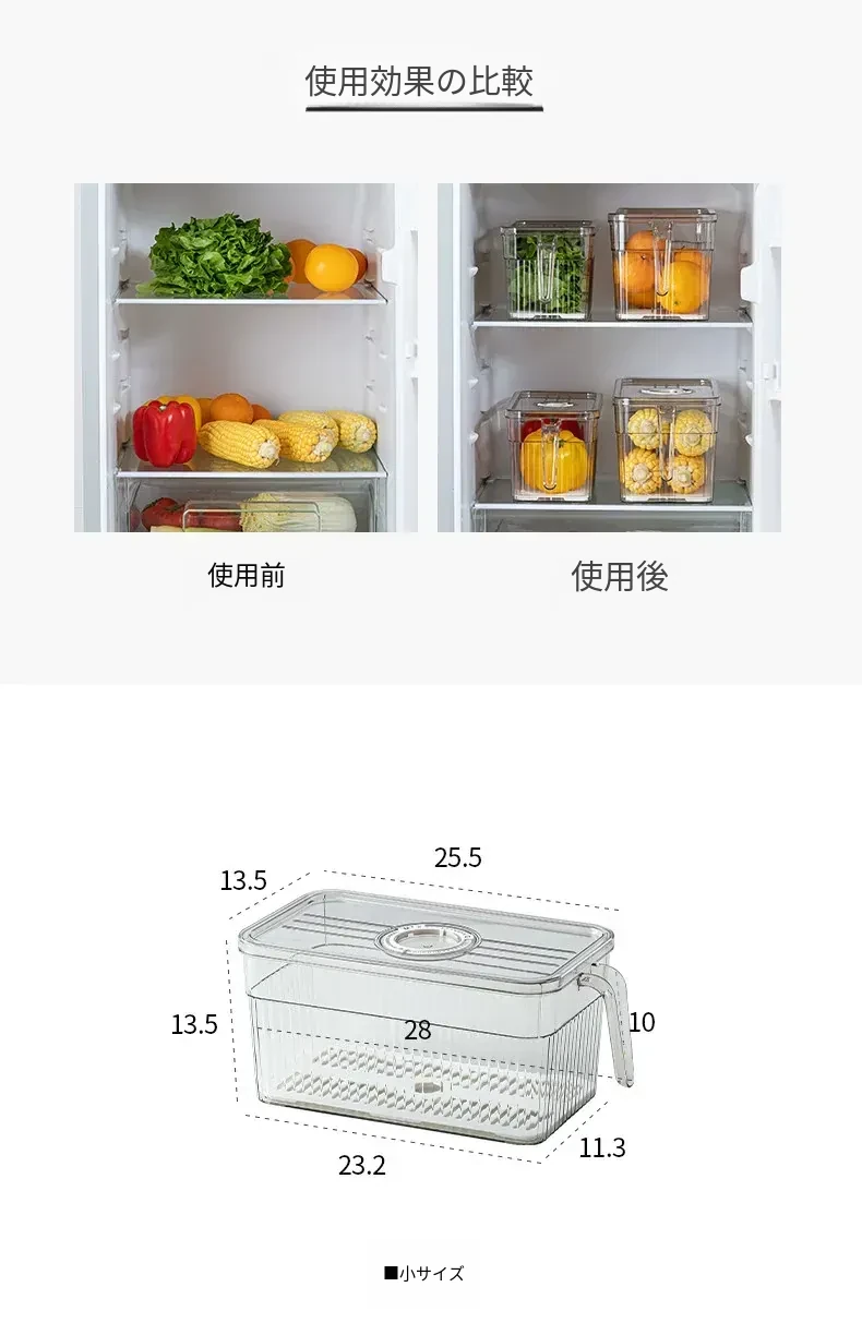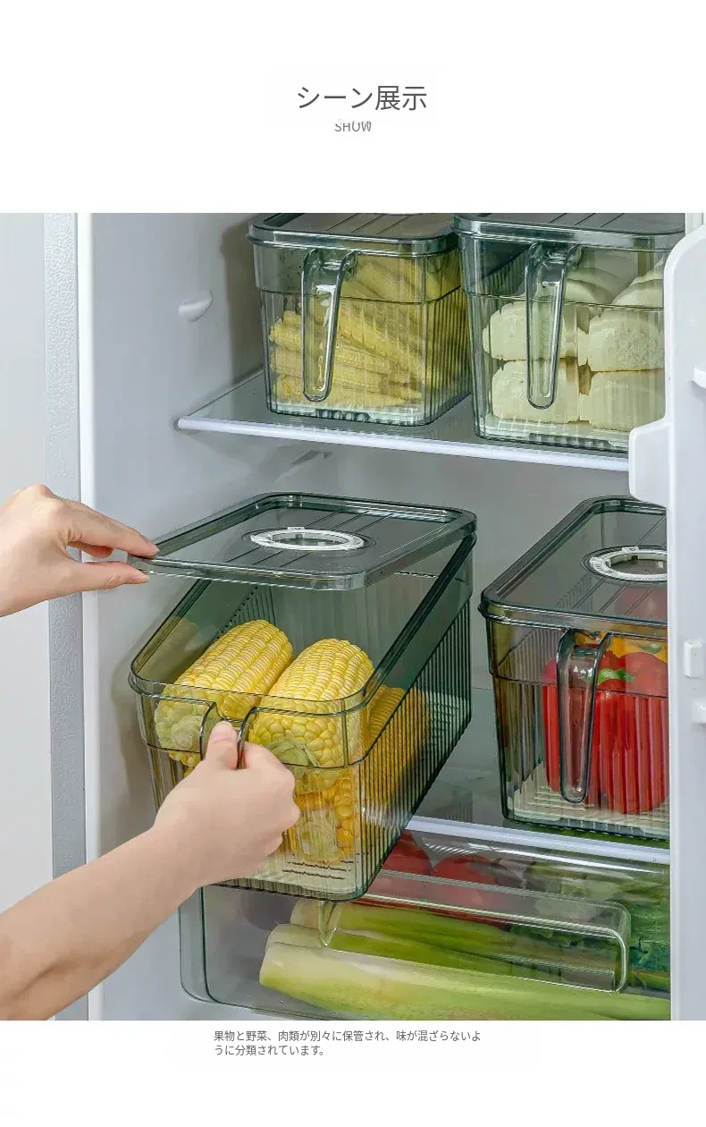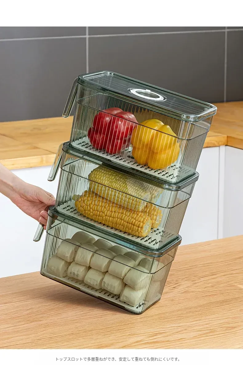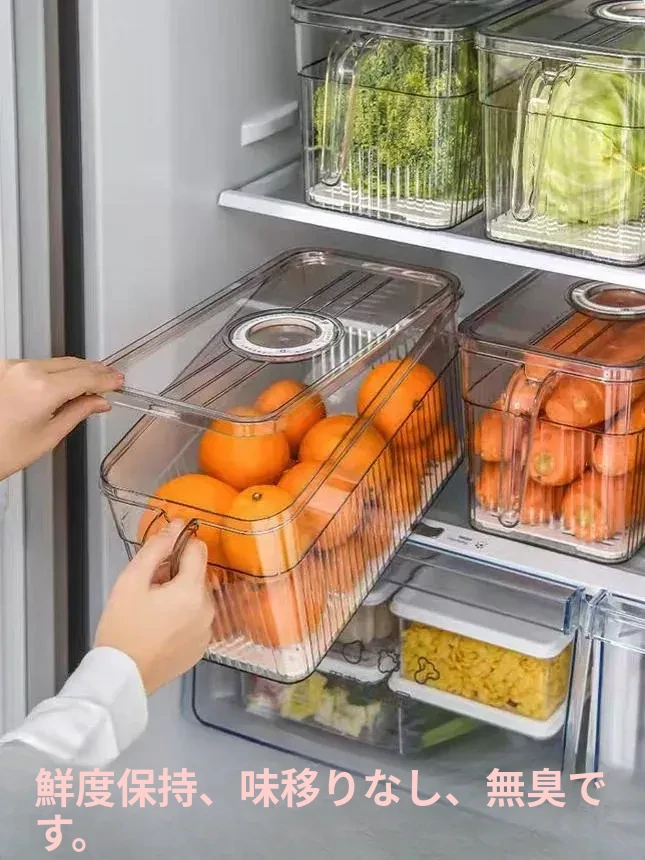 冷蔵庫整理ボックス|食品グレードの野菜・果物収納|冷凍・冷蔵専用|美しいキッチンを実現する、便利でスタイリッシュな収納アイテム!