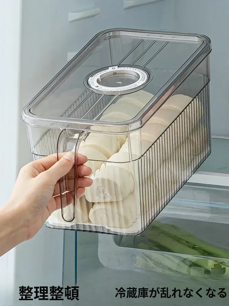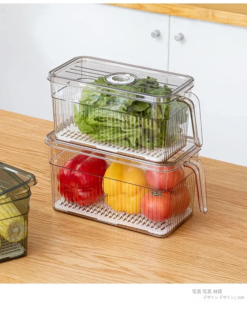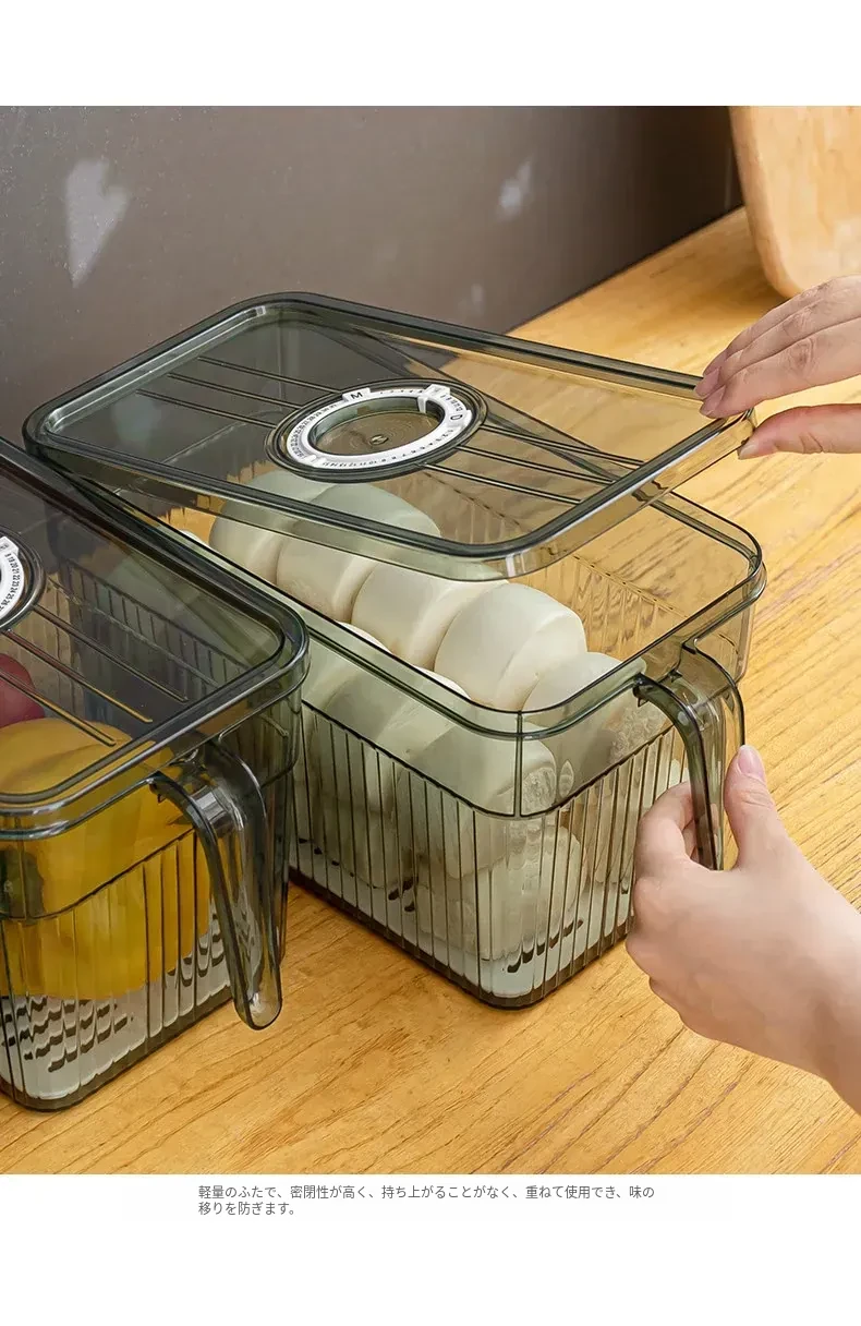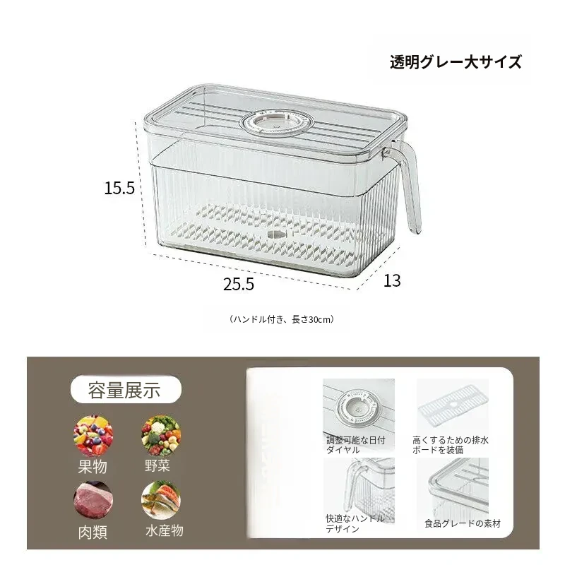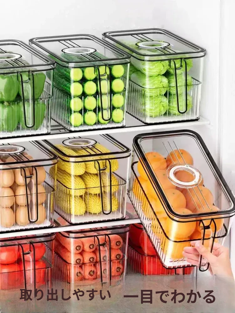 冷蔵庫整理ボックス - 食品グレードの野菜・果物用保存容器!冷凍・冷蔵に最適なデュアルドア収納。すっきり整理して、食材を新鮮に保つ!