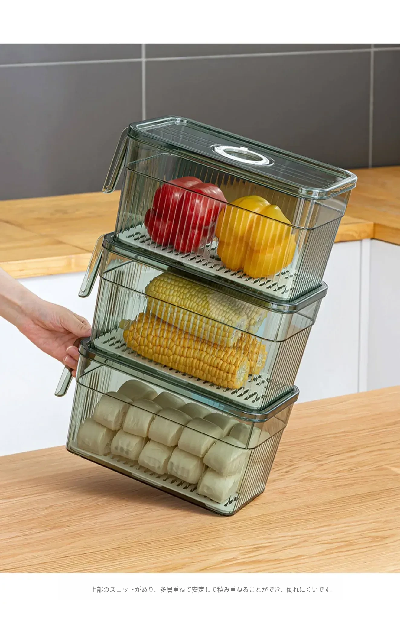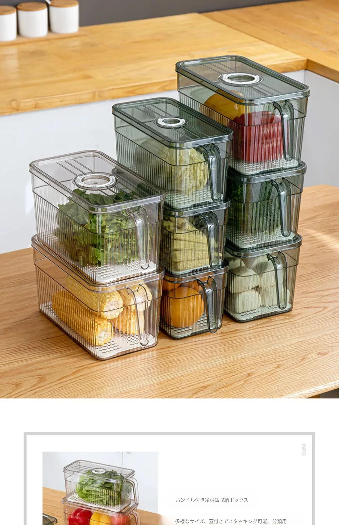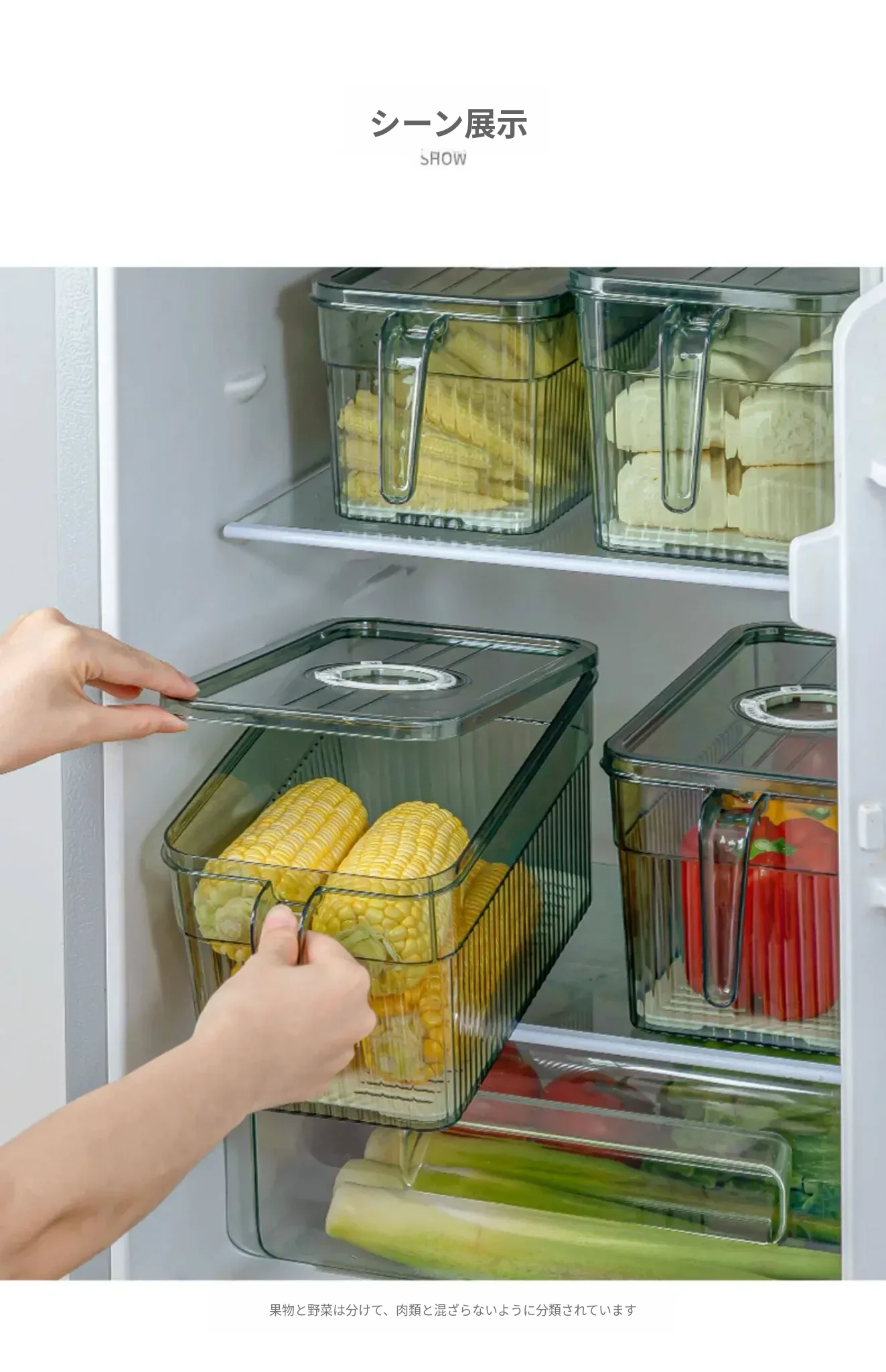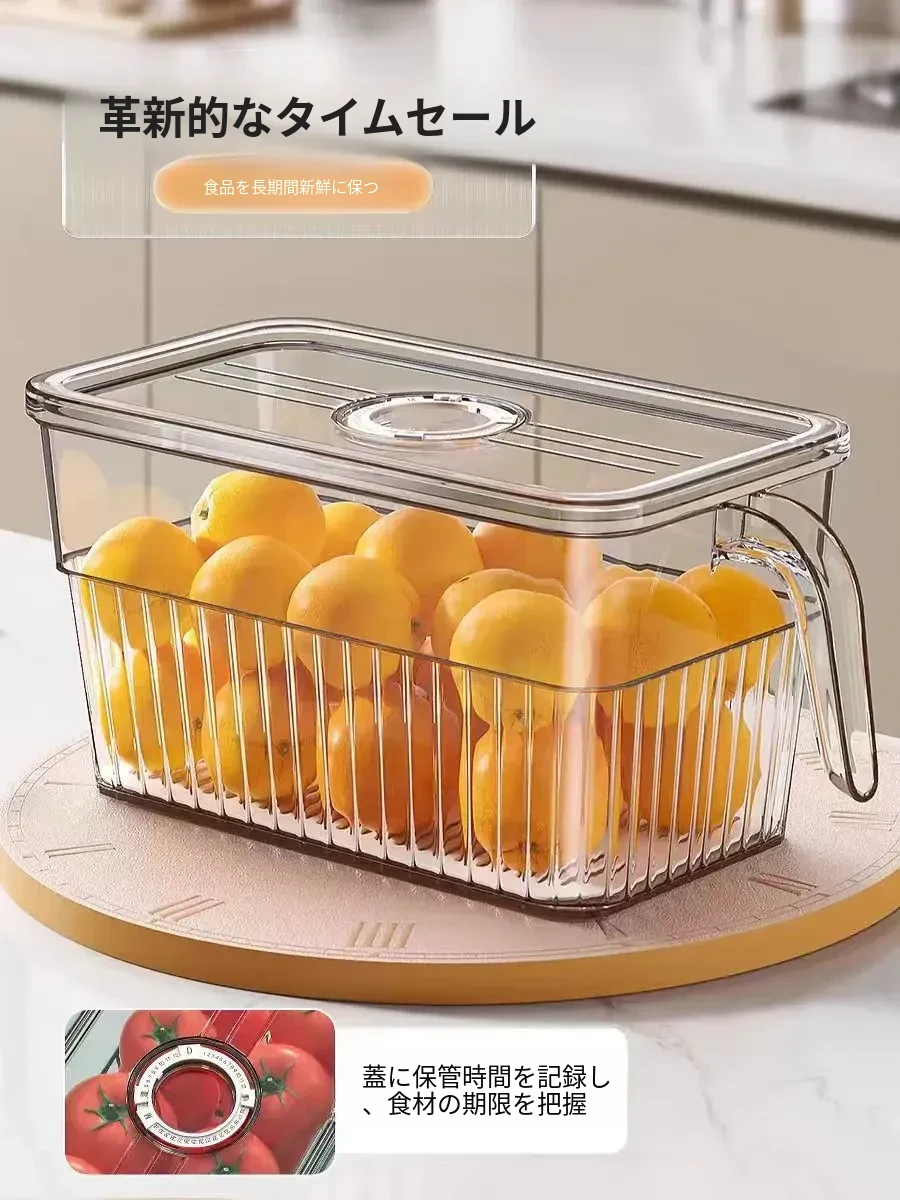 冷蔵庫整理ボックス - 食品グレードの野菜・果物用保存容器!冷凍・冷蔵に最適なデュアルドア収納。すっきり整理して、食材を新鮮に保つ!