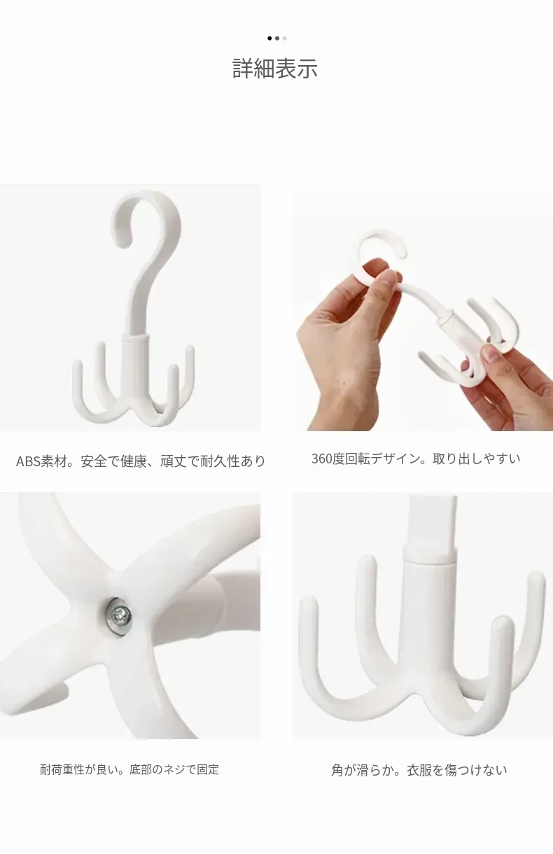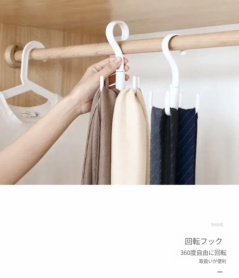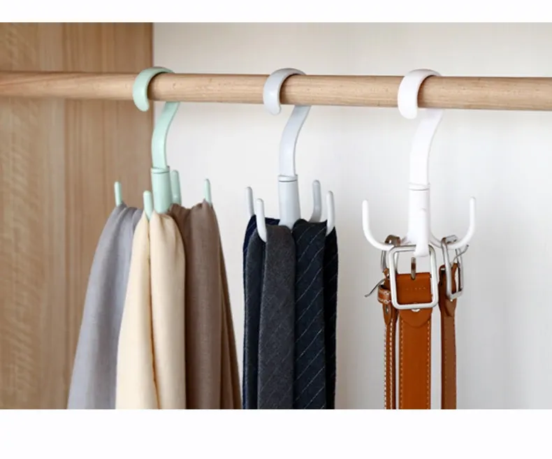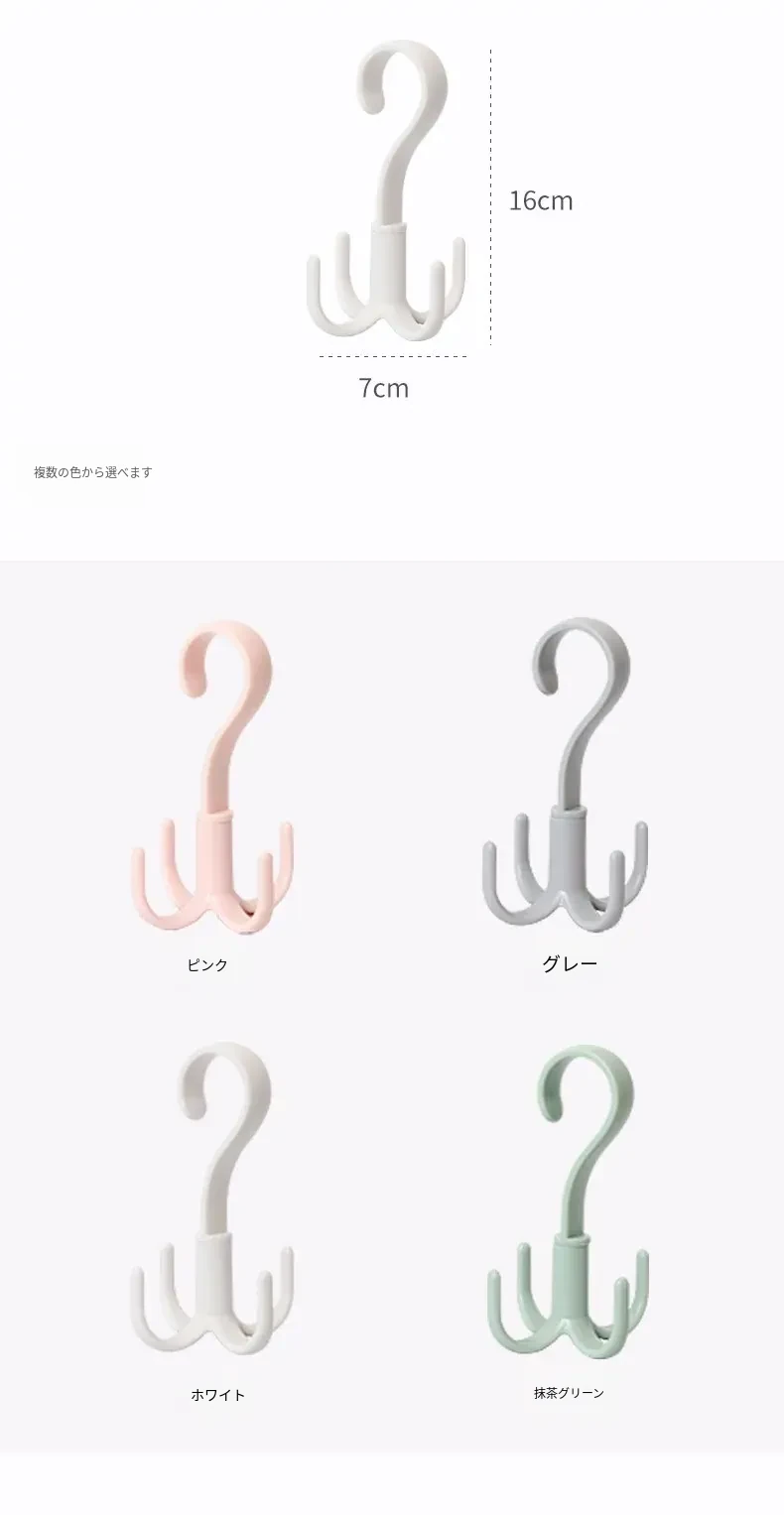 回転式4爪フック2個セット!靴、ネクタイ、スカーフ、帽子をスッキリ収納できるプラスチック製ハンガーフック。お部屋をおしゃれに整頓し、毎日のコーディネートをサポートします!