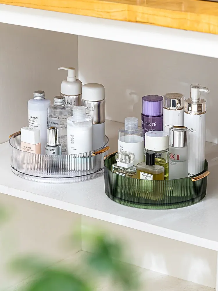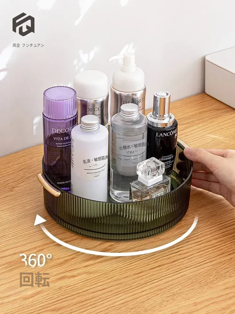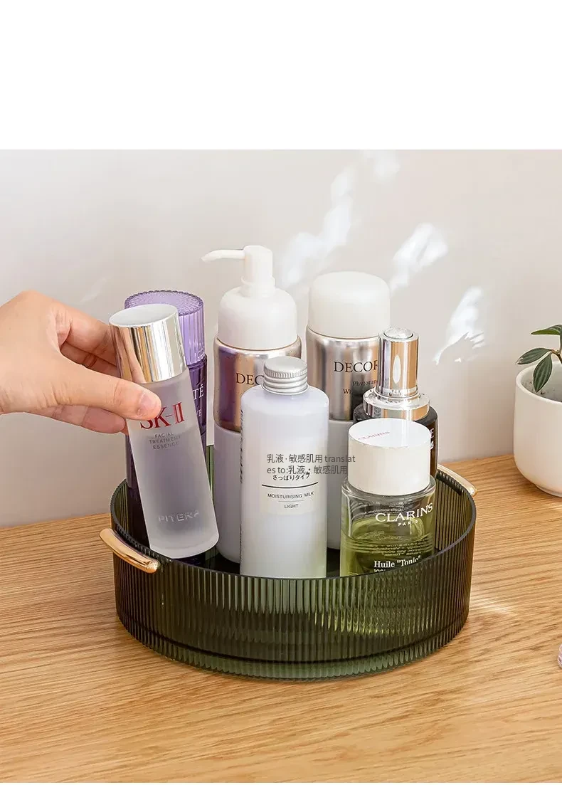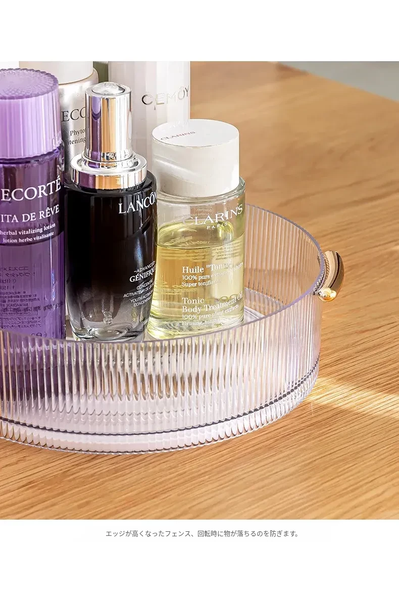 回転式デスクトップ化粧品収納ボックス - 洗練されたアクリル製トレーで、スキンケアアイテムをスタイリッシュに整理。おしゃれなドレッサーに最適な透明なデスクトップ収納ラック!