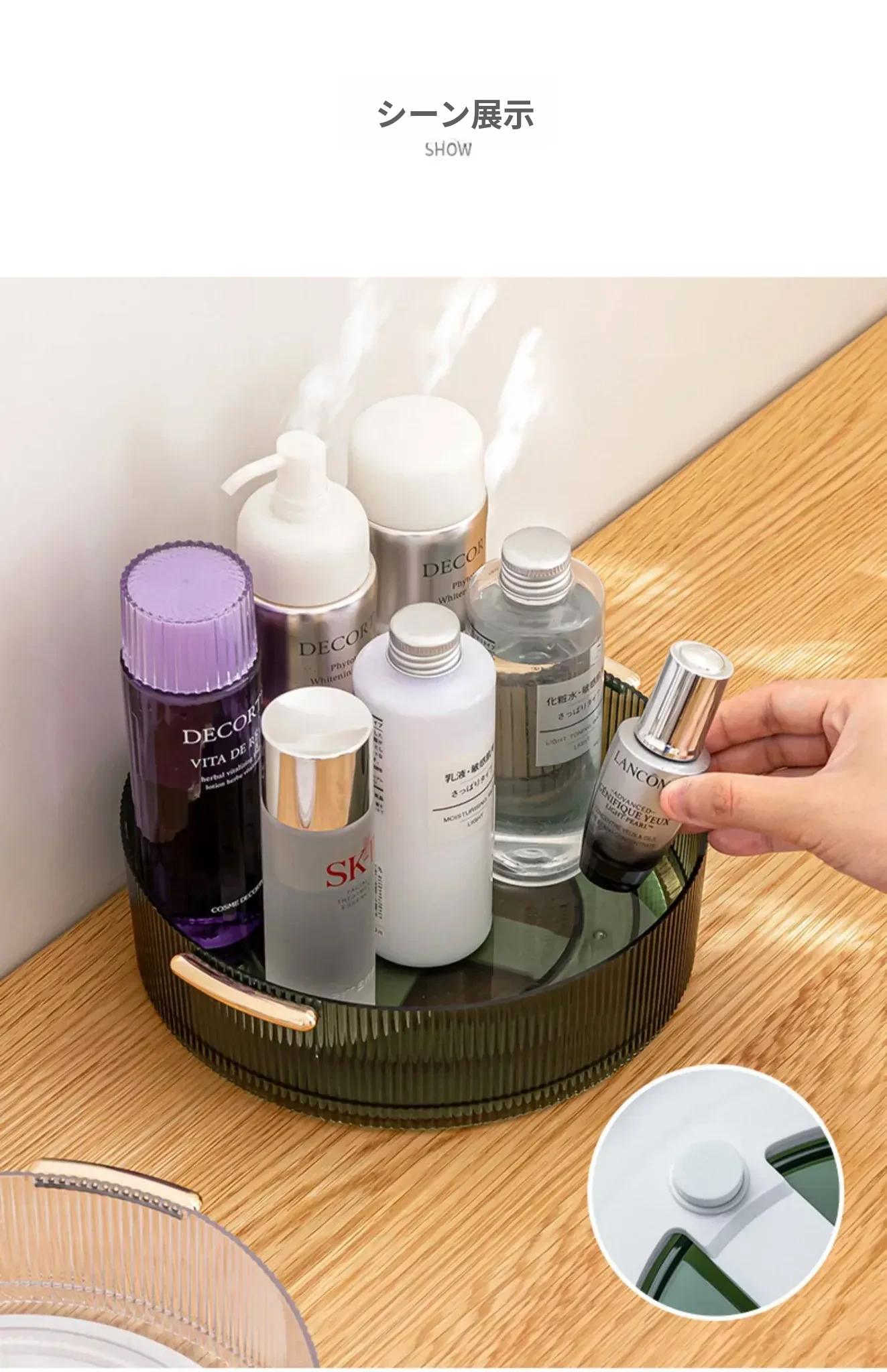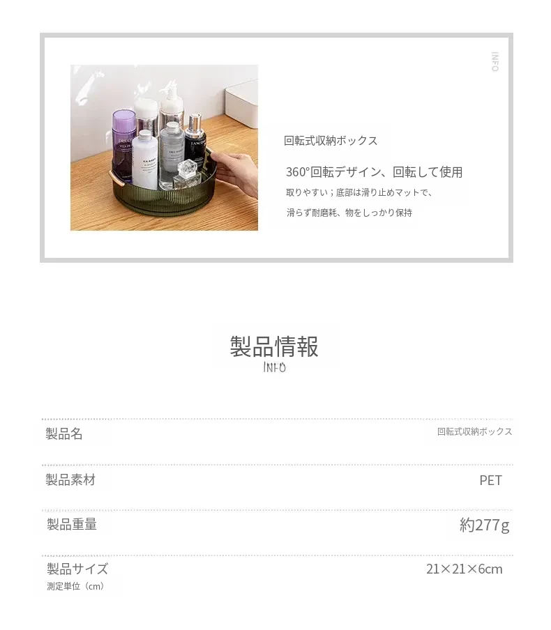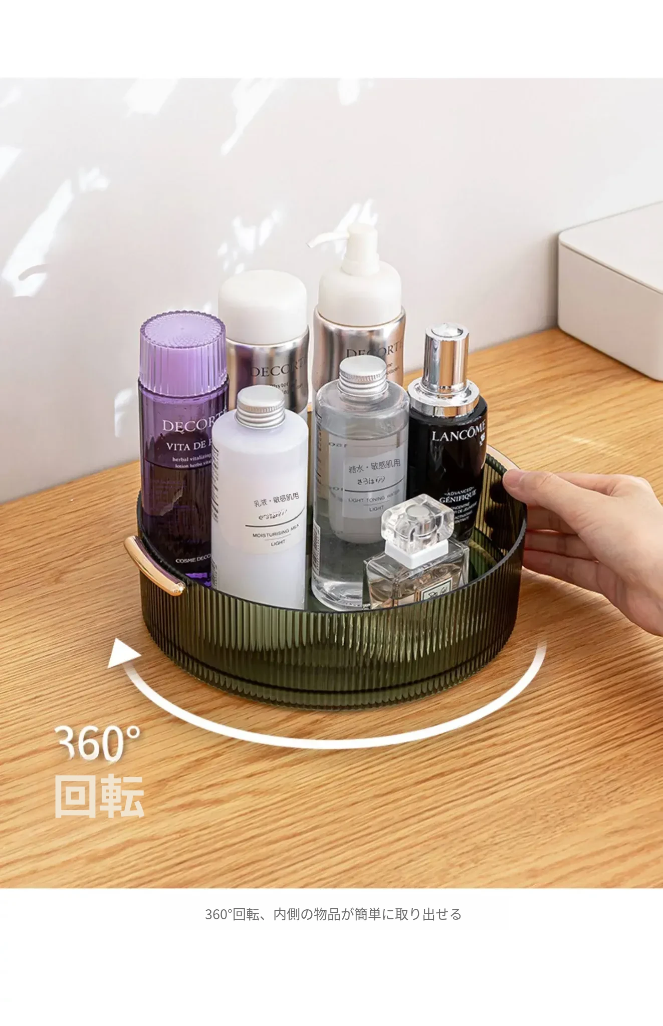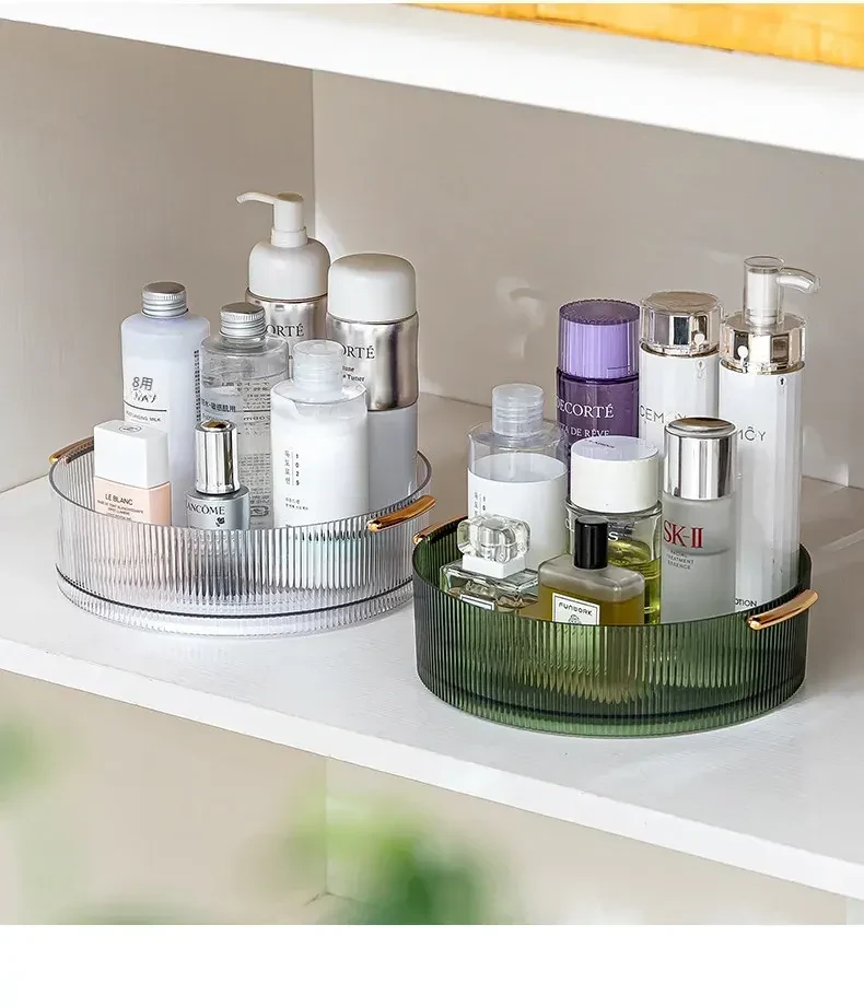 回転式デスクトップ化粧品収納ボックス - 洗練されたアクリル製トレーで、スキンケアアイテムをスタイリッシュに整理。おしゃれなドレッサーに最適な透明なデスクトップ収納ラック!