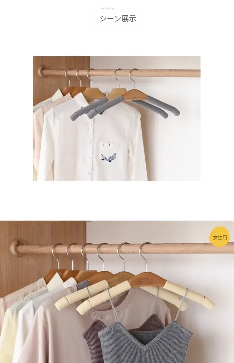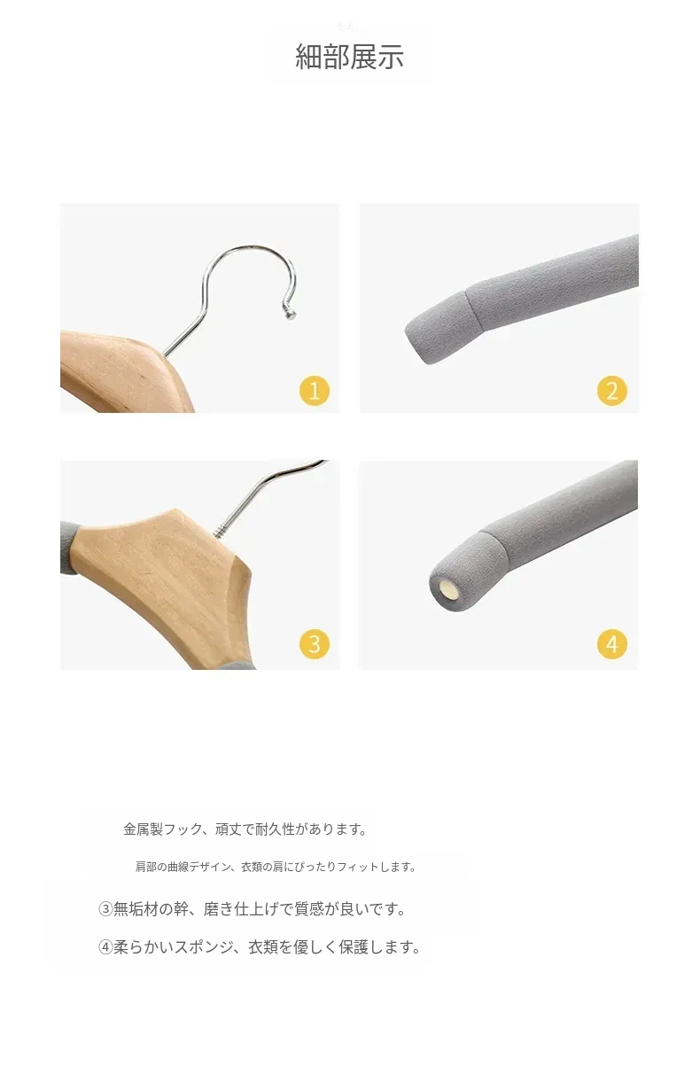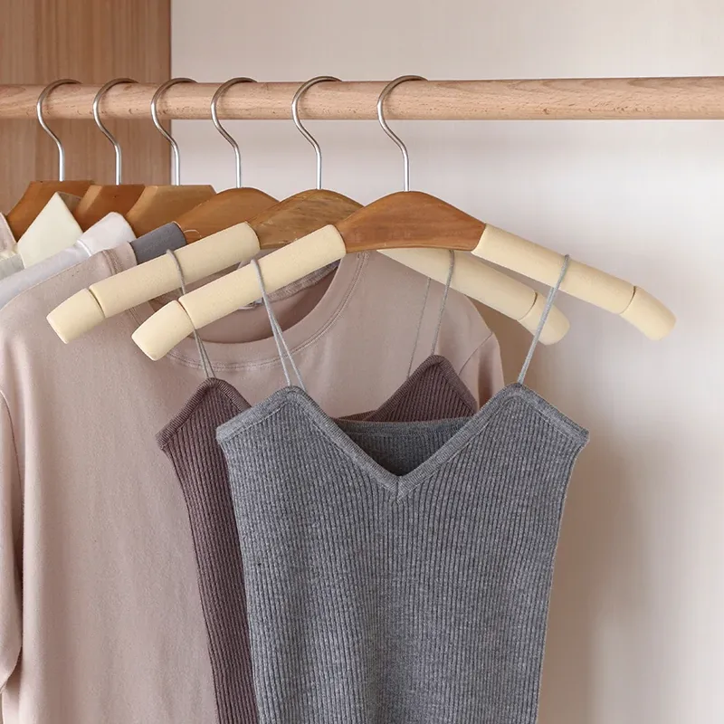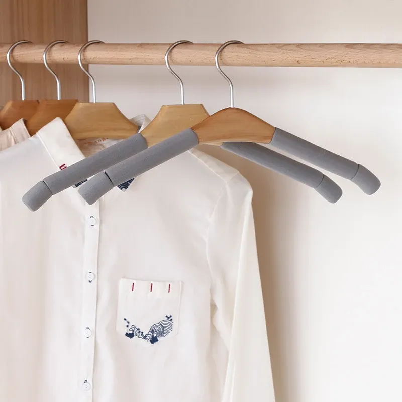 10個の滑り止め付き無痕ハンガー - 大人用、強化スポンジ製、衣類店向け、天然木製の衣類干しスタンド、家庭用クローゼットに最適!衣類をしっかり支え、シワを防ぎます。