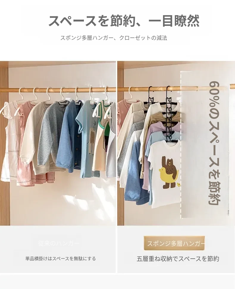 省スペース!多機能・多層ハンガー 子供用・学生用・家庭用クローゼット収納の必需品 衣類をスマートに整理できる便利なハンガー