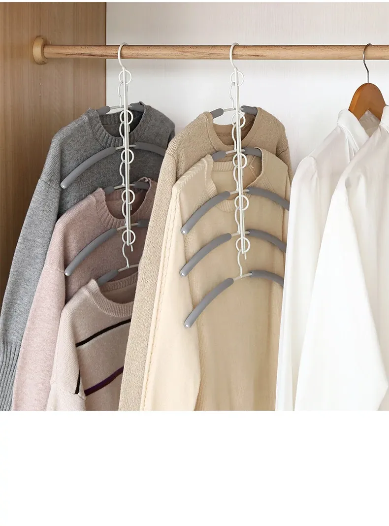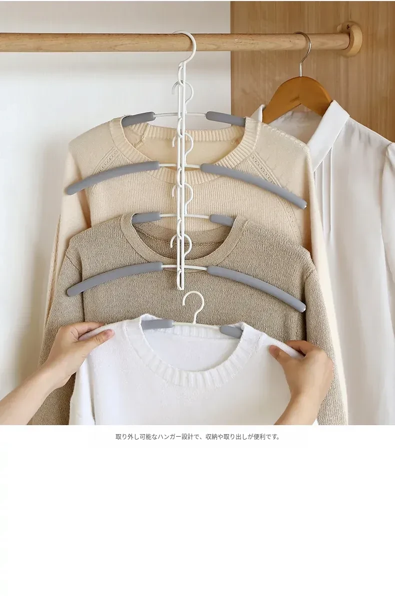 省スペース!多機能マルチレイヤー衣類ハンガー フック付き 魔法の収納アイテム 家庭用クローゼットの救世主 衣服をスマートに収納できる折りたたみ式ハンガー!