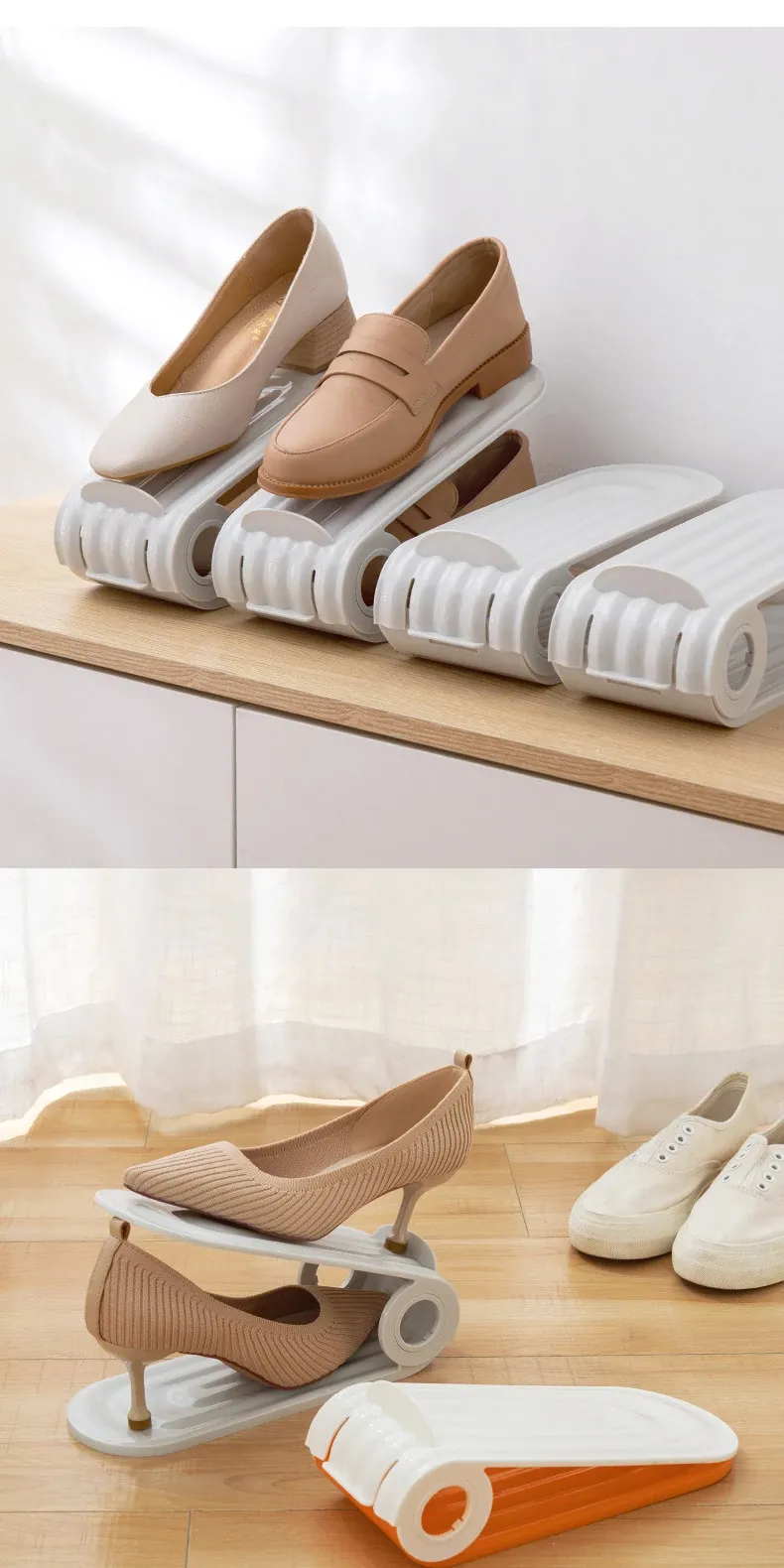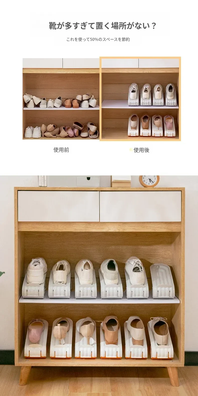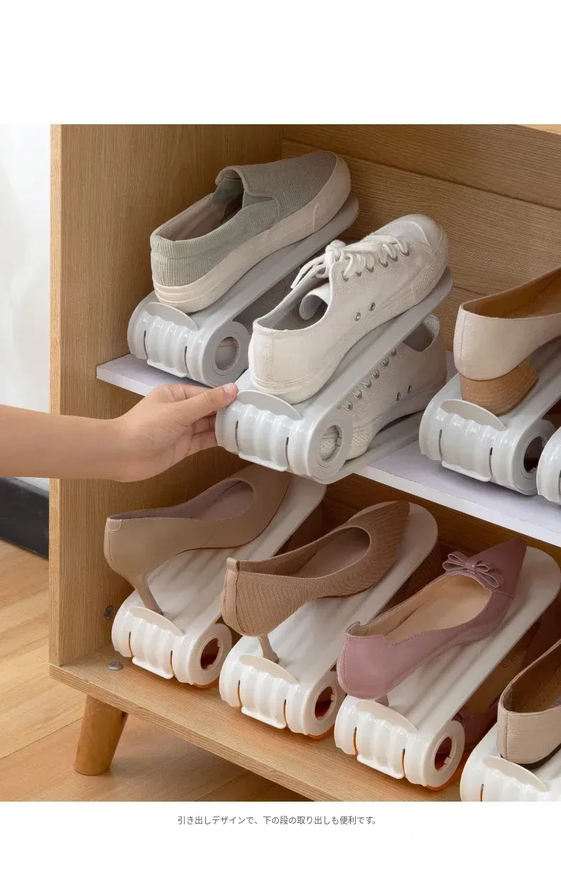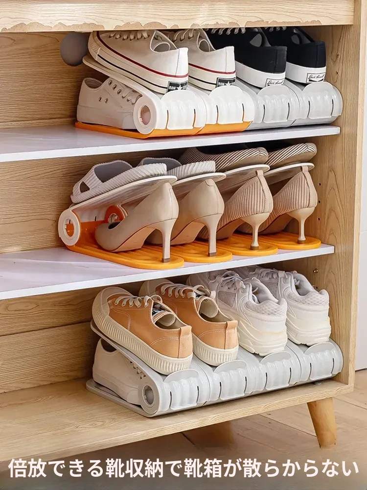 省スペース靴収納マジック!折りたたみ式二段靴棚、靴箱、靴ケース、仕切り付きでスッキリ整理。おしゃれで機能的な靴収納で、玄関をすっきりと演出しましょう!