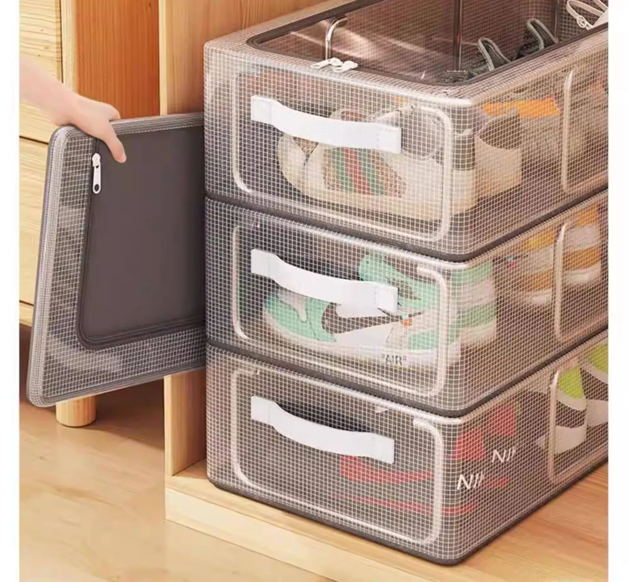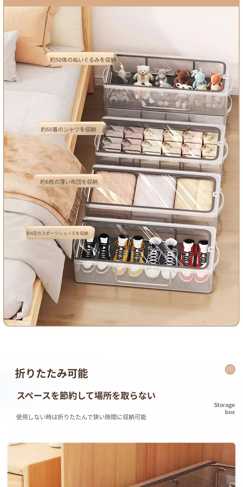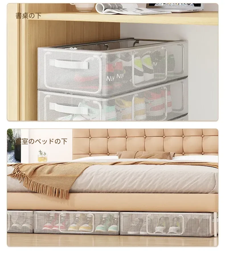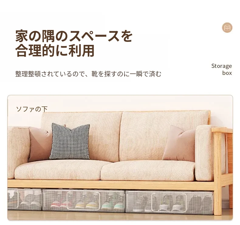 省スペースのシューズ収納マジック!透明プラスチックシューズボックスで簡単に整理整頓。季節の変わり目にもぴったりなベッド下防塵シューズラック!おしゃれで実用的な収納アイテムです。