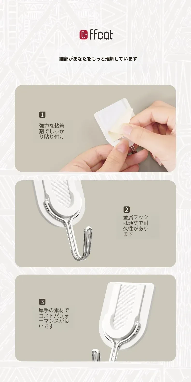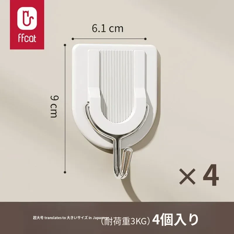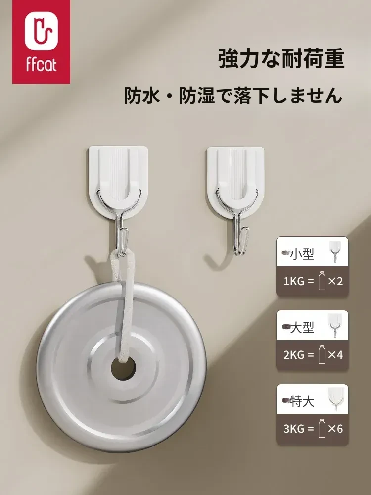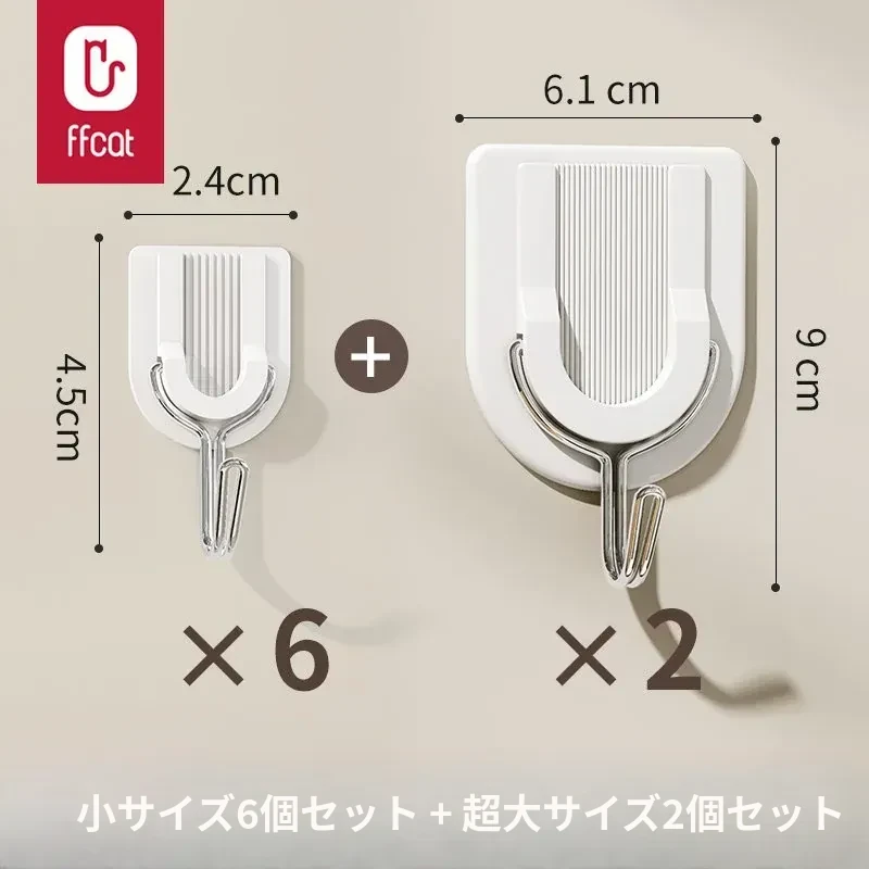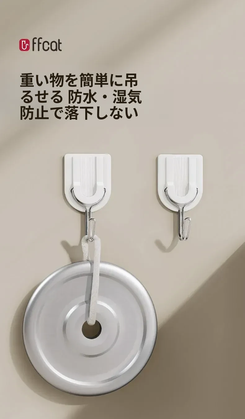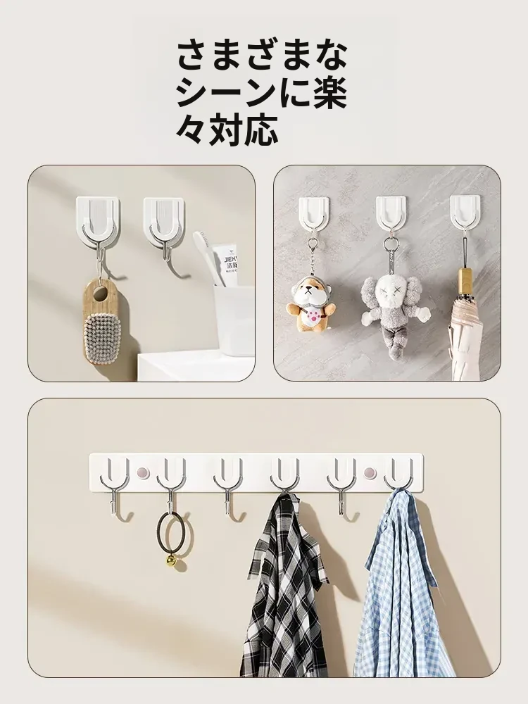 強力粘着フック 無痕で穴あけ不要!キッチン・バスルーム・トイレに最適な壁掛け鍵フック。簡単取り付けでしっかり固定、収納スペースを有効活用!