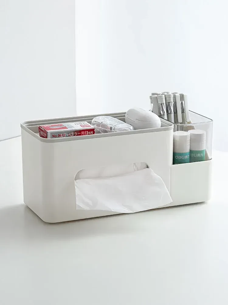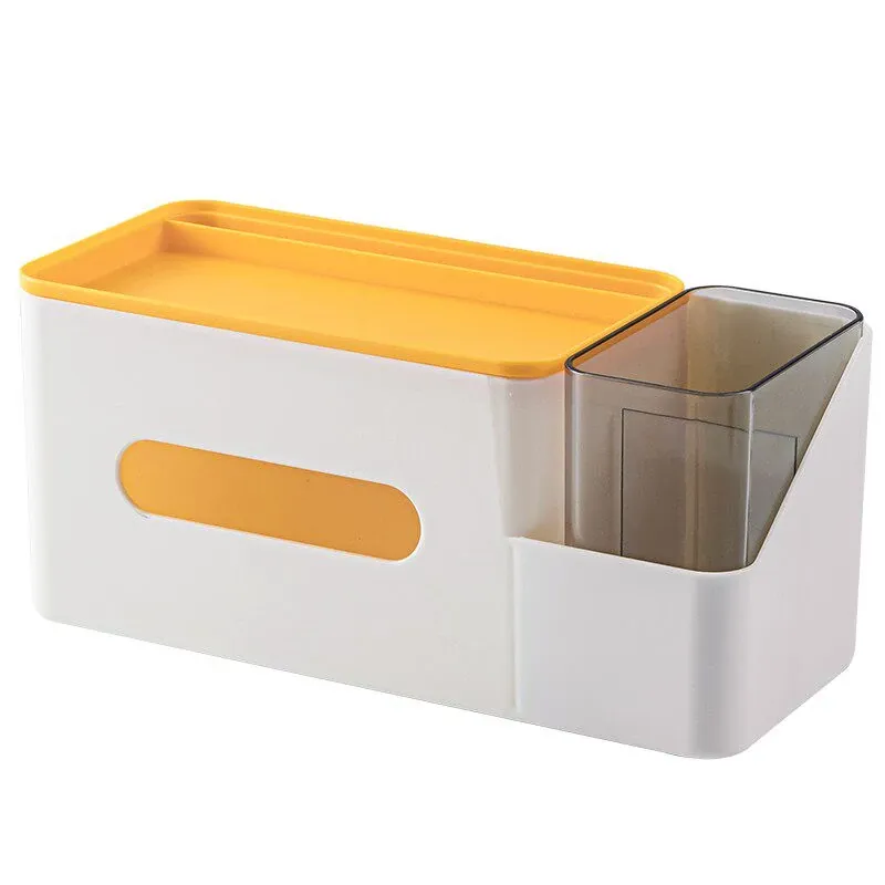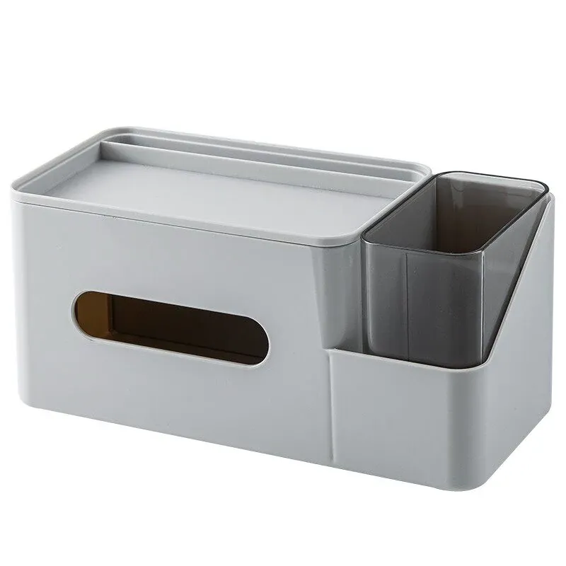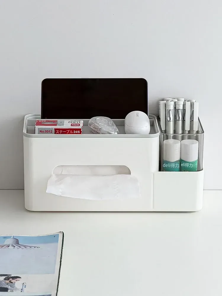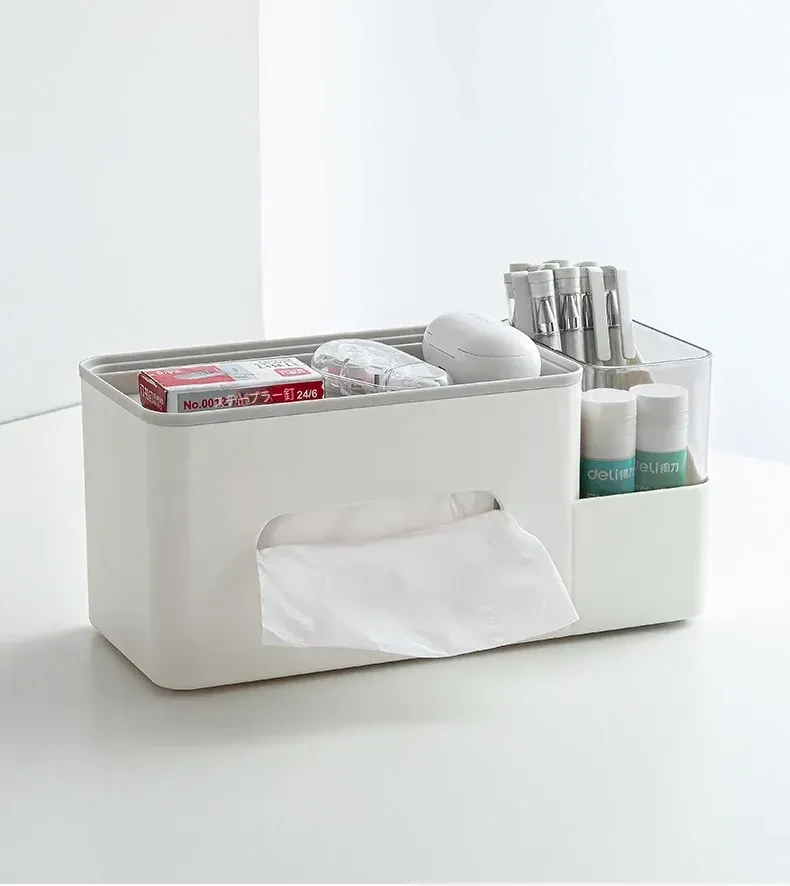 デスク上のティッシュ収納ボックス|学生寮やオフィスに最適な便利アイテム|整理整頓に役立つペン立ても付いて、快適な作業環境を実現!